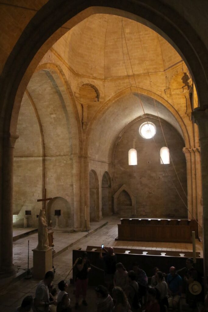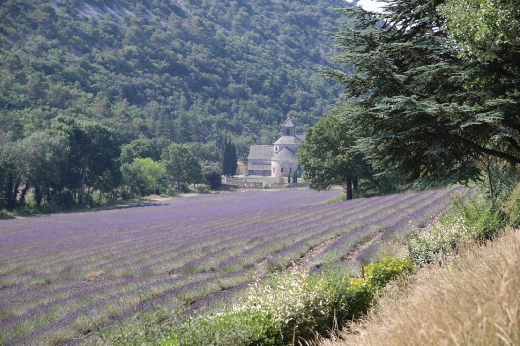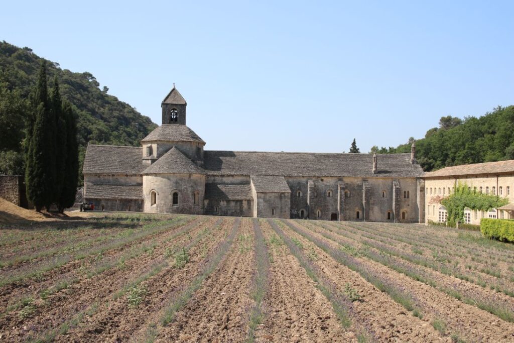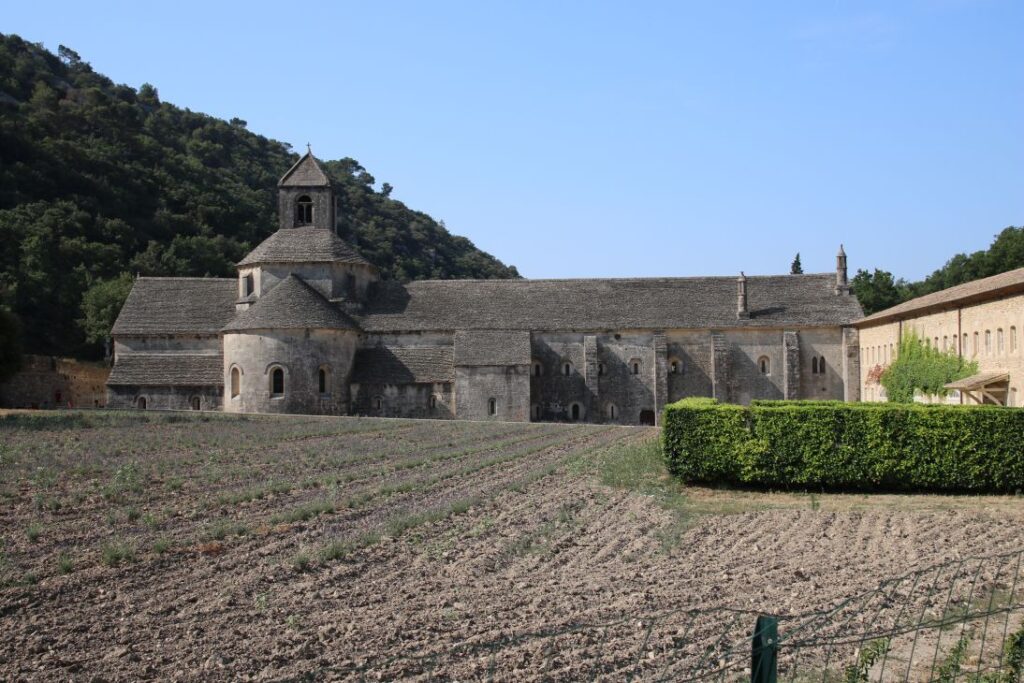 Wir sehen die Lavendelblüte nicht mehr in ihrer vollen Pracht, schön anzusehen ist das Ensemble aber trotzdem. Wir nehmen zuerst an einer Führung in französischer Sprache teil, das ist uns jedoch zu anstrengend und wir erkunden die Abtei auf eigene Faust.