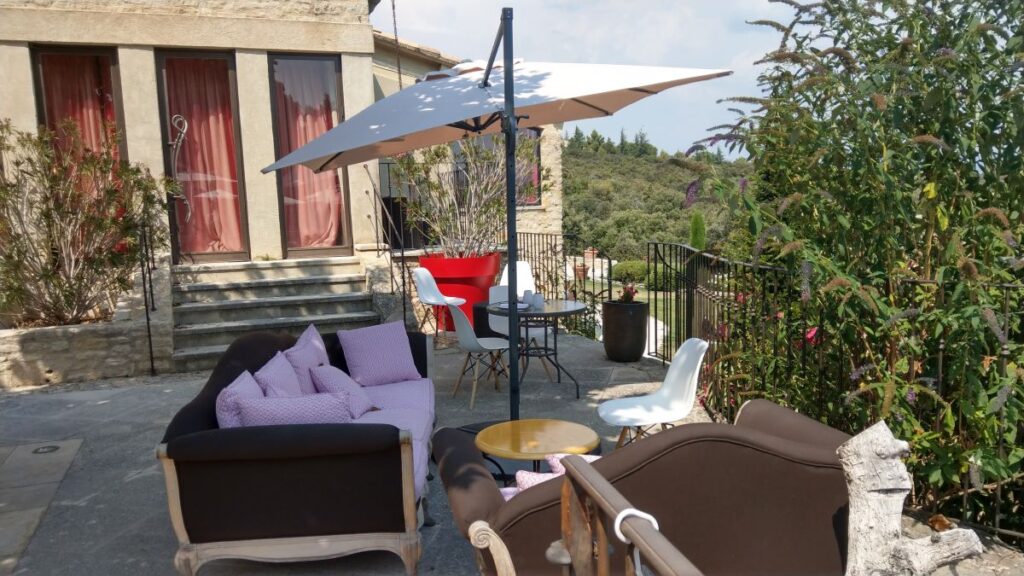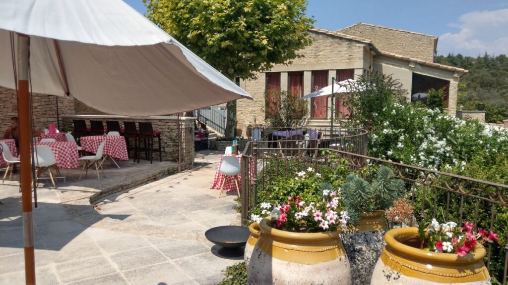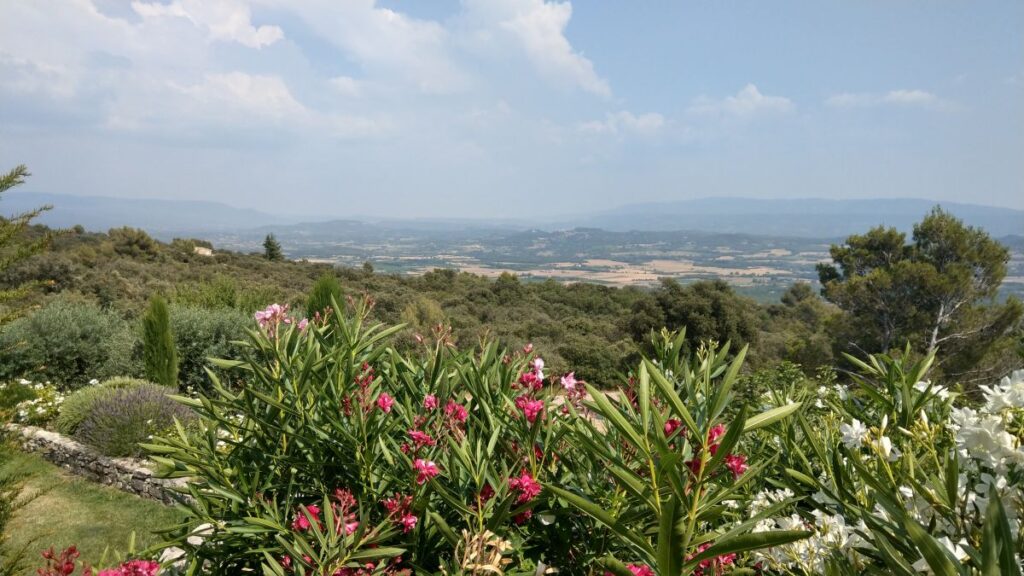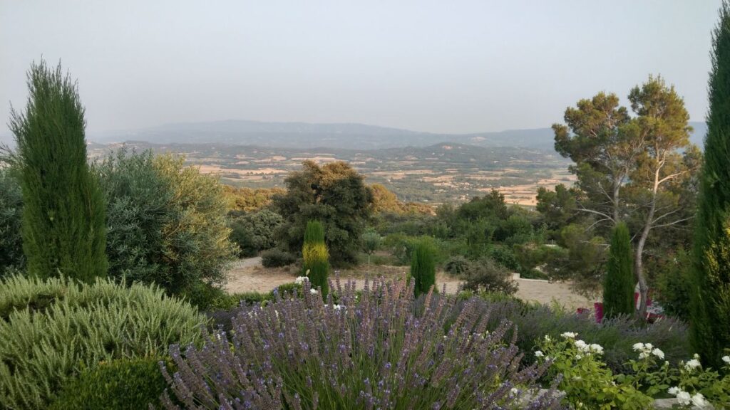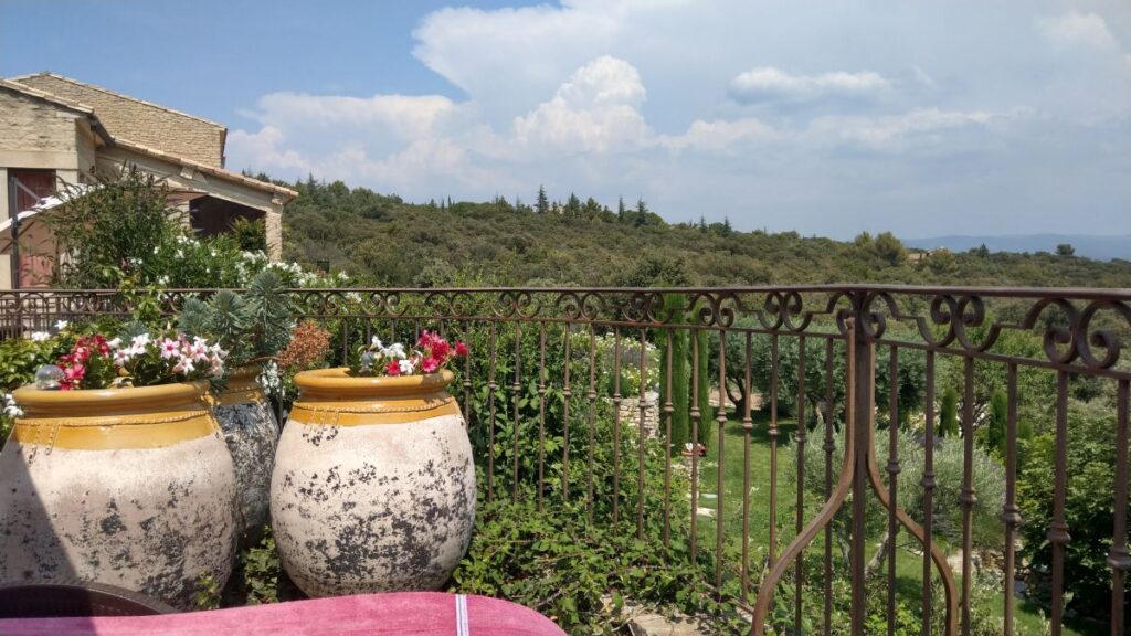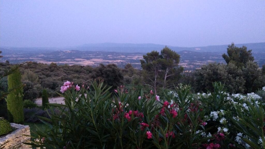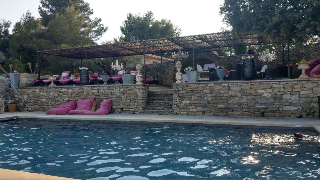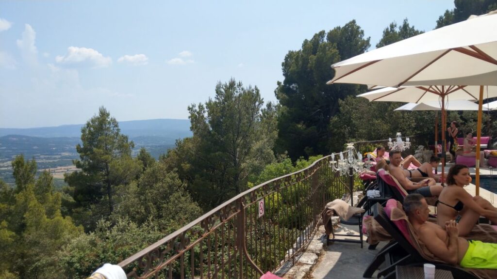 Schon nach zehn Minuten sind wir im Hotel „Le Petit Palais d’Aglaé“ angelangt, einer wunderschönen Anlage am Steilhang nordöstlich von Gordes. Das Zimmer ist schon fertig, wir können frühzeitig einchecken und machen uns sofort fertig für den Pool. Dort verbringen wir den ganzen Nachmittag auf superbequemen Liegestühlen, mit wunderbarem Ausblick auf den Luberon,