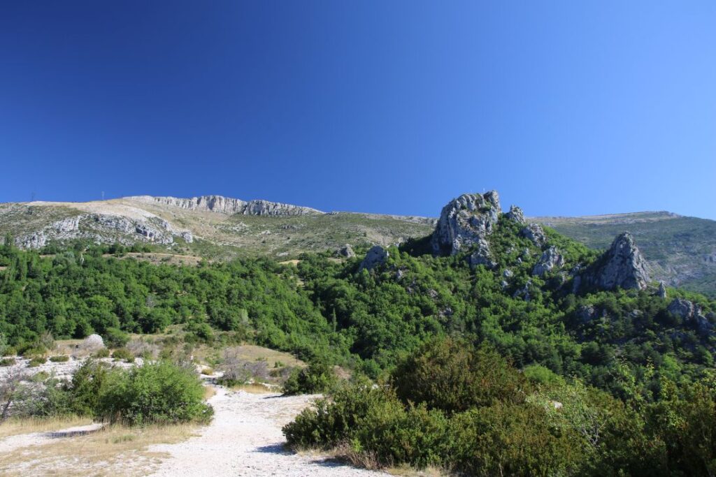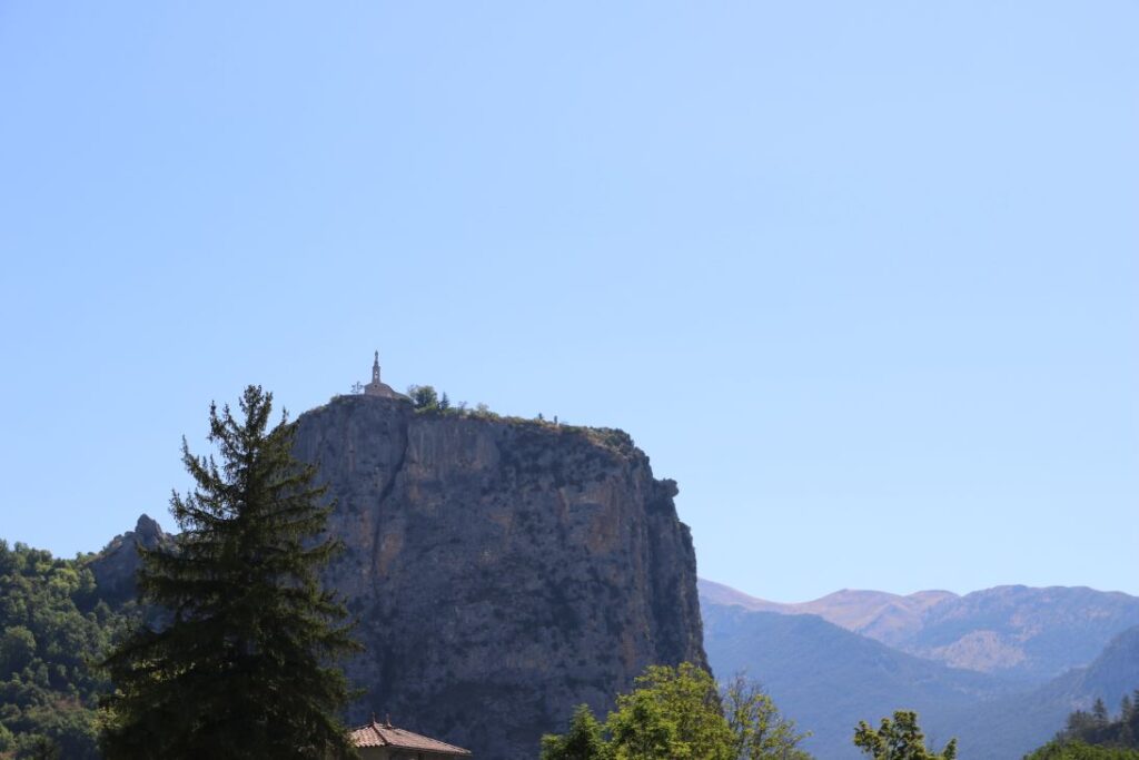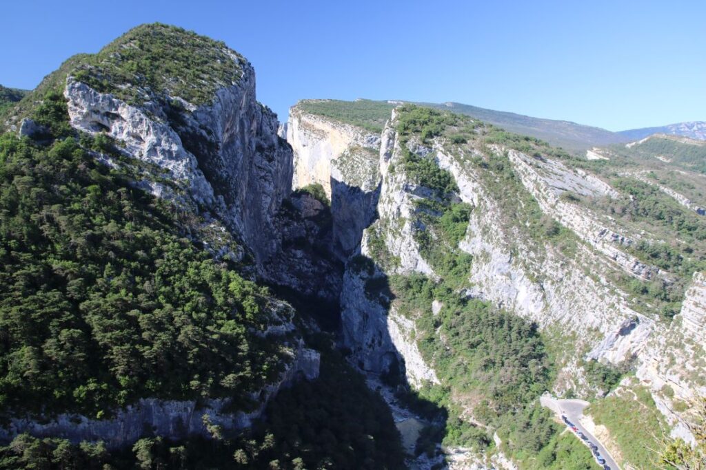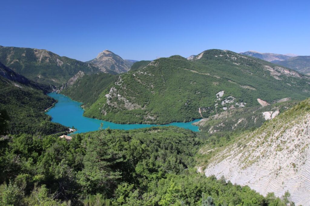In Rougon bleiben wir noch beim „Point Sublime“ stehen, und blicken noch ein letztes Mal in die beeindruckende Verdon-Schlucht. Dann geht es über enge Straßen, entlang von Felsüberhängen und neben dem rauschenden Verdonfluss nach Castellane über den ersten Pass, den „Col de Cheiron“ mit 887 Metern Seehöhe, am „Lac de Castillon“ vorbei über den zweiten Pass „Col de Toutes Aures“ auf 1.120 Meter Seehöhe.