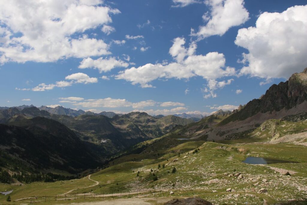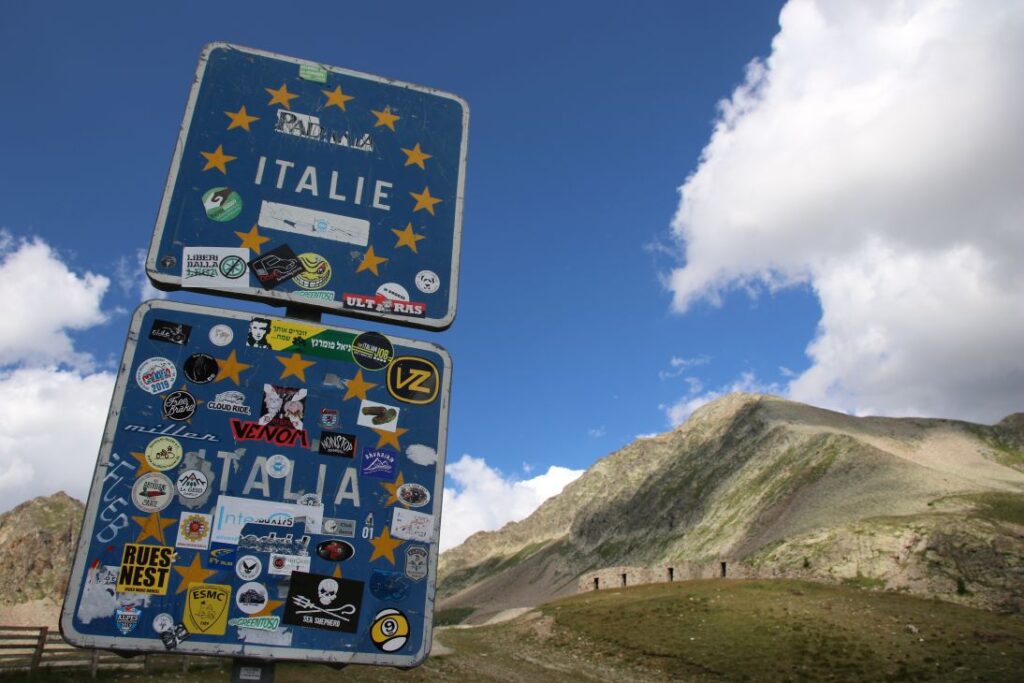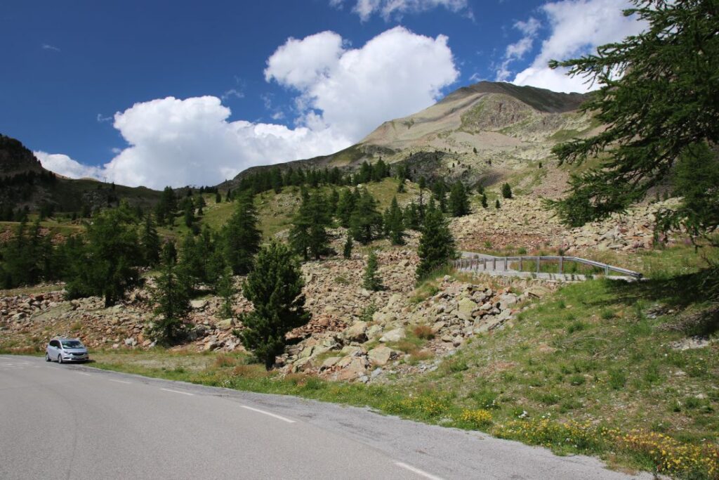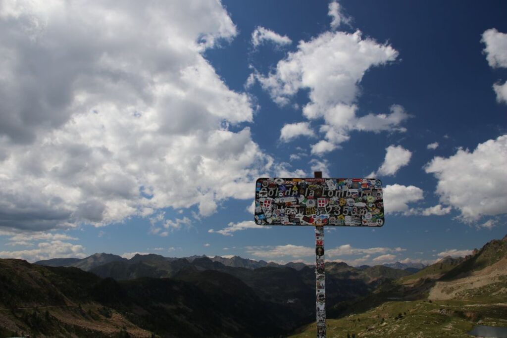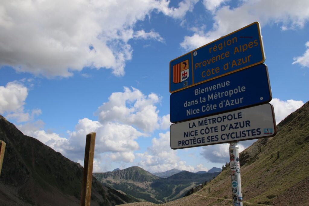 Danach geht’s auf einer wunderschönen Straße den Fluss „Var“ entlang, bis wir bei einer Abzweigung den Weg Richtung Nationalpark Mercantour nehmen. Es geht stetig bergauf, wir fahren auf einer der höchstgelegenen Alpenstraßen Europas. Bei Isola zweigen wir ab und nehmen die Passstraße Richtung Italien. In unzähligen Kehren fahren wir über das Schigebiet „Isola 2000“ hinauf auf den „Col del la Lombarde“ auf unglaubliche 2.350 Metern Seehöhe. Der Pass markiert auch die Grenze zwischen Frankreich und Italien, zwischen Alpes-Maritimes und Piemont.