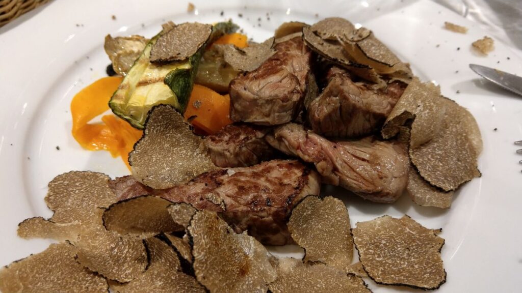 Wir spazieren durch die Gassen zur „Osteria dell’Arco“, unserem Restaurant für den Abend. Es ist das zweite Standbein der Slow-Food-Koryphäe „Osteria del Boccondivono“ in Bra, in der wir vor zwei Jahren gegessen haben. Wir sind begeistert vom Menü und finden, das es ein perfektes Urlaubs-Abschlussessen war. Müde gehen wir zurück zur Unterkunft, auf den Straßen und Plätzen wird getanzt und gefeiert. Wir schlafen uns lieber aus für die lange Autofahrt nach Hause.