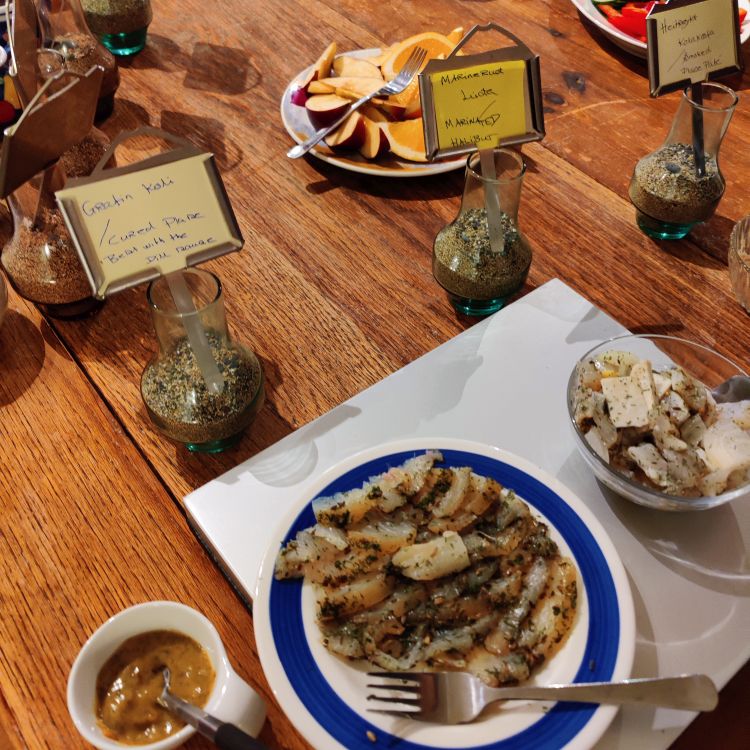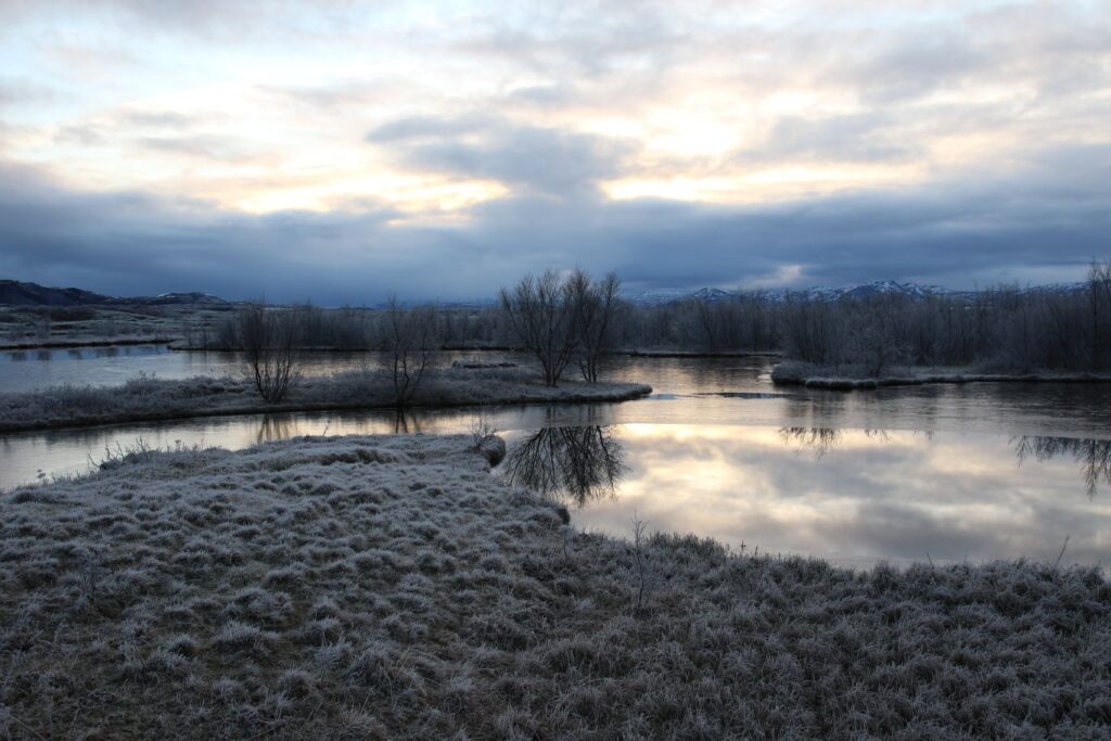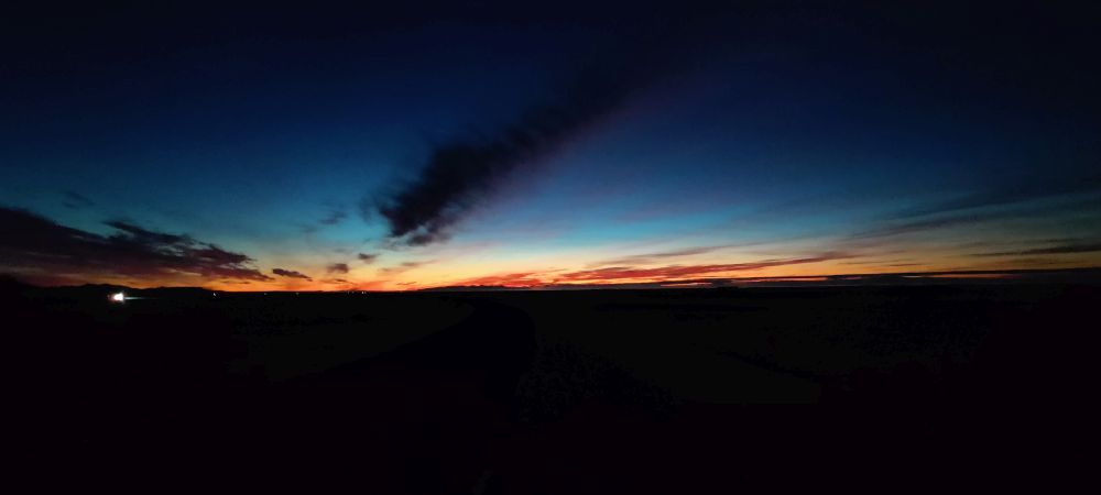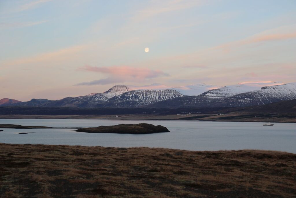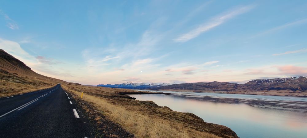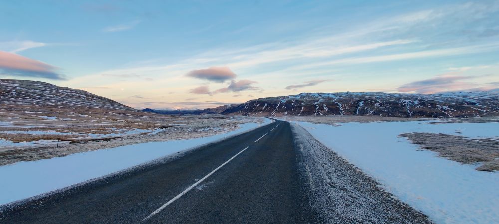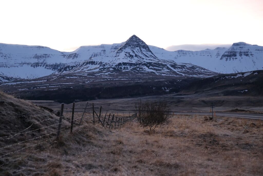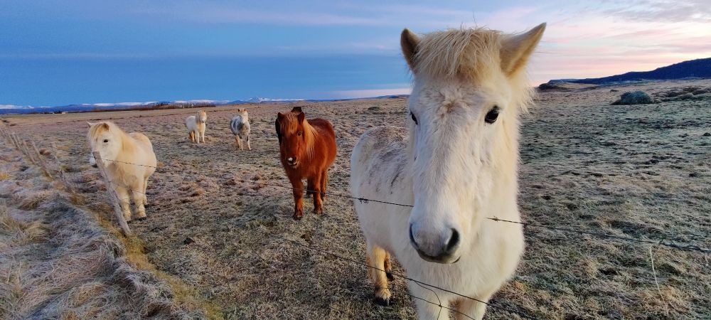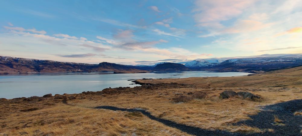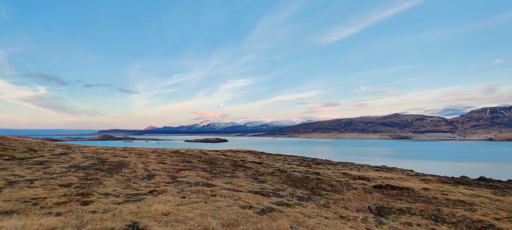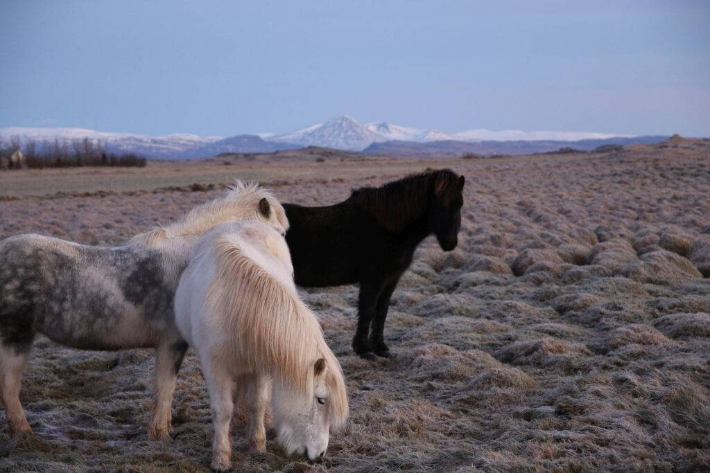 Das heutige Frühstück ist großartig. Es gibt verschiedene Brotsorten, von Knäckebrot bis zu selbst gebackenem Ölbrot, rohen Fisch mit scharfer Dill-Senfsauce, Pesto, geräuchertes Lamm, Lamm-Pastete und vieles mehr. Gestärkt starten wir in den Tag. Es ist kurz nach 9:00 Uhr und noch stockfinster. Lediglich im Osten sehen wir die Ahnung eines Sonnenaufganges. Es hat auf -4°C abgekühlt, das Auto ist zur Gänze vereist. Wir checken aus, denn auch heute haben wir viel vor. 280 Kilometer werden uns ins Landesinnere zum „Golden Circle“ mit Þingvellir National Park, Wasserfall Gullfoss, Geysiren und in das älteste Schwimmbad Islands führen. Wir weichen ab Borgarnes von der geplanten Strecke ab, da wir den anderen Weg gestern schon gefahren sind. Die Strecke ist zwar knapp eine halbe Stunde länger, aber landschaftlich einmalig. Wir treffen Islandpferde, umrunden den Hvalfjörður, fahren über Schotterpisten und sehen Vulkane, Berge und viel Raureif.