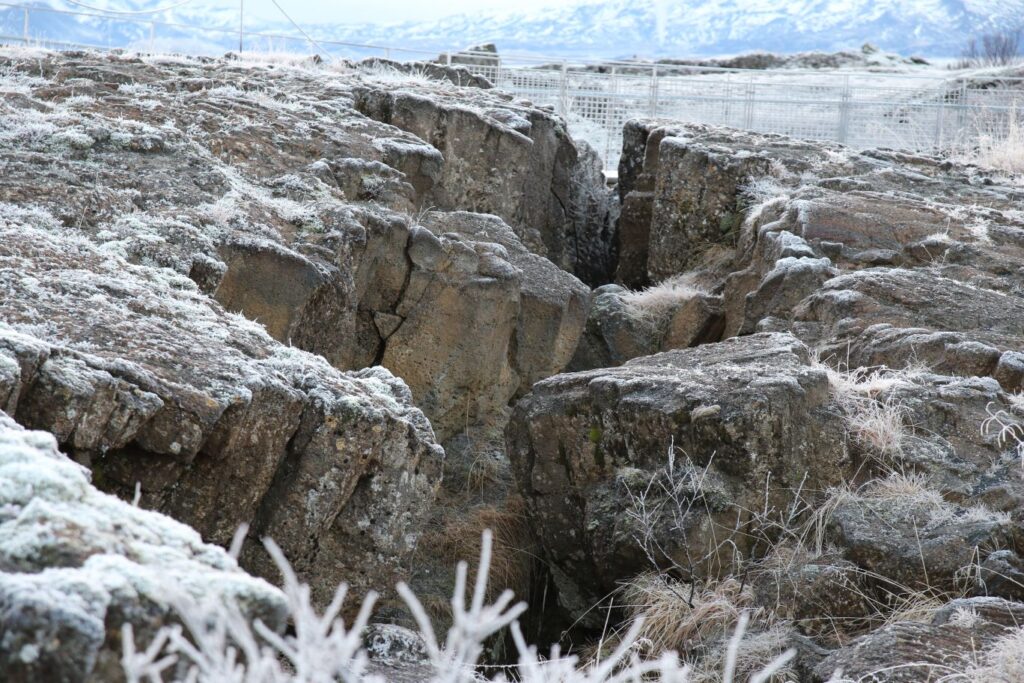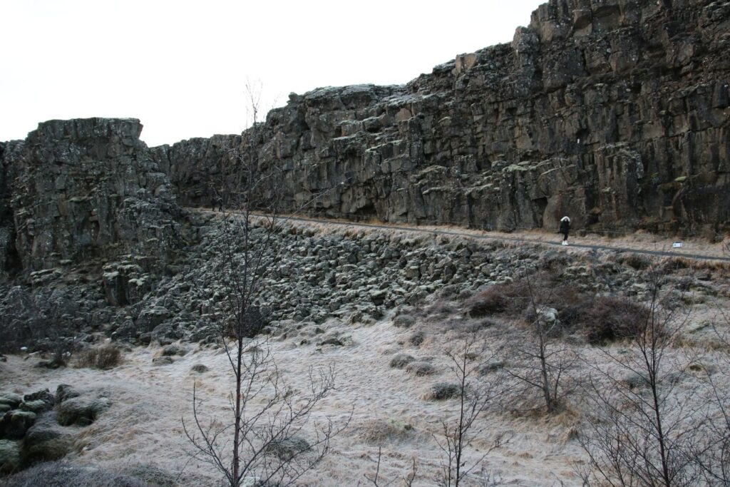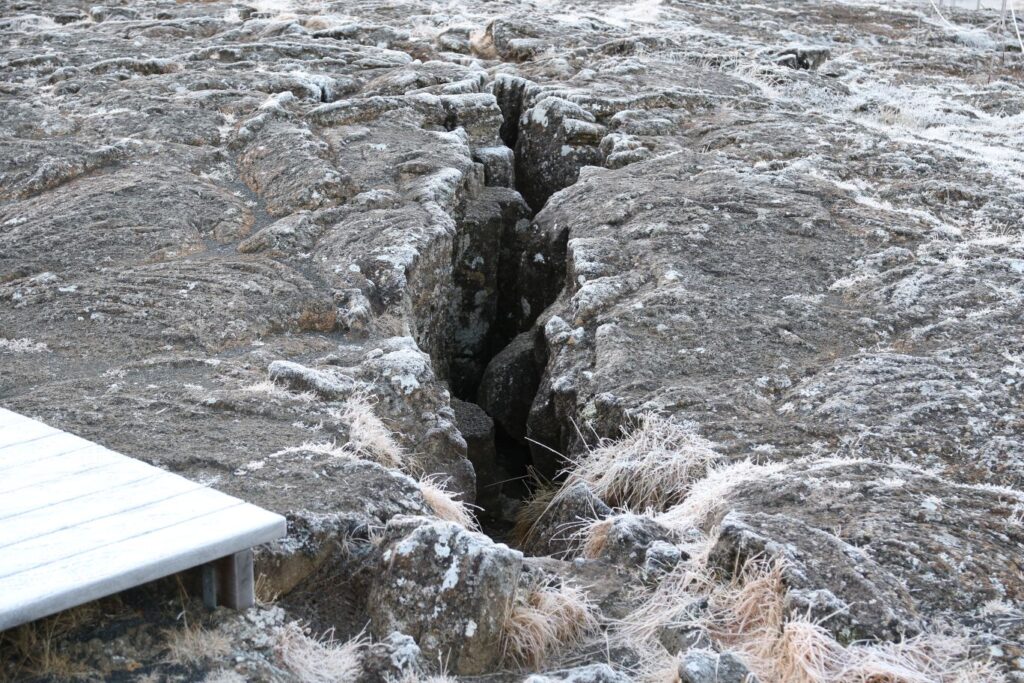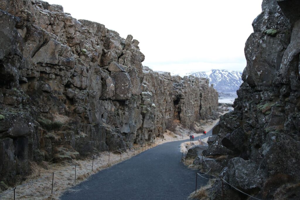 Der Þingvellir National Park ist Pflicht. Der Ort hat besondere Bedeutung für die Geschichte Islands. Þingvellir kann als „Felder des Parlaments“ übersetzt werden, eine Anspielung auf die Geschichte und die Bedeutung dieses Gebiets für die isländische Kultur. Schließlich wurde hier 930 n. Chr. das erste demokratisch gewählte und noch immer aktive Parlament der Welt, Alþingi, gebildet. Im Þingvellir National Park ist das Auseinanderdriften der amerikanischen und eurasischen tektonischen Platten durch imposante Felsspalten und Risse sichtbar, vor allem an der Almannagjá (Allmännerschlucht) oder auch der Silfra-Spalte. Die tektonischen Verschiebungen lösen auch häufig Erdbeben aus. In den letzten 10.000 Jahren ist das Land beiderseits der Schlucht Almannagjá um 70 Meter auseinandergedriftet und der Talboden hat sich um ca. 40 Meter gesenkt. Wir spazieren eine Stunde durch den Park bis zur Silfra-Spalte und begegnen sogar einer Gruppe Taucher, die gerade aus dem 4°C kalten Wasser kommen. Der Park ist wunderbar, man könnte einen ganzen Tag hier verbringen. Dafür ist aber heute keine Zeit und so fahren wir weiter zum Gullfoss.