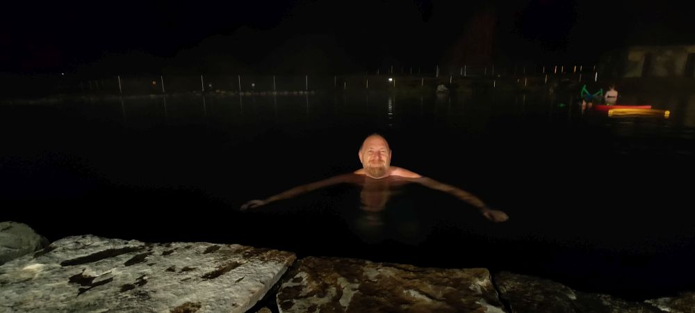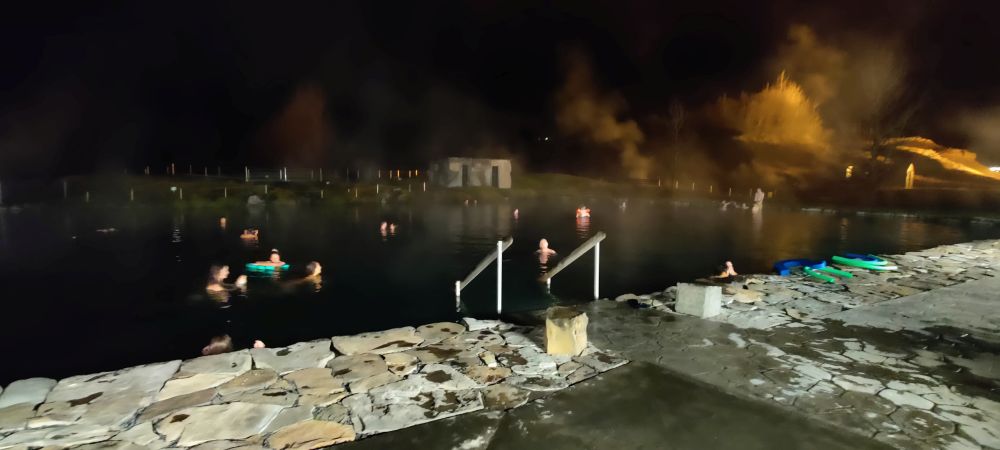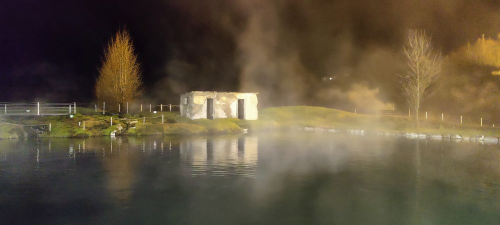 Weiter geht’s zum Ort für die Nacht, Flúðir. Nach 25 Kilometern sind wir im Guesthouse Flúðir – Grund angekommen. Dort checken wir ein und sind auch schon wieder dahin. Wir haben Tickets für die Secret Lagoon. Die Geheime Lagune wurde „Gamla Laugin” genannt, was „alter Pool“ bedeutet. Der Pool entstand im Jahre 1891. Der thermale Pool hat eine konstante Temperatur von 38 bis 40°C. Wir baden ausgiebig im wirklich sehr warmen Wasser bis zum Badeschluss um 19:00 Uhr und fahren wieder zurück in die Unterkunft. Dort essen wir Pilzsuppe und köstliche Icelandic Fish & Chips und trinken Wikinger-Bier.