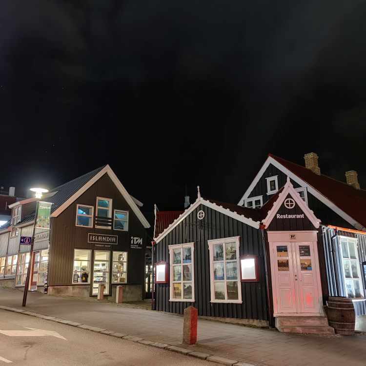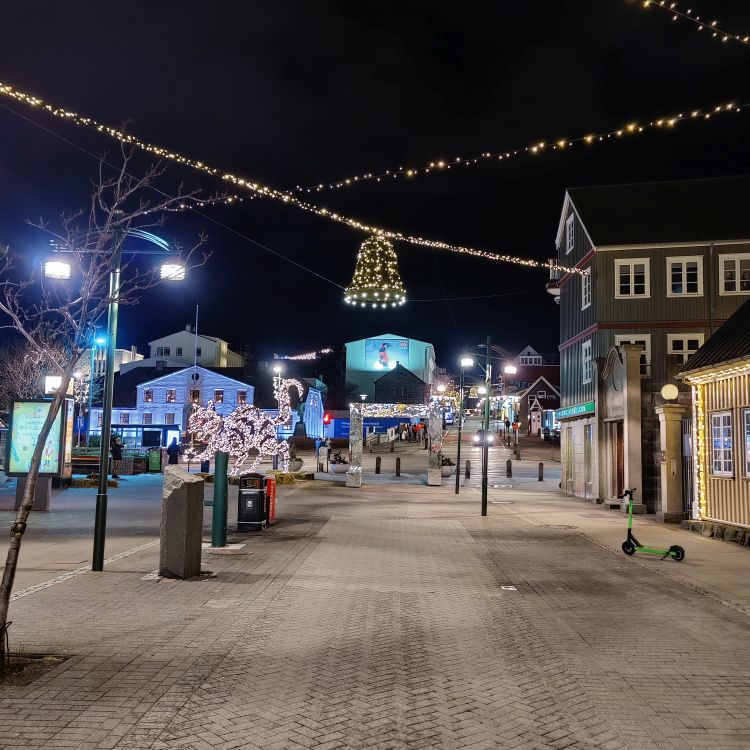 Wir fahren die letzte halbe Stunde nach Reykjavík und checken im Reykjavik Residence Apartment Hotel ein, wo wir uns für unsere letzten drei Nächste einquartieren. Wir haben ein wunderschönes Studio in einer Stadtvilla. Das Abendessen im Grillmarkaðurinn ist ein Highlight. Das Restaurant ist wunderschön eingerichtet, mit Lavasteinen, Basaltsäulen und Trennwänden aus getrockneter Fischhaut. Wir essen ein dreigängiges Weihnachtsmenü mit einem Vorspeisenmix auf Tempura-Garnelen, geräuchertem Lachs und Entenleberpastete. Dann gibt’s exzellente Entenbrust vom Grill mit Mandarinensauce. Zum Schluss wartet ein Schokokuchen mit flüssigem Karamellkern und Vanilleeis. Zur Feier des Tages trinken wir noch zwei Weihnachtscocktails und schlendern durch die nächtliche Hauptstadt zurück zur Unterkunft.
