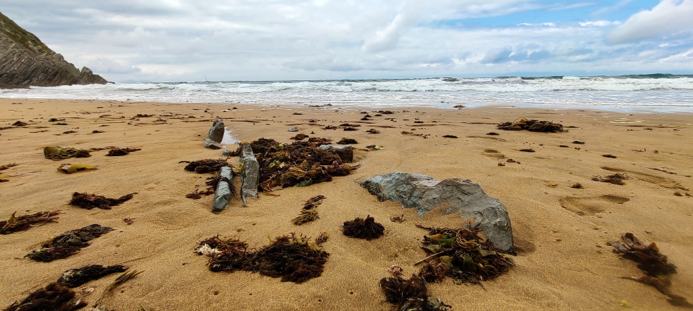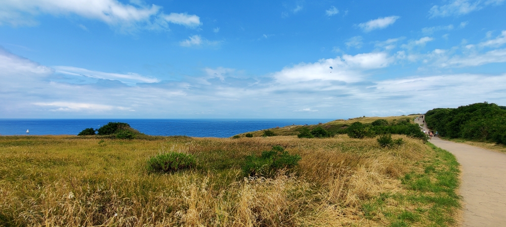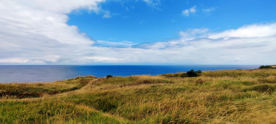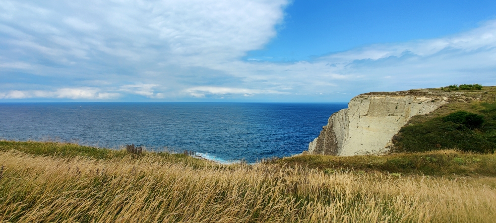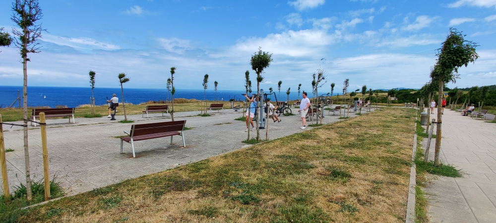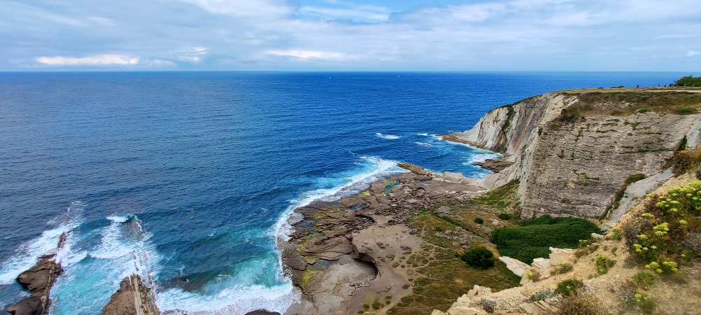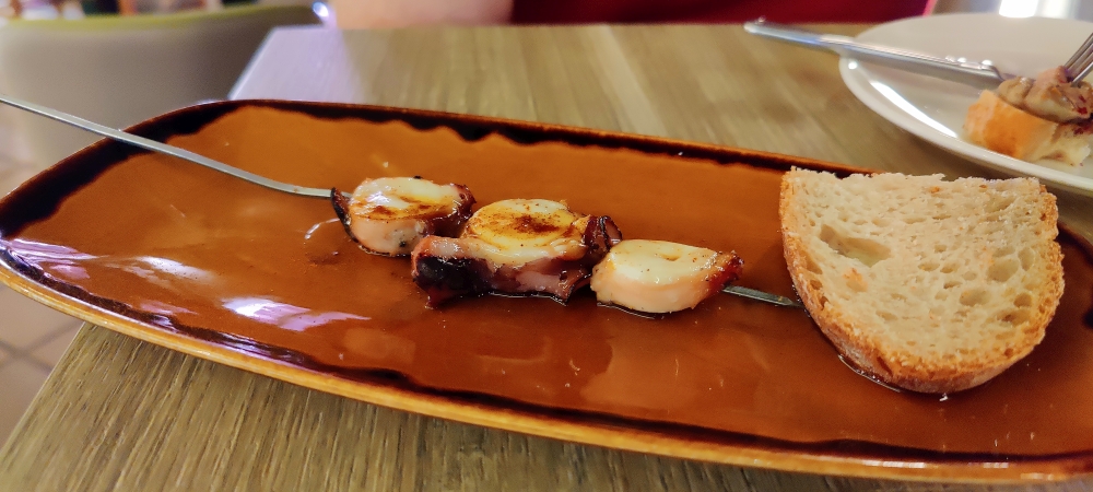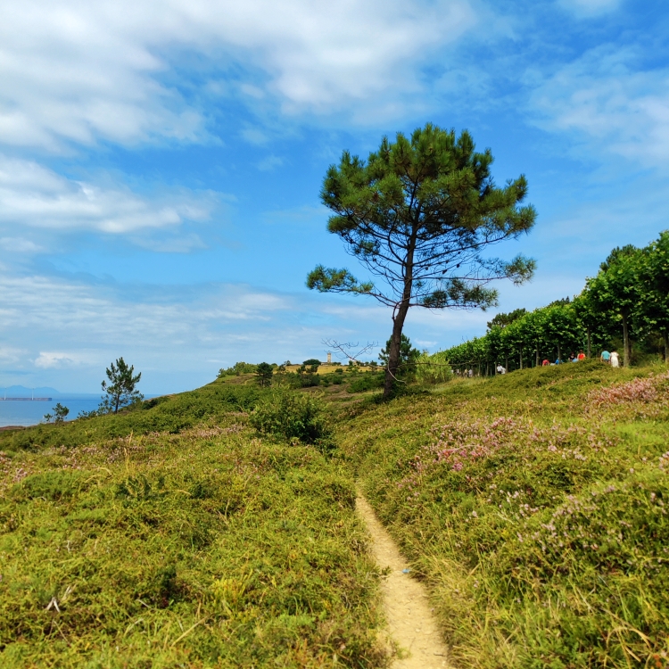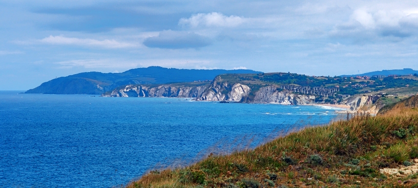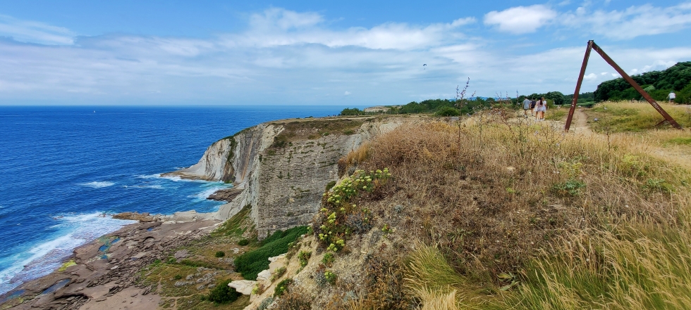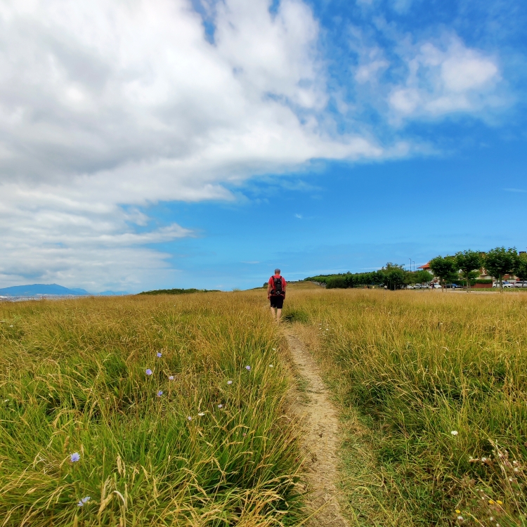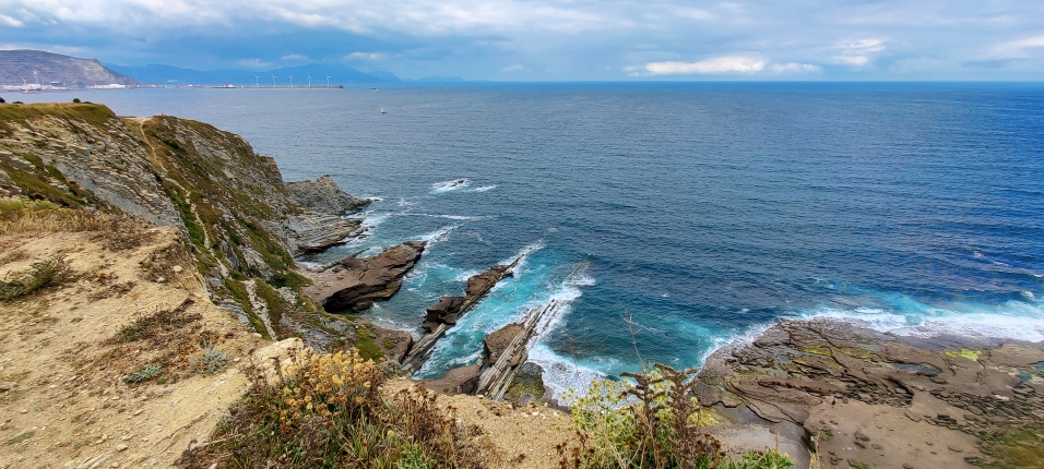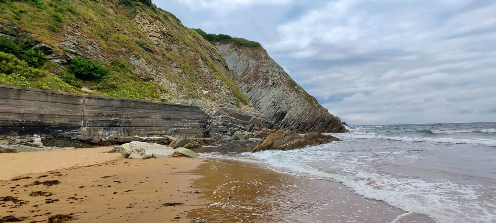 Wir fahren gegen Mittag mit der U-Bahn nach Bideluze und spazieren durch den kleinen Ort zum Ausgangspunkt unserer Wanderung, einer Windmühle. „Aixerrota“ wird sie auf spanisch genannt, von dort hat man einen tollen Ausblick auf Getxo und die Steilküste. Hier startet auch der befestigte Küstenweg „La Galea“, der uns an einem Leuchtturm vorbei zu den schönen Stränden der Küste des Baskenlandes bringt. Der Wind weht kräftig und es ist stark bewölkt bei angenehmen 27 Grad – genau das richtige Wanderwetter. Hier kann man die Route nachverfolgen. Nach etwa sieben Kilometern sind wir beim Atxabiril bzw. Arrietara-Strand anglangt. Der weitläufige Sandstrand liegt zwischen zwei Steilküsten und ist nach Norden ausgerichtet. Zuallererst trinken wir Cerveza im Strandcafé, dazu gibt’s Pintxo Gilda und ein Stück Tortilla mit Schinken.