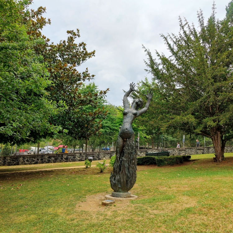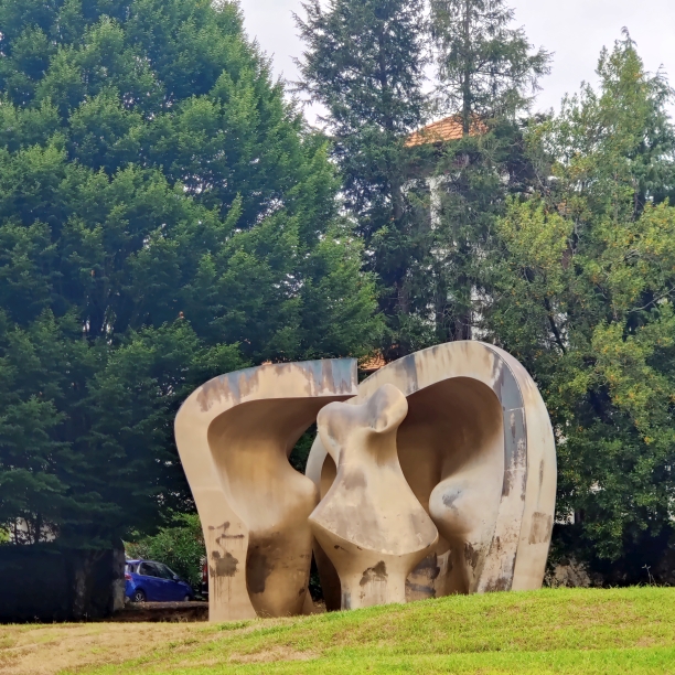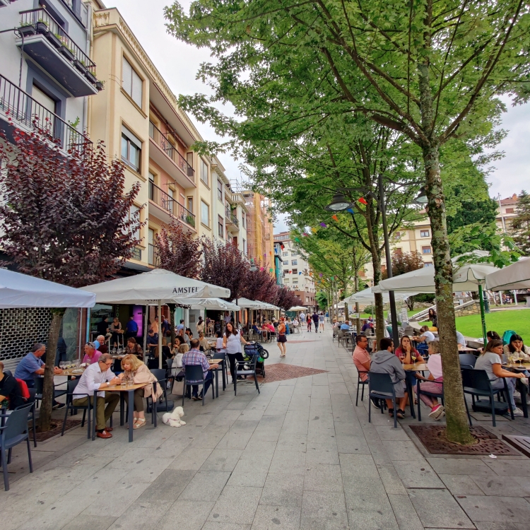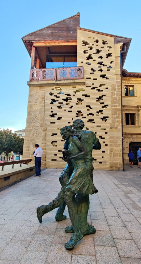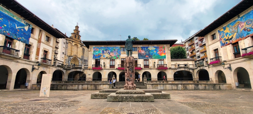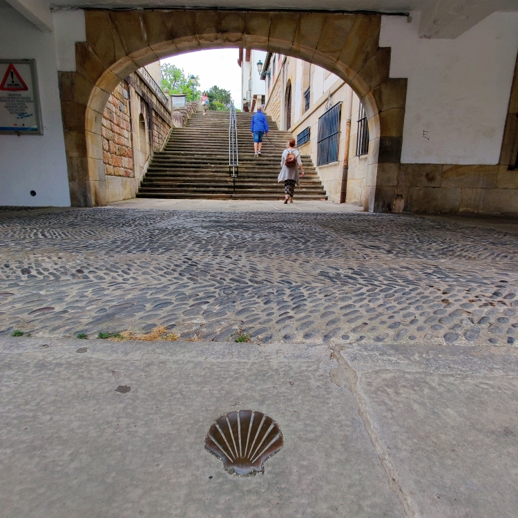 Mit unserer gewonnenen Zeit wissen wir natürlich etwas anzufangen. Wir machen einen Zwischenstopp in Gernika – einer Stadt, die im Bürgerkrieg 1937 beinahe zur Gänze zerstört wurde. Bekannt ist es vor allem durch das Gemälde „Guernika“ von Picasso. Das Bild ist etwa 3,5 mal 7,80 Meter groß. Mit Öl auf Leinwand hat Picasso den Luftangriff der deutschen Legion Condor und der italienischen Corpo Truppe Volontarie, die während des Spanischen Bürgerkrieges auf Seiten Francisco Francos kämpften, festgehalten. Auch der Jakobsweg führt durch Gernika. Wir spazieren in die Stadt, vorbei am Museum des Friedens und gönnen uns Schinkensandwiches und ein kühles Bier. Danch fahren wir knapp 90 Minuten nach Briñas.