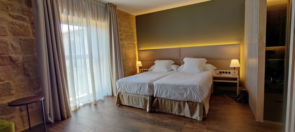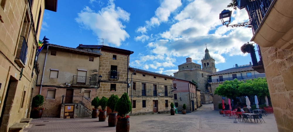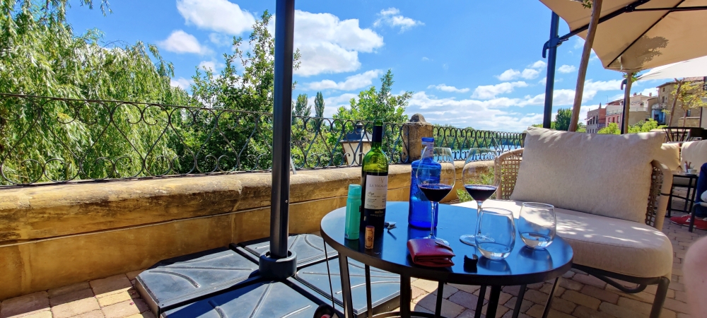 Briñas liegt im Weingebiet La Rioja, etwa vier Kilometer nördlich der Hauptstadt Haro. Wir haben ein großartiges Hotel gebucht. Der Palacio Tondón wurde 2018 eröffnet und befindet sich direkt neben dem Fluss Ebro. Wir haben ein großzügiges Zimmer mit Flussblick. Wir machen es uns sogleich auf der Terrasse des Hotels gemütlich, trinken Wein und lassen den Nachmittag ausklingen.