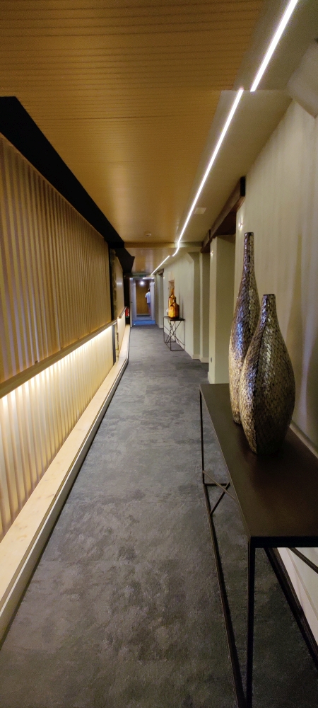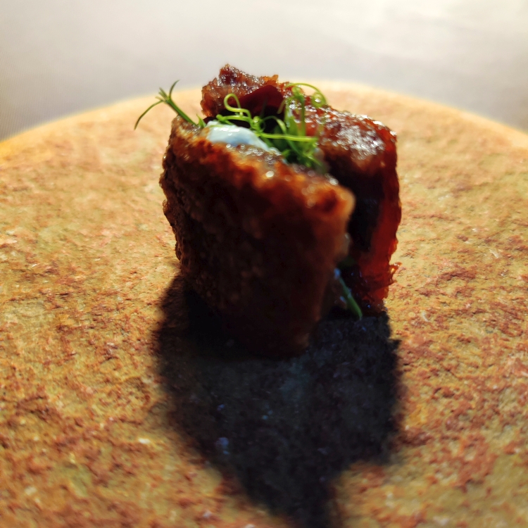Heute haben wir wieder ein nobles Restaurant gebucht: Das Michelin-ausgezeichnete Nublo Restaurant. Als wir ankommen, müssen wir noch ein paar Minuten warten und bekommen eine Kombucha-Variante mit Lemongrass in die Hand gedrückt, die es nur in baskischen Michelin-Restaurants gibt. Die wartenden Gäste werden alle einzeln abgeholt und bekommen eine kurze Erklärung zum Weinkeller, dessen Wendeltreppe ds Muster von Libellenflügeln hat, um das Licht optimal zu verteilen. Aus rund 250 verschiedenen Weinen darf der Sommelier jeden Tag auswählen. Dann dürfen wir den Koch in der Küche besuchen, der uns freundlich empfängt und uns den Tonofen, den Holkohelofen und den Niro-Grill zeigt. Danach werden wir zu unserem Platz geführt – einer von sechs Tischen in einem Raum mit quadratischem Grundriss, der rund acht Meter hoch ist. Jeder Tisch ist extra beleuchtet, die Gäste haben so das Gefühl, ihre eigene Insel zu haben. Es gibt eine Speisekarte, die wir über einen QR-Code abrufen – sie wechselt täglich und man kann sich nur zwischen groß oder klein entscheiden. Wir nehmen natürlich das große Menü mit Weinbegleitung. Uns erwarten 15 großartige Gänge, zuerst kleine Häppchen, dann etwas größere Portionen. Wir essen das beste Menü, das wir jemals gegessen haben: Knusprigen Kartoffel mit Trüffel, Steaktartar mit Hummercreme, rohen Shrimp auf geeister Limette, einen Schweinecracker mit Seegurke, einem Stück Bonito mit Paprikaemulsion und vieles vieles mehr. Es ist köstlich und wird mit perfekt passenden Weinen begleitet. Die Atmosphäre im Raum ist wunderbar, in der Mitte hängt ein runder weißer Vorhang, der in wechselnden Farben beleuchtet wird – manchmal blitzt es wie bei einem Gewitter. An diesem Ort wird der perfekte Abend inszeniert – zu einem Preis, der im Vergleich zu anderen Sternerestaurants seehr niedrig ist. Genau um Mitternacht sind wir fertig und fahren mit dem Taxi zurück, der Fußweg wäre jetzt eindeutig zu anstrengend. Heute sind wir wegen der langen Autofahrt und dem chilligen Terrassen-Nachmittag „nur“ 16.804 Schritte gegangen.