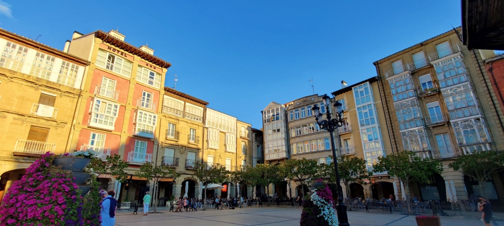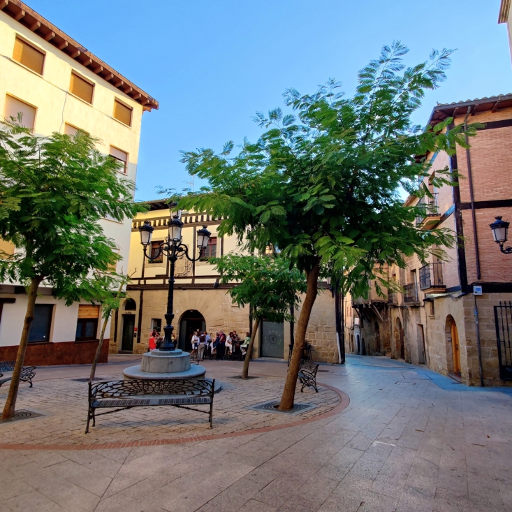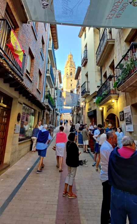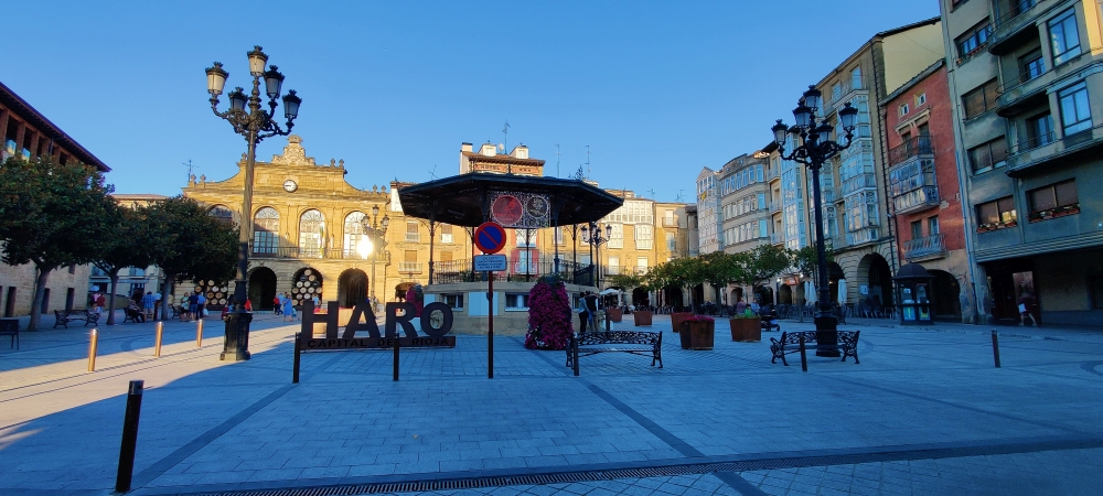Um 19:30 Uhr machen wir uns zu Fuß auf den Weg nach Haro, der Hauptstadt des Weins. Wir spazieren entlang des mit Platanen gesäumten Ebro, überqueren eine Brücke und kommen an weltbekannten Weingütern, wie La Rioja Alta, Muga, R. López de Heredia – Viña Tondonia und Roda vorbei. Eine Stunde später sind wir in Haro angekommen, der Weg führt uns mitten durch den Hauptplatz.