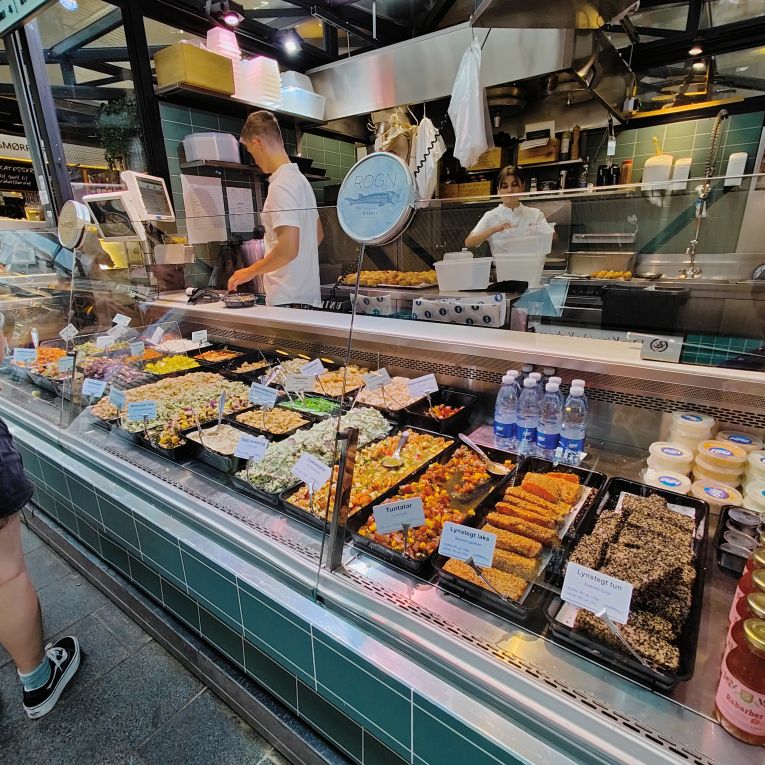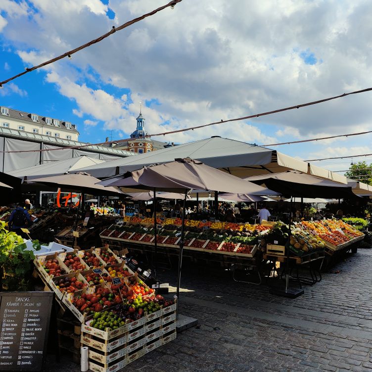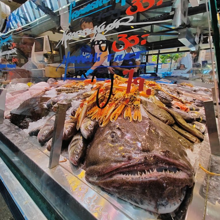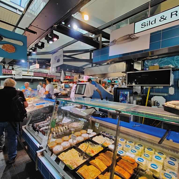 Das Parkhaus liegt gleich neben der Torvehallerne – einer Markthalle, in der es alles gibt, was das Herz begehrt: Fisch, Fleisch, Gemüse, Schokolade, Wein und jede Menge Sitzgelegenheiten zwischen den beiden Hallenbereichen. Überall sitzen Menschen und genießen die Abendsonne. Wir schlendern durch den Markt und essen Thunfisch- und Lachstatar, dazu Krabbensalat. Dann holen wir unsere Koffer vom Auto und gehen etwa zehn Minuten zu Fuß zum Hotel. Es liegt in einer Fußgängerzone direkt neben dem Rundetårn, den wir am Sonntag besuchen werden. Auf dem Weg fallen uns die vielen Fahrräder auf, die überall in der Stadt geparkt sind. Kopenhagen ist die Fahrradhauptstadt Europas!
