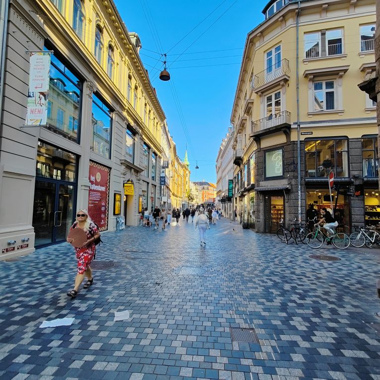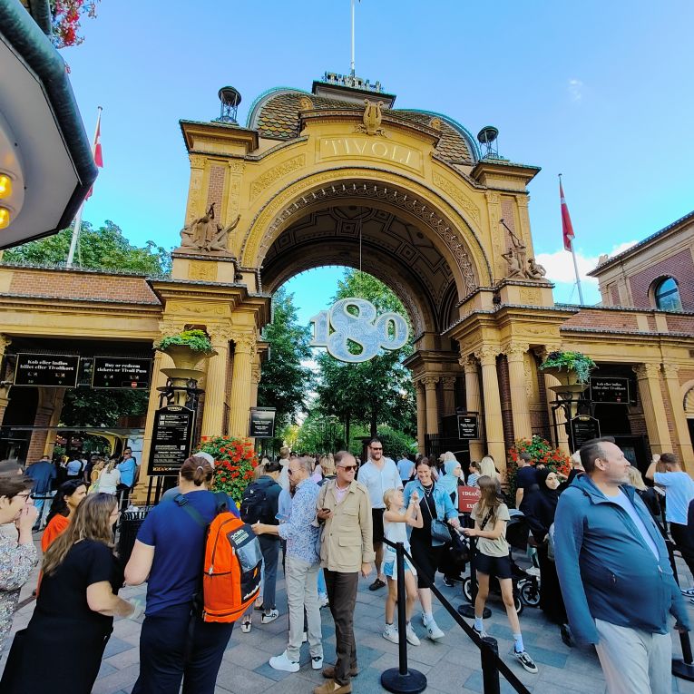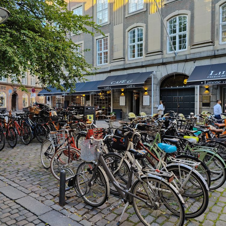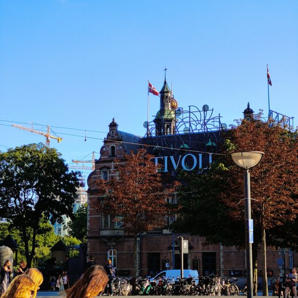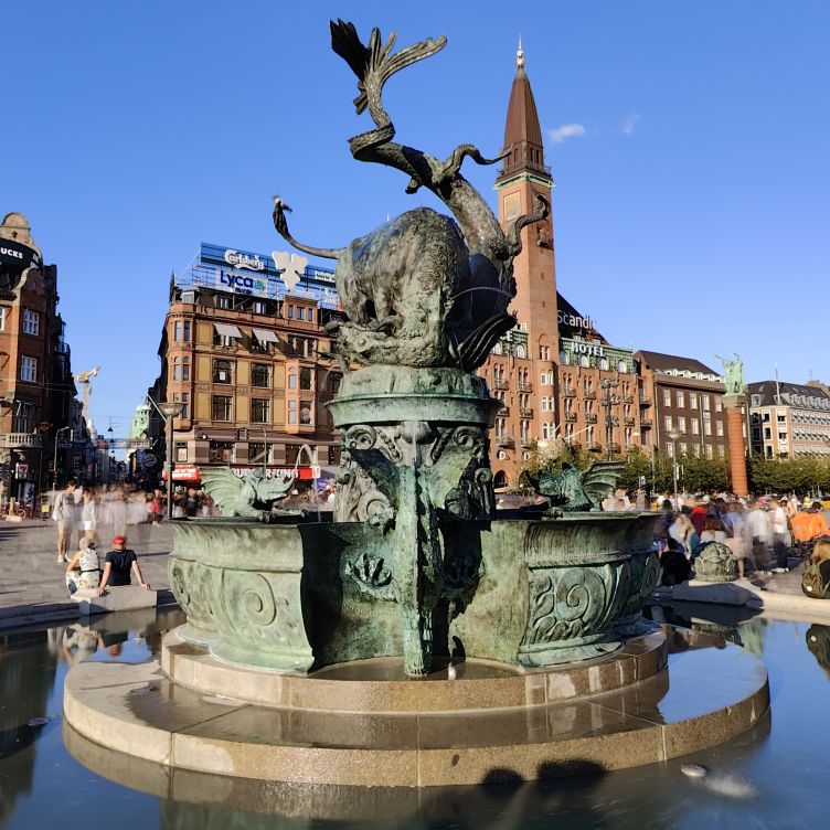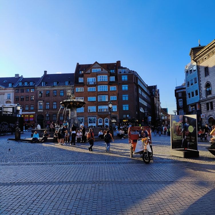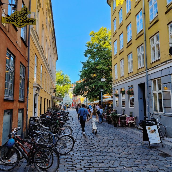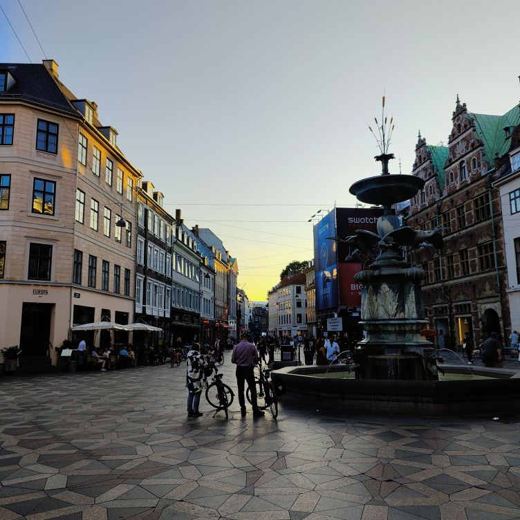 Bevor wir Abendessen gehen, brachen wir zu einer ersten Stadterkundung auf. Durch die Altstadt Indre By gehen wir zum Rådhuspladsen, dann weiter zum Tivoli. Eigentlich wollten wir einmal durch den weltbekannten Vergnügungspark schlendern und hätten mit unserer Kopenhagen Card sogar freien Eintritt gehabt. Aber die Schlangen sind unendlich lange und wir entscheiden uns gegen stundenlanges Warten. Über die Magdstraede (deutsch: Markstraße) gehen wir wieder zurück. Sie ist eine der ältesten Straßen von Kopenhagen und überzeugt mit ihrem authentischen Flair. Überall fahren Menschen mit dem Fahrrad – Kopenhagen wurde schon mehrmals zur besten Fahrradstadt der Welt gewählt. Die Hälfte aller Pendlerfahrten werden hier mit dem Rad zurückgelegt, im Stadtzentrum von Kopenhagen gibt es mehr Fahrräder als Autos. Knapp 1,5 Millionen Kilometer pro Tag werden auf zwei Rädern zurückgelegt. Dafür gibt es Radwege mit einer Gesamtlänge von knapp 400 Kilometern.