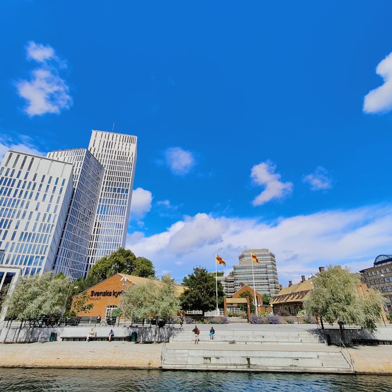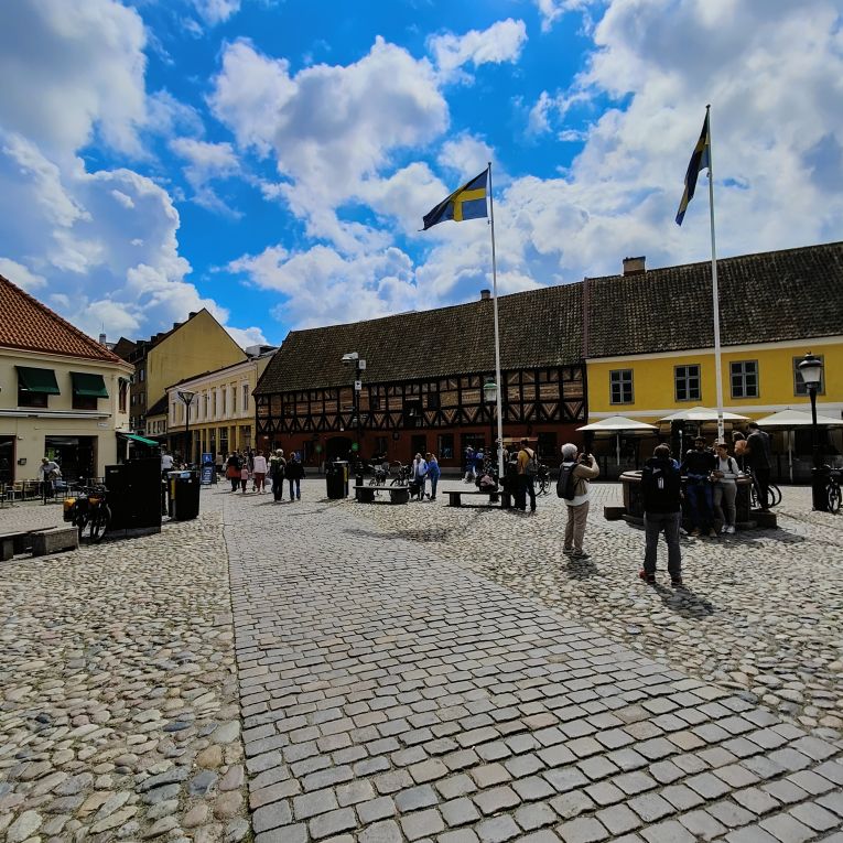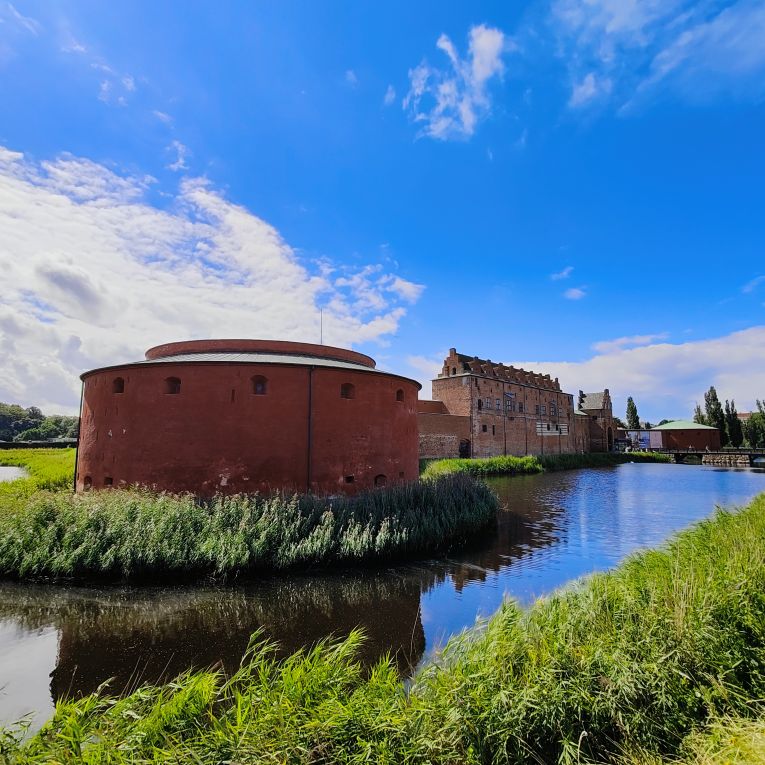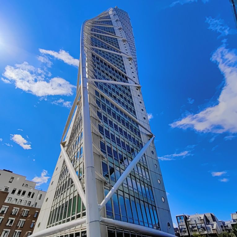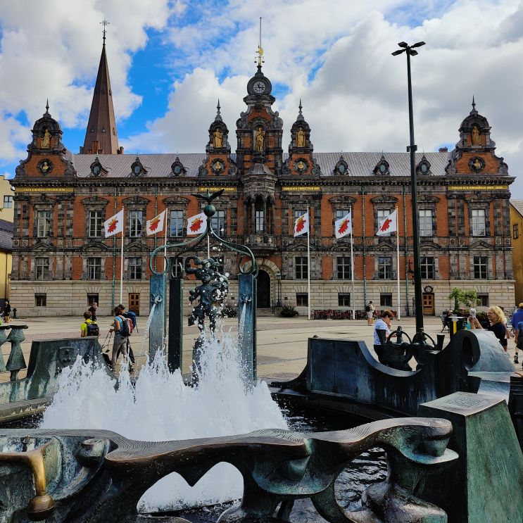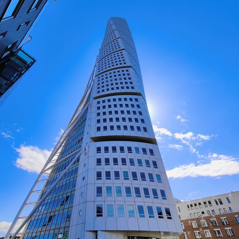 Gegen Mittag sind wir in Malmö und unterbrechen unsere Fahrt für einen kleinen Stadtspaziergang. Wir bewundern den „Turning Torso“, den höchsten Wolkenkratzer Skandinaviens und das dritthöchste Wohngebäude Europas. Entworfen wurde es vom spanischen Architekten Santiago Calatrava, den wir schon von unserem Baskenland-Urlaub kennen. Er zeichnet auch für den Bau der Zubizuri-Brücke in Bilbao verantwortlich. Das Hochhaus ist 190 Meter hoch und beherbergt 54 Etagen. Dann suchen wir uns einen Parkplatz neben dem Malmöhus und drehen eine Runde entlang des Förstadskanalen und durch die Altstadt.