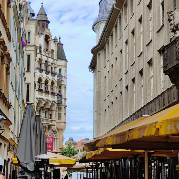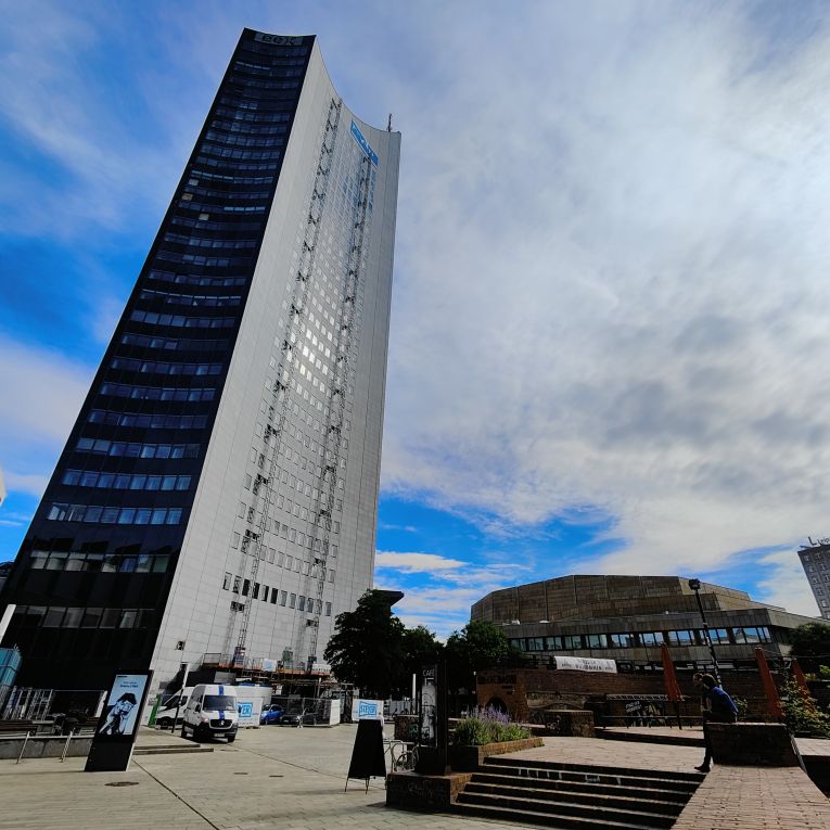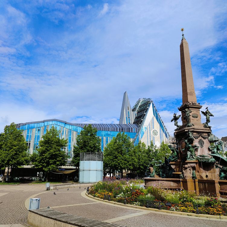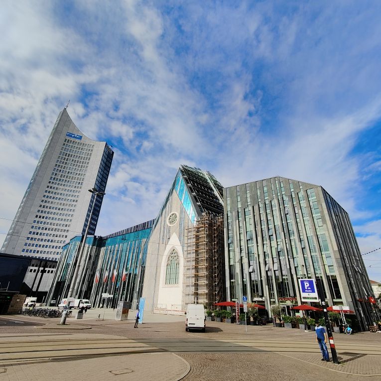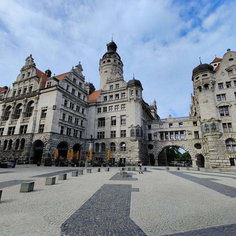Nach dem sehr feinen Frühstück im zentral gelegenen Innside by Mélia starten wir zu Fuß zu einem kleinen Stadtspaziergang. Er führt uns vorbei an der Thomaskirche zum beeindruckend großen neuen Rathaus. Dann gehen wir über den Burgplatz, die Altstadt und die Moritzbastei zum Augustusplatz, von dem aus wir einen tollen Ausblick auf das City-Hochhaus, das Gewandhaus, die Universität und die Oper haben. Dann geht’s wieder in die Altstadt hinein zur Nikolaikirche, die leider noch nicht geöffnet ist. Wir gehen an Auerbachs Keller vorbei durch die Mädler-Passage bis zum Markplatz mit dem Alten Rathaus. Durch das Barfußgässchen gehen wir wieder zurück zum Hotel. Dort checken wir aus und fahren mit dem Taxi zum Auto.