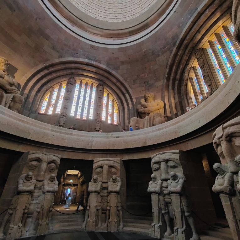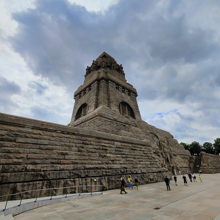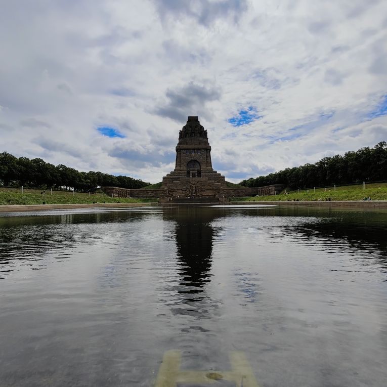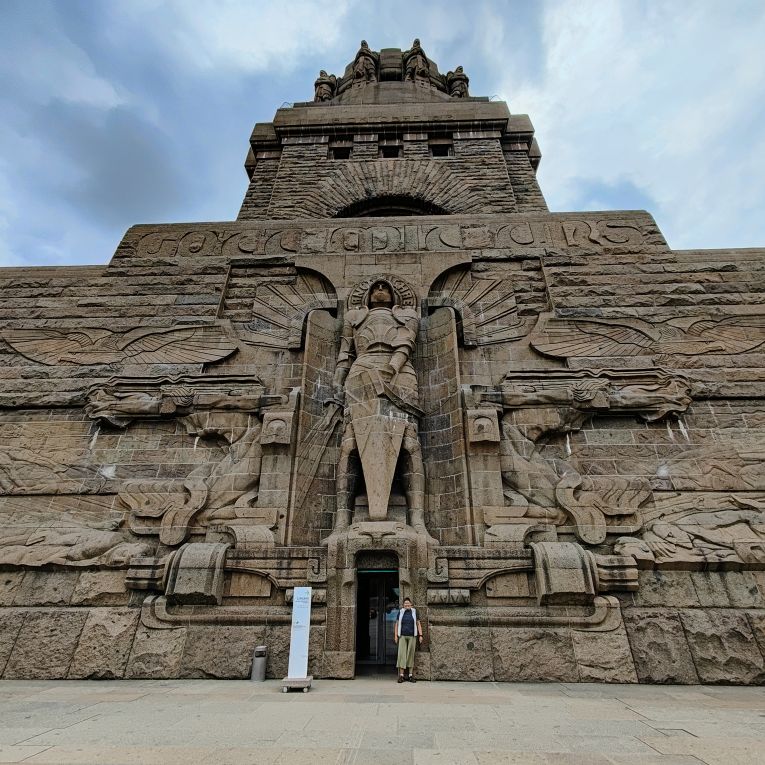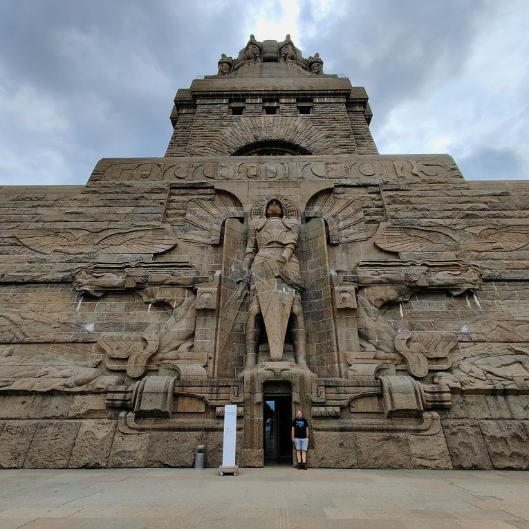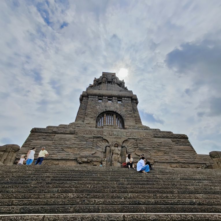 Bevor wir nach Hause fahren, machen wir noch einen Zwischenstopp beim beeindruckenden Völkerschlachtdenkmal. Mit 91 Metern Höhe ist es das höchste Denkmal Europas und eines der bekannten Wahrzeichen Leipzigs. Unmittelbar vor dem Monument befindet sich ein künstlich angelegtes knapp 13.000 Quadratmeter großes Wasserbecken, in dessen Wasseroberfläche sich das Monument spiegelt. Die Völkerschlacht bei Leipzig, auch als Schlacht von Leipzig bekannt, vom 16. bis 19. Oktober 1813 war die entscheidende Schlacht der Befreiungskriege. Dabei besiegten die Truppen der Allianz von Russland, Preußen, Österreich und Schweden sowie kleineren Fürstentümern die Truppen Frankreichs und seiner Verbündeten unter Napoleon Bonaparte. Die Folge war Napoleons Rückzug aus Deutschland, begleitet vom Zusammenbruch des Rheinbunds als Stütze seiner Herrschaft. Das Denkmal wurde zum einhundertsten Jahrestag 1913 fertiggestellt.