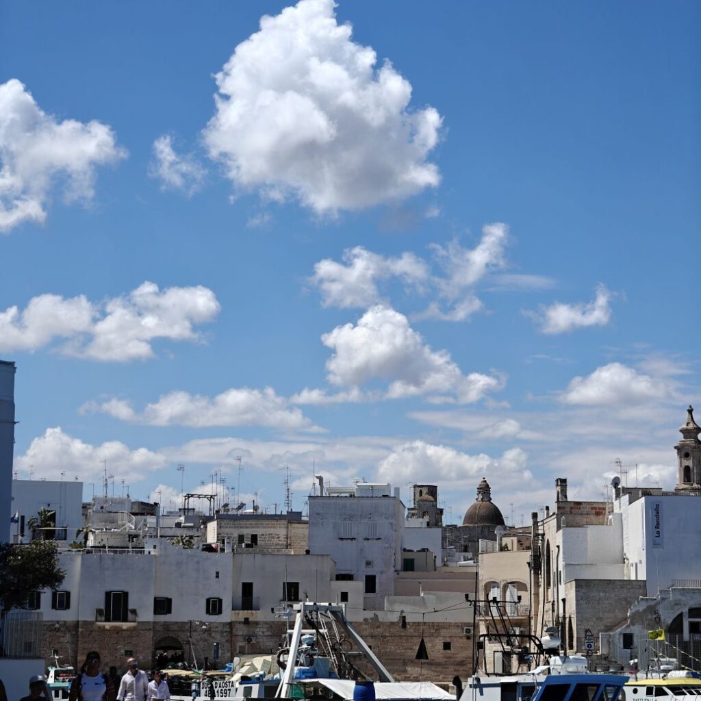 Um 6:00 Uhr morgens fahren wir mit dem Auto zum Flughafen Linz. Wir fliegen nur mit Handgepäck und ersparen uns den Gepäckaufgabe-Stress. Pünktlich um 8:00 Uhr heben wir mit der Ryanair ab und landen bereits 70 Minuten später am Flughafen Bari. Wir haben ein Mietauto bei SIXT gebucht und bekommen einen nagelneuen Jeep Compass E-Hybrid. Aber erst, nachdem uns die Dame am Schalter Upgrades und Zusatzversicherungen andrehen wollte. Nachdem wir alles erfolgreich abgewehrt haben, starten wir mit großem Zeitvorsprung Richtung der 60 Kilometer entfernten Stadt Monopoli.