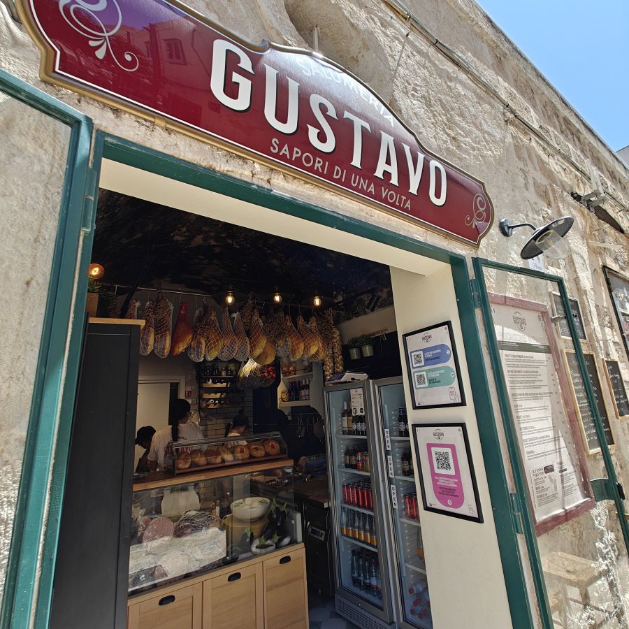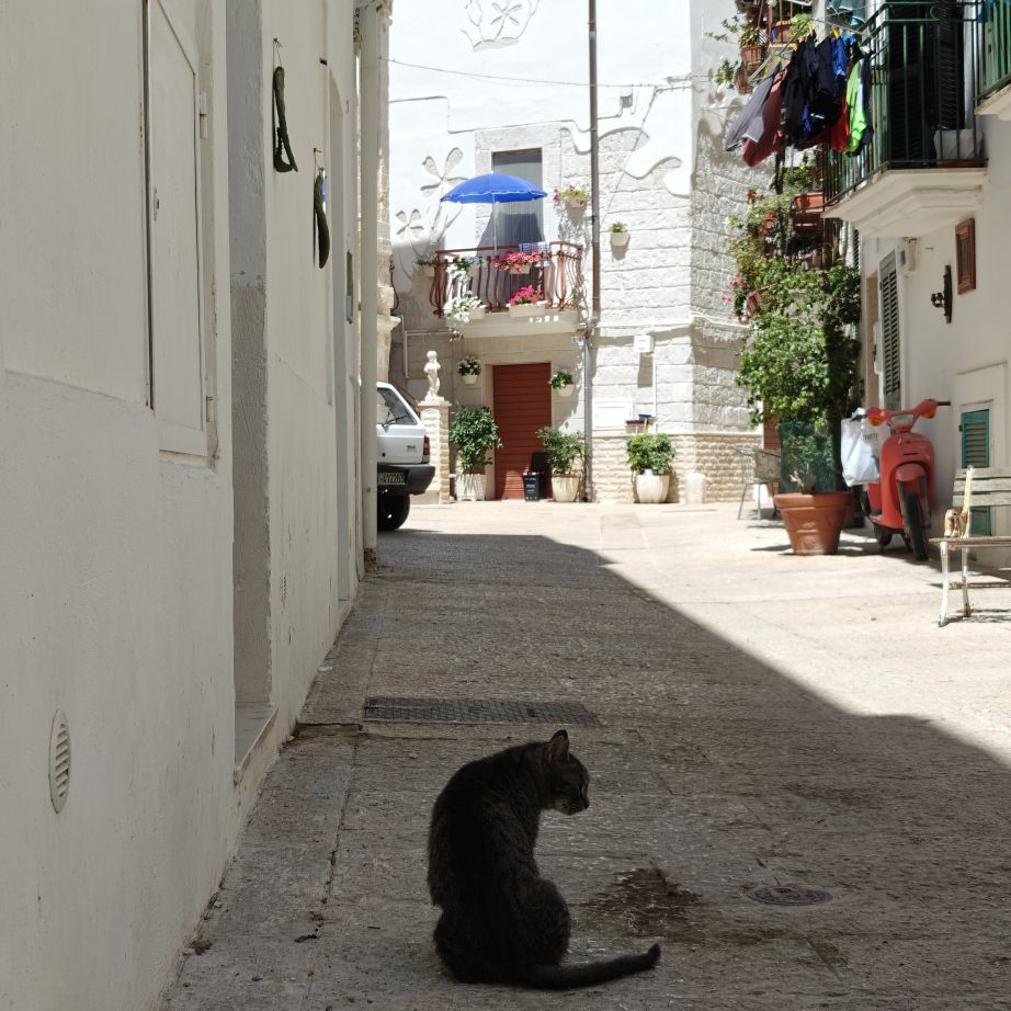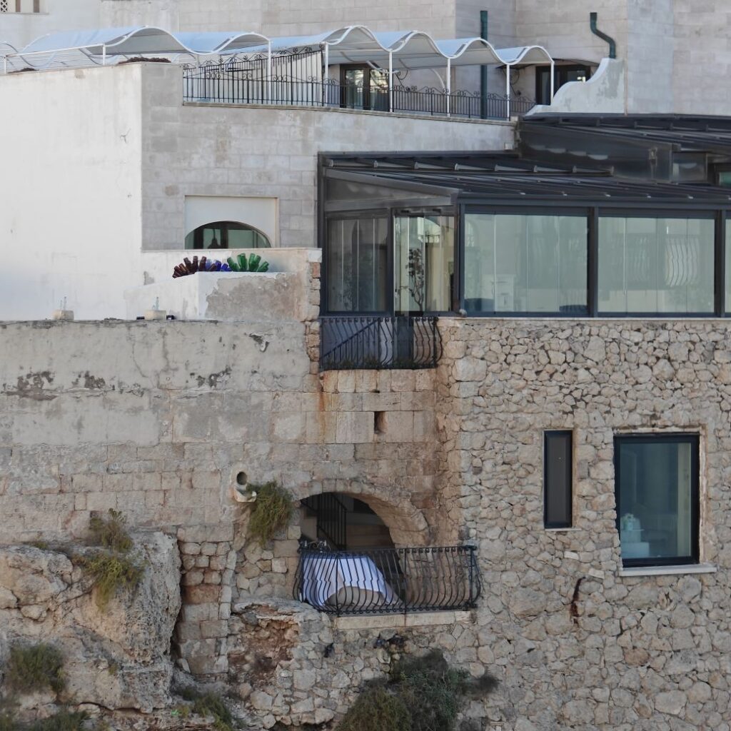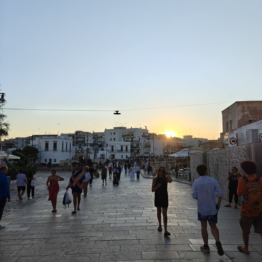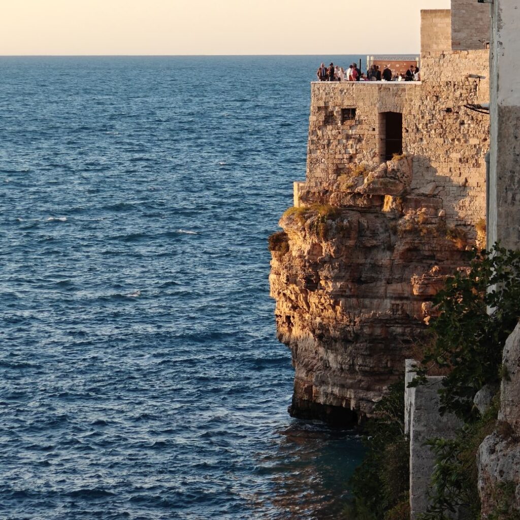 Als erste Sehenswürdigkeit kommen wir am Lama Monachile vorbei, einem idyllischen Kiesstrand zwischen schroffen Felswänden. Wir betreten die Altstadt über die Ponta Borbonico und durch ein Tor an der Piazza Giuseppe Garibaldi. Langsam schlendern wir durch enge Gässchen zu verschiedenen Aussichtspunkten. Wir erhaschen auch einen Blick auf das berühmte Höhlenrestaurant Grotta Palazzese. Ein Abend für zwei Personen kostet dort mindestens 2.000 Euro – nicht unsere Liga. Wir verlassen die Altstadt wieder und gehen direkt zum Restaurant, das wir für heute Abend gebucht haben. Im Jamanté – Experience Restaurant geht es ums Detail – auf Dekoration, Privatsphäre und gute Atmosphäre wird großen Wert gelegt. Das kulinarische Erlebnis sucht seinesgleichen. Wir essen Thunfisch mit Honig und Calvadossauce (Christoph), gegrillten Oktopus auf einem Tomatenspiegel (Claudia), als Zwischengang die berühmten Orrechiette mit Cime di Rapa Creme, Mandeln und Burrate. Der Hauptgang ist köstlich und besteht für Christoph aus einem perfekt gegarten Rib-Eye Steak und für Claudia aus einem schönen Stück Rombo (Steinbutt) mit Karottencreme. Der Koch Gianluca Torres ist einer der Vereinigung „Ambasciatori del Gusto“, ein Botschafter des Geschmacks. Wir trinken nur apulische Weine – eine Flasche Falanghina und eine Flasche Negroamaro. Nachdem bei Christoph tatsächlich noch ein Tiramisu hinunterbekommt, zahlen wir und gehen rund eine halbe Stunde zu Fuß zurück in die Unterkunft.