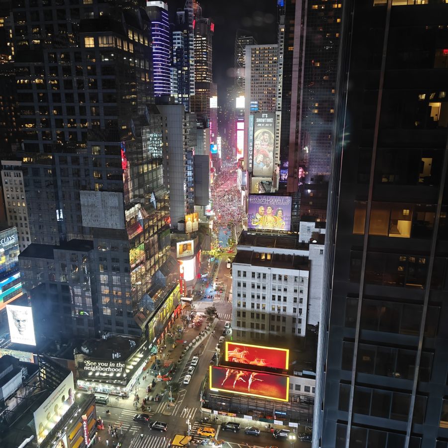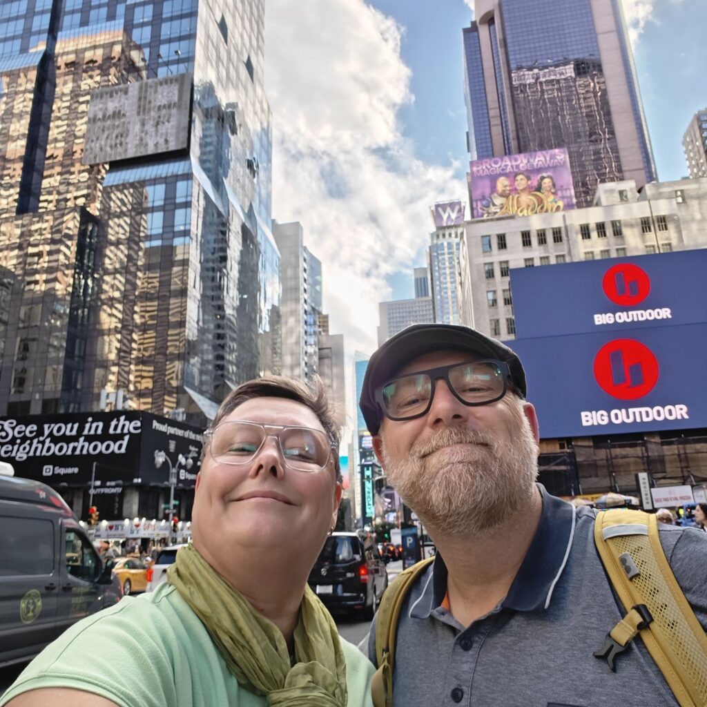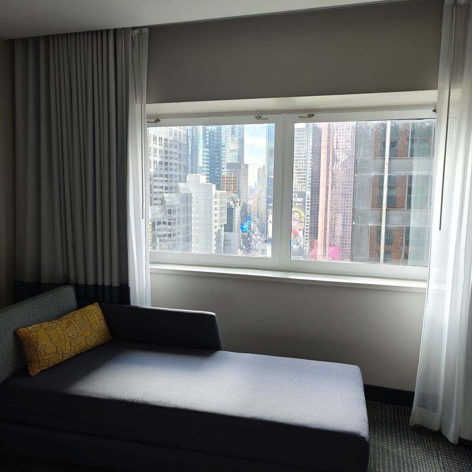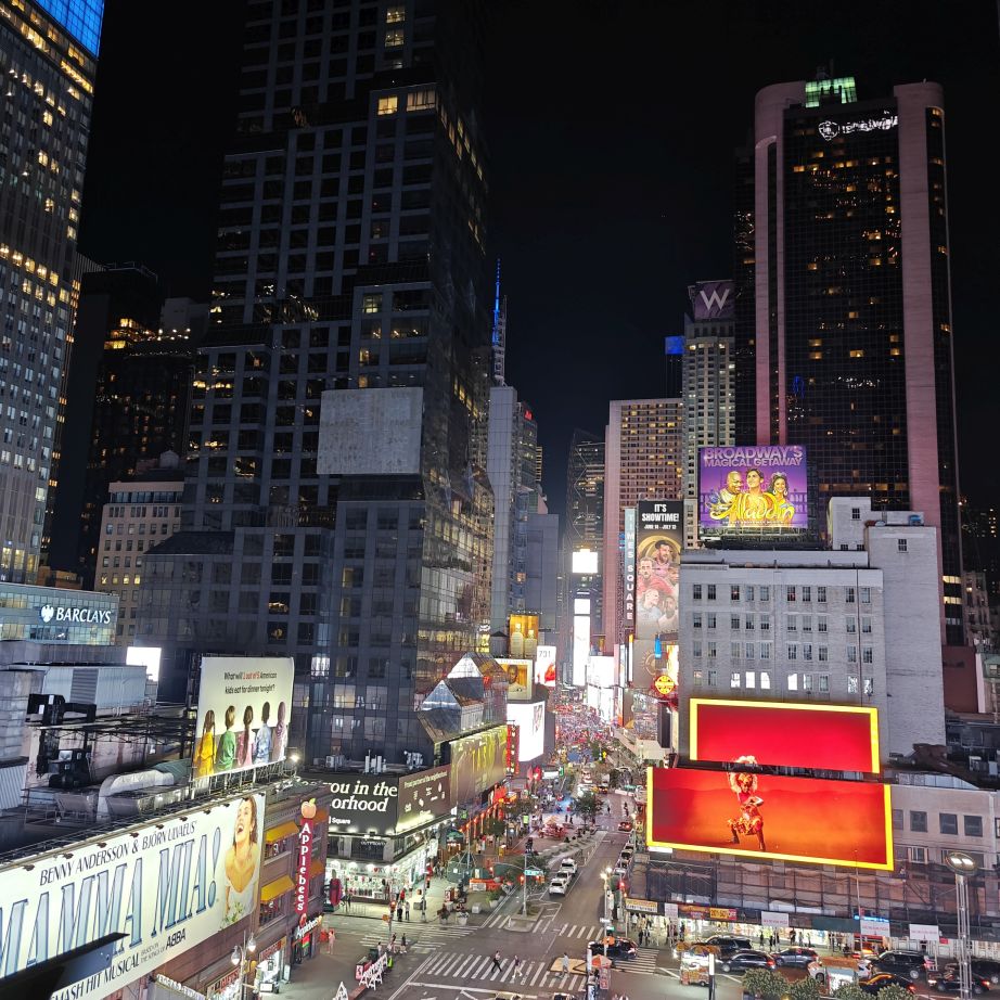 Nach etwa einer dreiviertel Stunde Fahrt sind wir im M Social Hotel New York Times Square angekommen, das direkt am Times Square liegt. Unser Zimmer ist groß und mit einem riesigen Kingsize Bett ausgestattet – das lieben wir an den USA. Aussicht auf den Times Square haben wir auch, hier lässt es sich die nächsten fünf Nächste aushalten.