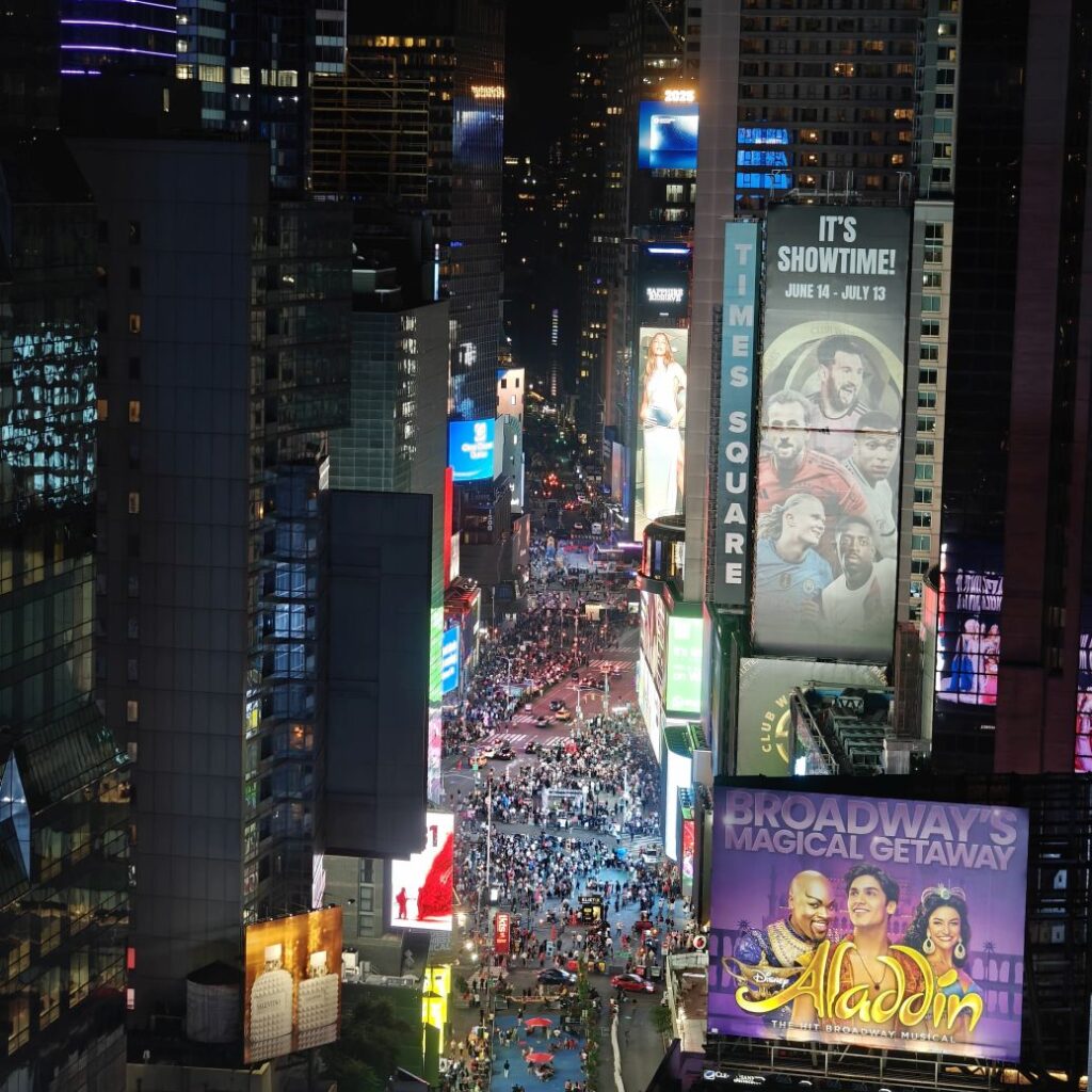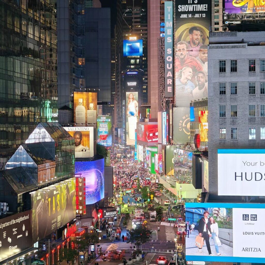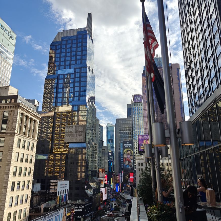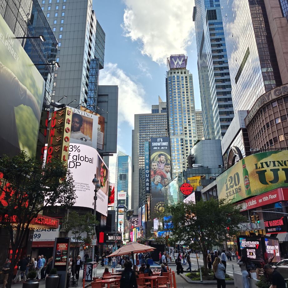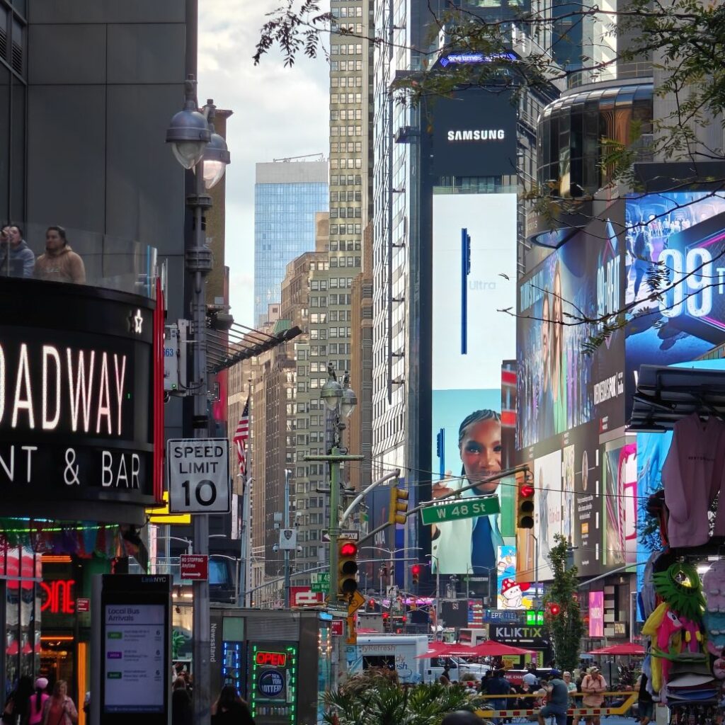 Wir biegen einmal um die Ecke und stehen auch schon am Times Square,, beeindruckend mit seinen Leuchtreklamen, Broadway-Theatern und Restaurants. Weltweite Bekanntheit hat er vor allem für seine Silvesterparty mit dem „Ball Drop“ erlangt. Mehr Infos gibt es auf der Website: Times Square NYC.