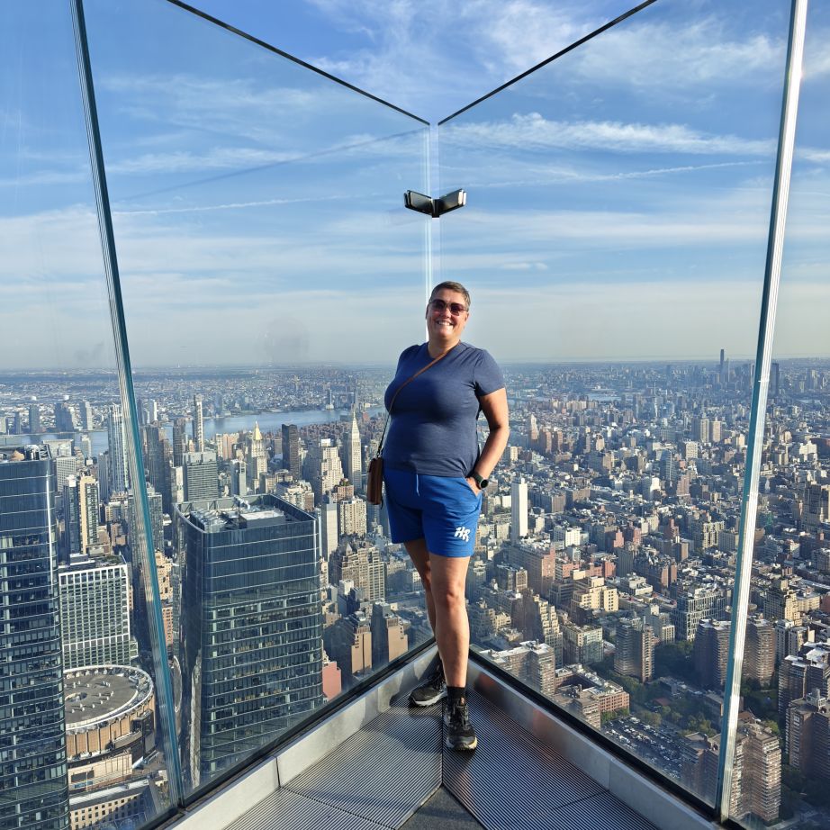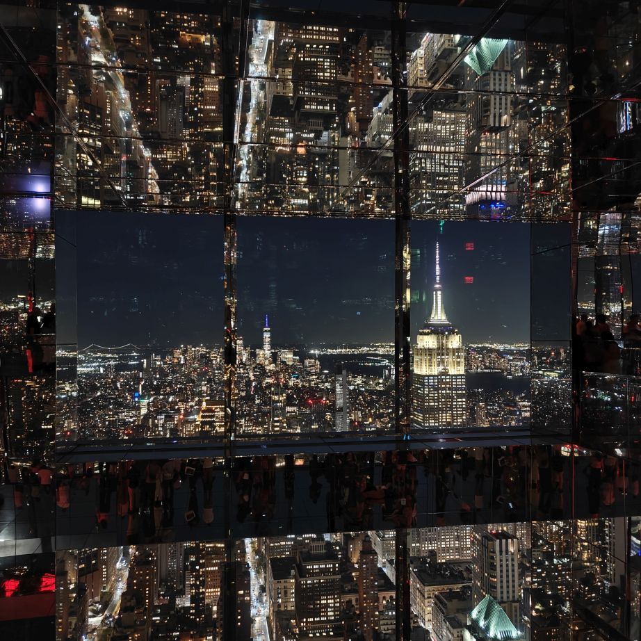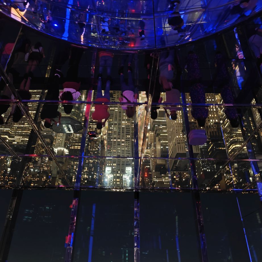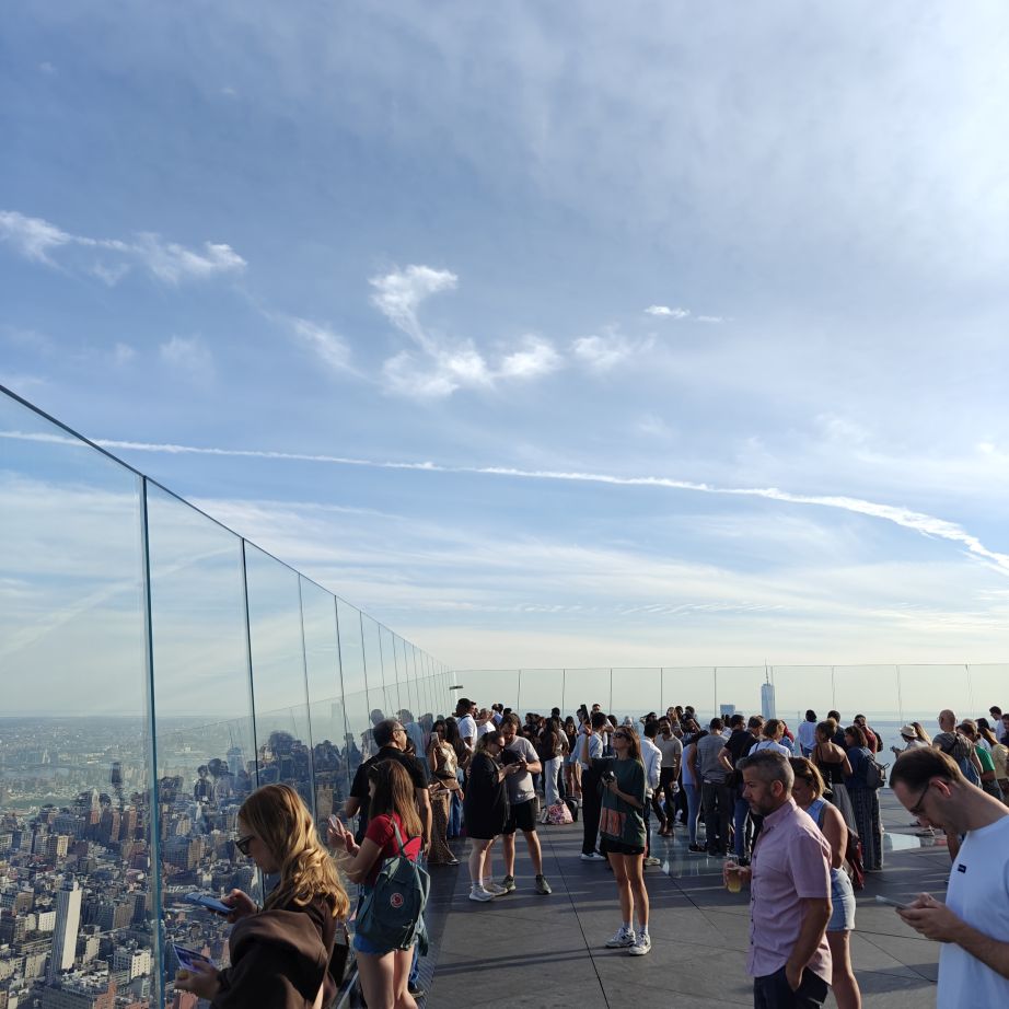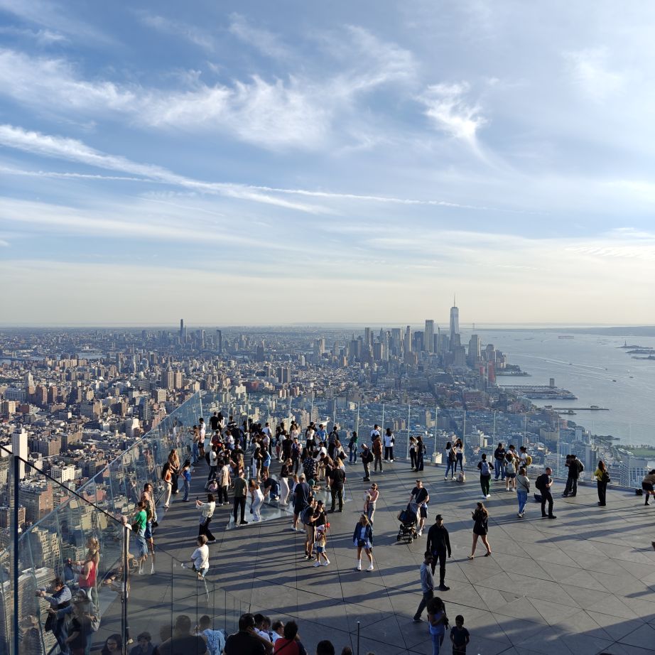 Eine Attraktion der Hudson Yards ist Edge, eine Freiluft-Aussichtsplattform im 100. Stockwerk eines Wolkenkratzers. Alleinstellungsmerkmal ist der begehbare Glasboden. Wir sehen die Taxis 345 Meter unter unseren Füßen fahren – very thrilling! Wir genießen die Nachmittagssonne, die laute Musik und ein kühles, überteuertes Bier. Dann fahren wir wieder nach unten und sehen zu, dass wir ins Hotel zurückkommen.