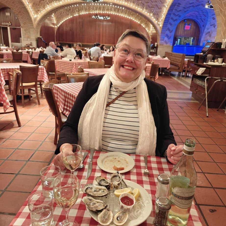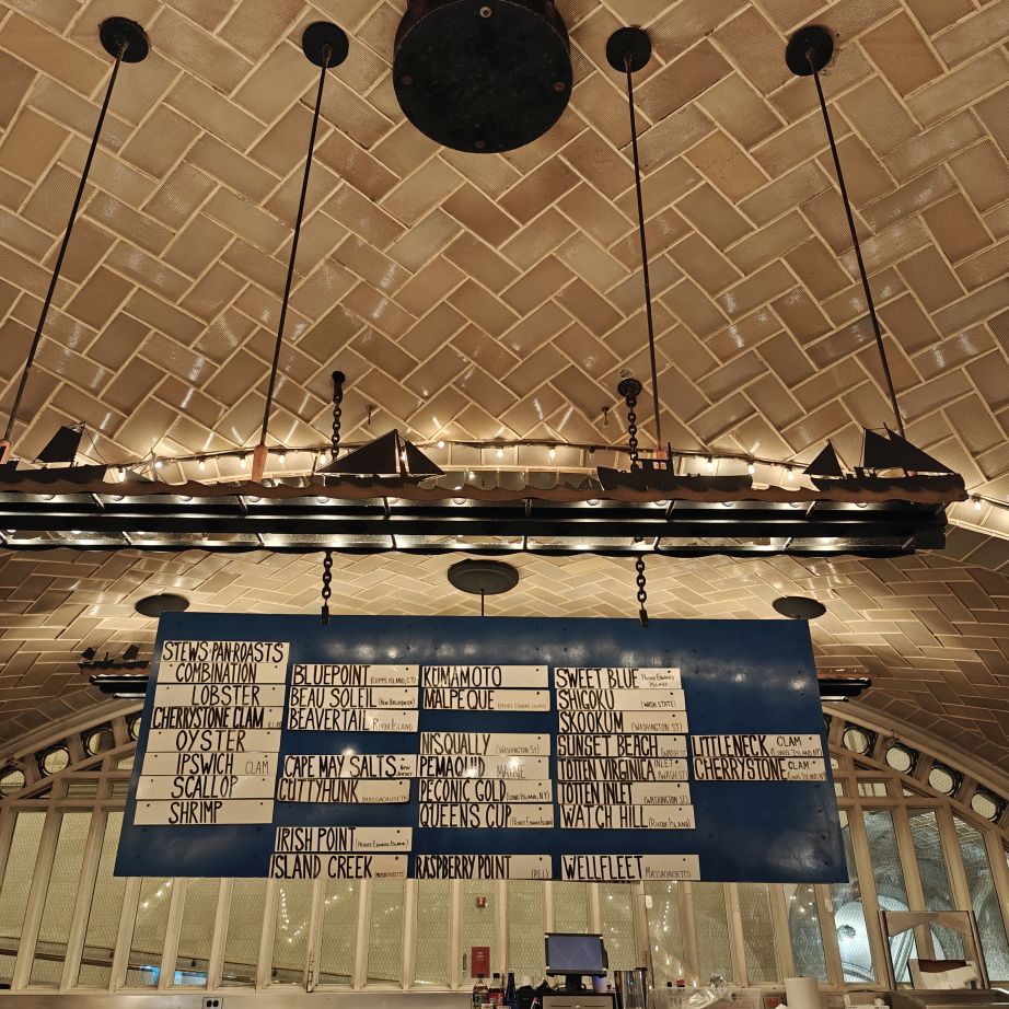 Unser letzter Abend in New York ist angebrochen. Frisch geduscht machen wir uns auf den Weg in die 42 Straße zum SUMMIT One Vanderbilt. Wir haben Tickets für 19 Uhr, müssen aber fast eine Stunde anstehen, bis wir mit dem Lift nach oben dürfen. Wir erleben das Konzept Aussichtsplattform im Wolkenkratzer in einer neuen Dimension. Alles ist verspiegelt, laute sphärische Klänge machen das Erlebnis perfekt. Besonderes Highlight: Ein Raum mit riesigen silbernen Ballonen lässt einen glauben, im Bällebad über New York zu schweben. Auf der Terrasse genießen wir das zweite überteuerte Bier des Tages und fahren wieder hinunter zur Grand Central Station, die sich unmittelbar daneben befindet. Der Bahnhof beeindruckt uns sehr. Im Gebäude versteckt ist auch ein besonderes Gastronomieangebot: die Grand Central Oyster Bar. Wir haben einen Tisch reserviert und genießen Austern, Fisch und eine kalifornische Weißweincuvée.