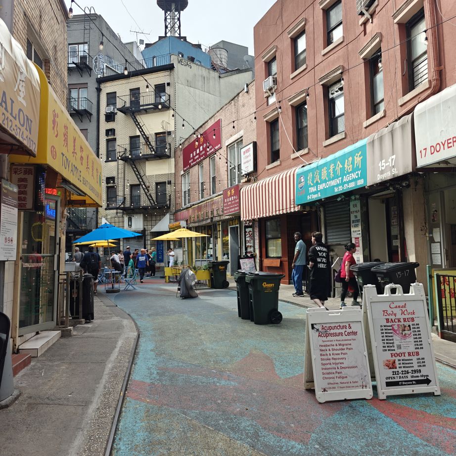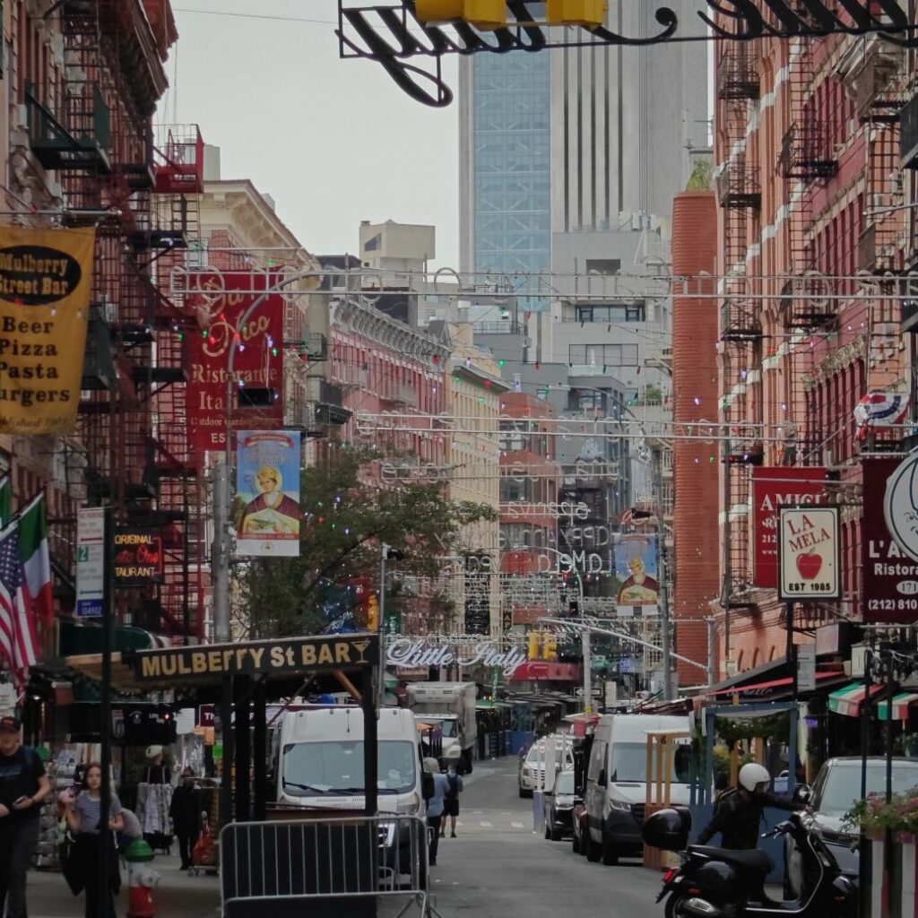 Wir fahren mit der Subway Richtung Lower East Side – kurz vor 10:00 Uhr versammeln wir uns mit einer Gruppe von ca. 15 Personen im Spring Street Park zu unserer nächsten Tour. Unser Tourguide Filip unternimmt mit uns einen Streifzug durch das gentrifizierte Szeneviertel SoHo (South of Houston Street), erkunden Little Italy und schlussendlich Chinatown.