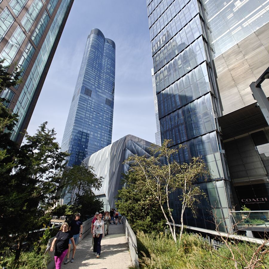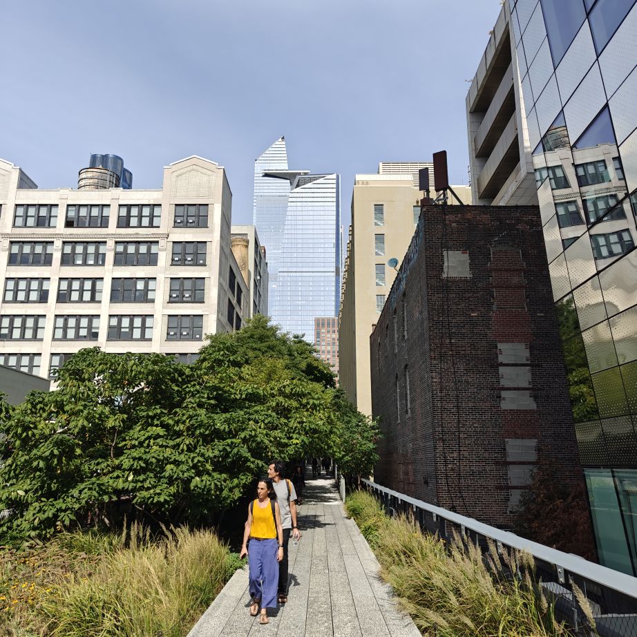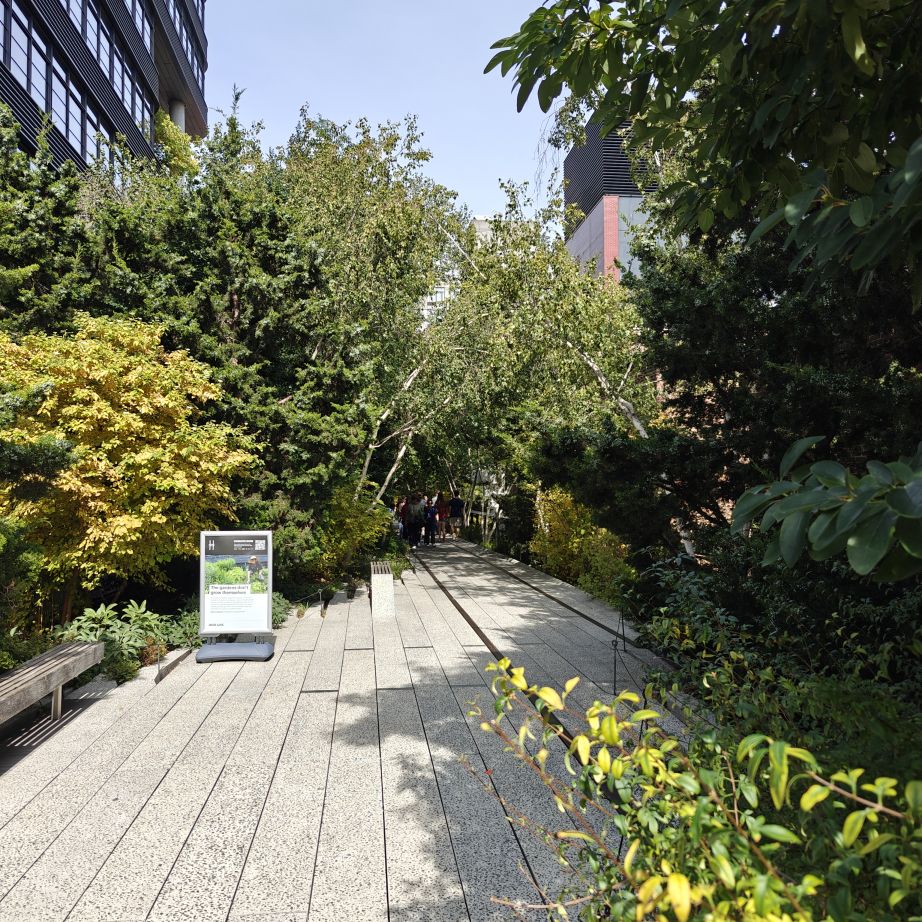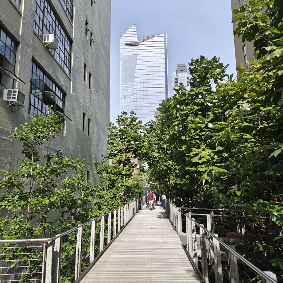 Die nächste Station ist der legendäre Chelsea Market. Ein weiteres Beispiel für den New Yorker Shabby Chic. Rund sechs Millionen Menschen besuchen das riesige Backsteingebäude im Herzen des Meatpacking District jährlich. Es gibt Restaurants und Geschäfte, in denen lokale Produkte eingekauft werden können. Alles sehr stylish, gerne wären wir den ganzen Nachmittag hiergeblieben. Daraus wird nichts, wir haben noch andere Pläne. Der nächste: die High Line bis zu den Hudson Yards gehen. Die High Line ist ein perfektes Beispiel für Stadtbegrünung. Einst eine Bahnlinie für Gütertransport, ist die Trasse heute ein 2,6 Kilometer langer öffentlicher Park, der zum Spazieren und Verweilen einlädt. Wir genießen den Schatten und die diverse Pflanzenwelt.