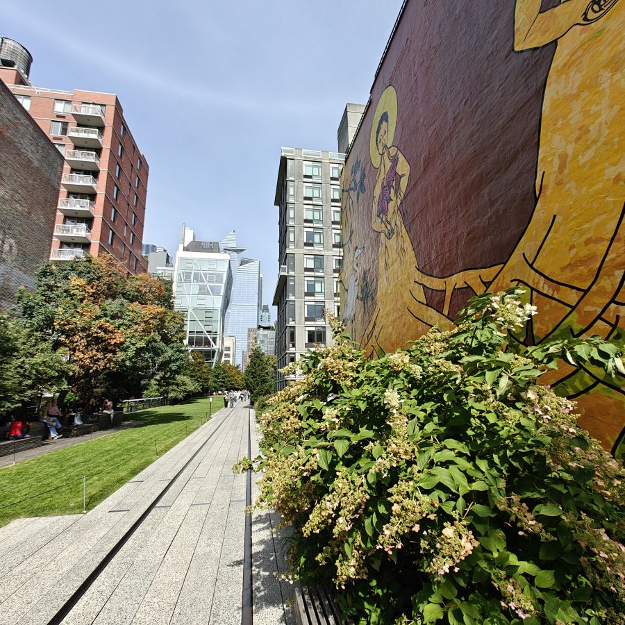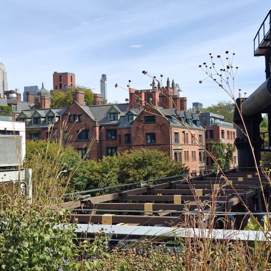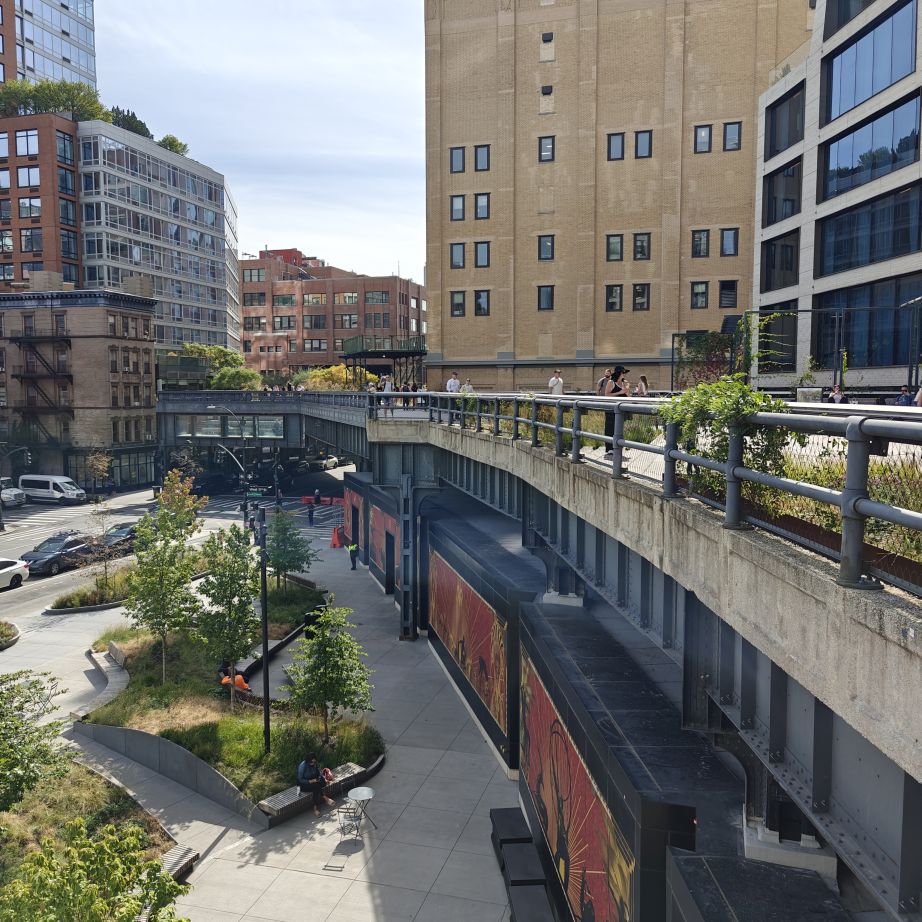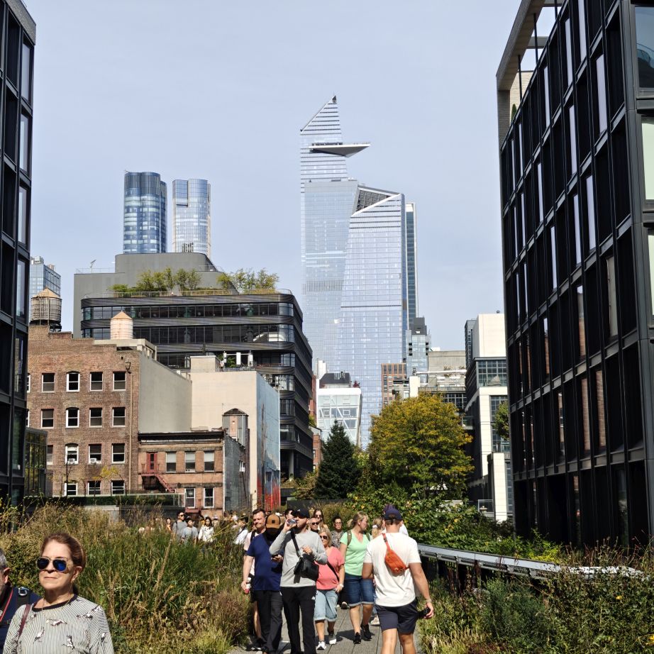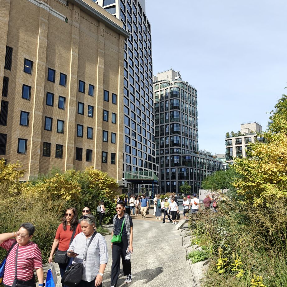 Die nächste Station ist der legendäre Chelsea Market. Ein weiteres Beispiel für den New Yorker Shabby Chic. Rund sechs Millionen Menschen besuchen das riesige Backsteingebäude im Herzen des Meatpacking District jährlich. Es gibt Restaurants und Geschäfte, in denen lokale Produkte eingekauft werden können. Alles sehr stylish, gerne wären wir den ganzen Nachmittag hiergeblieben. Daraus wird nichts, wir haben noch andere Pläne. Der nächste: die High Line bis zu den Hudson Yards gehen. Die High Line ist ein perfektes Beispiel für Stadtbegrünung. Einst eine Bahnlinie für Gütertransport, ist die Trasse heute ein 2,6 Kilometer langer öffentlicher Park, der zum Spazieren und Verweilen einlädt. Wir genießen den Schatten und die diverse Pflanzenwelt.