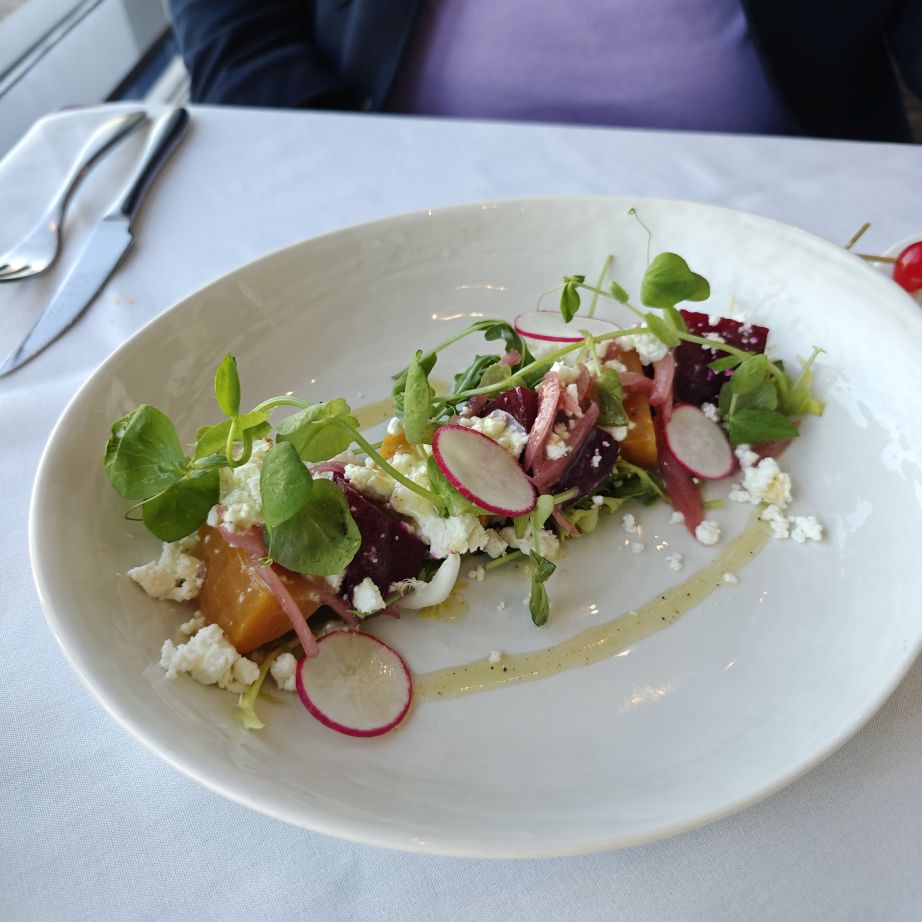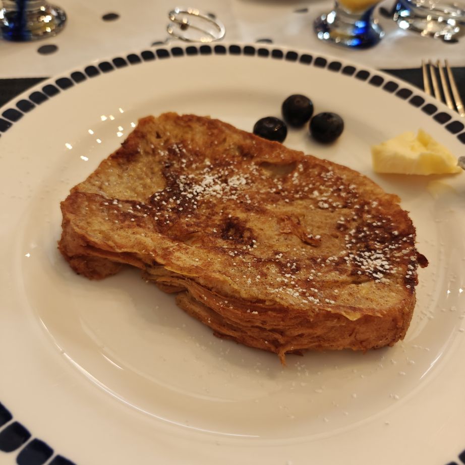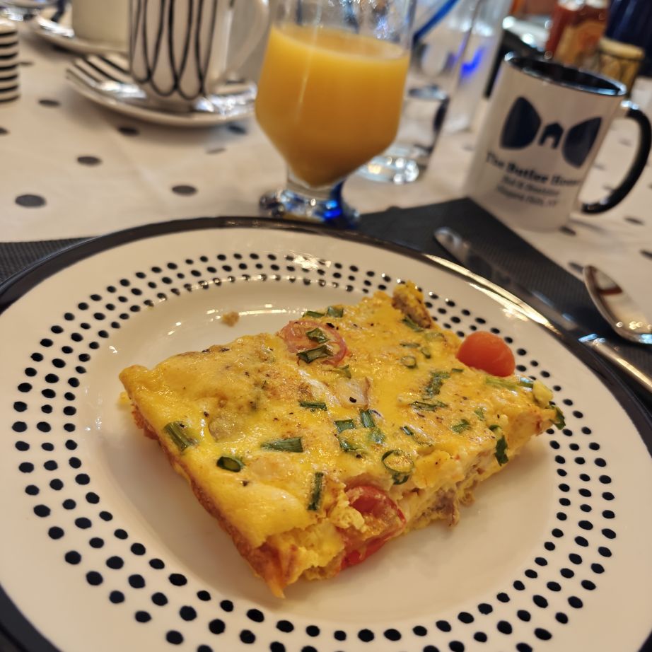 Das Frühstück heute ist besonders: alle acht Gäste des Hauses sitzen um Punkt halb acht rund um einen einzigen Tisch und bekommen zwei Frühstücksgänge serviert. Wir essen Omelette mit Käsesauce und Würsten, danach einen French Toast. Dazu gibt es erstaunlich guten Kaffee und frischen Orangensaft. Wir sind gestärkt für den Tag!