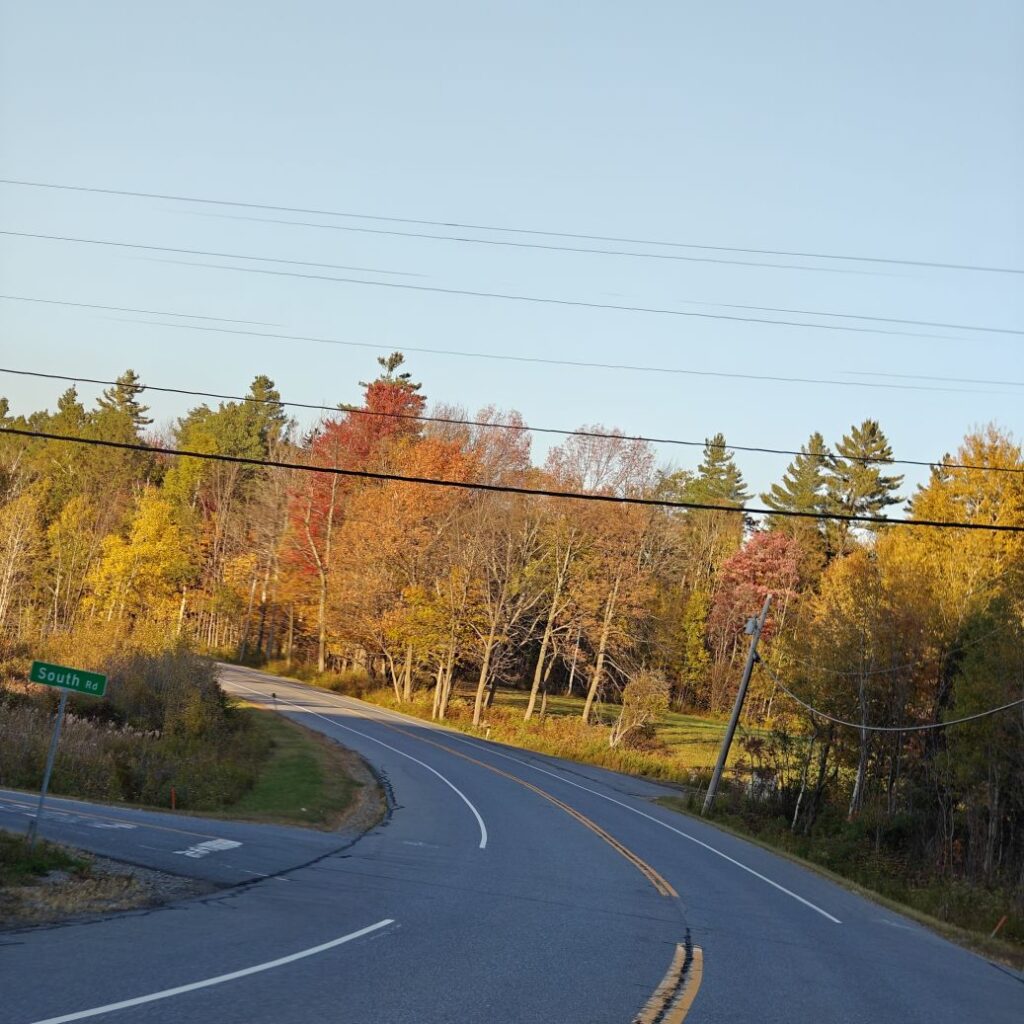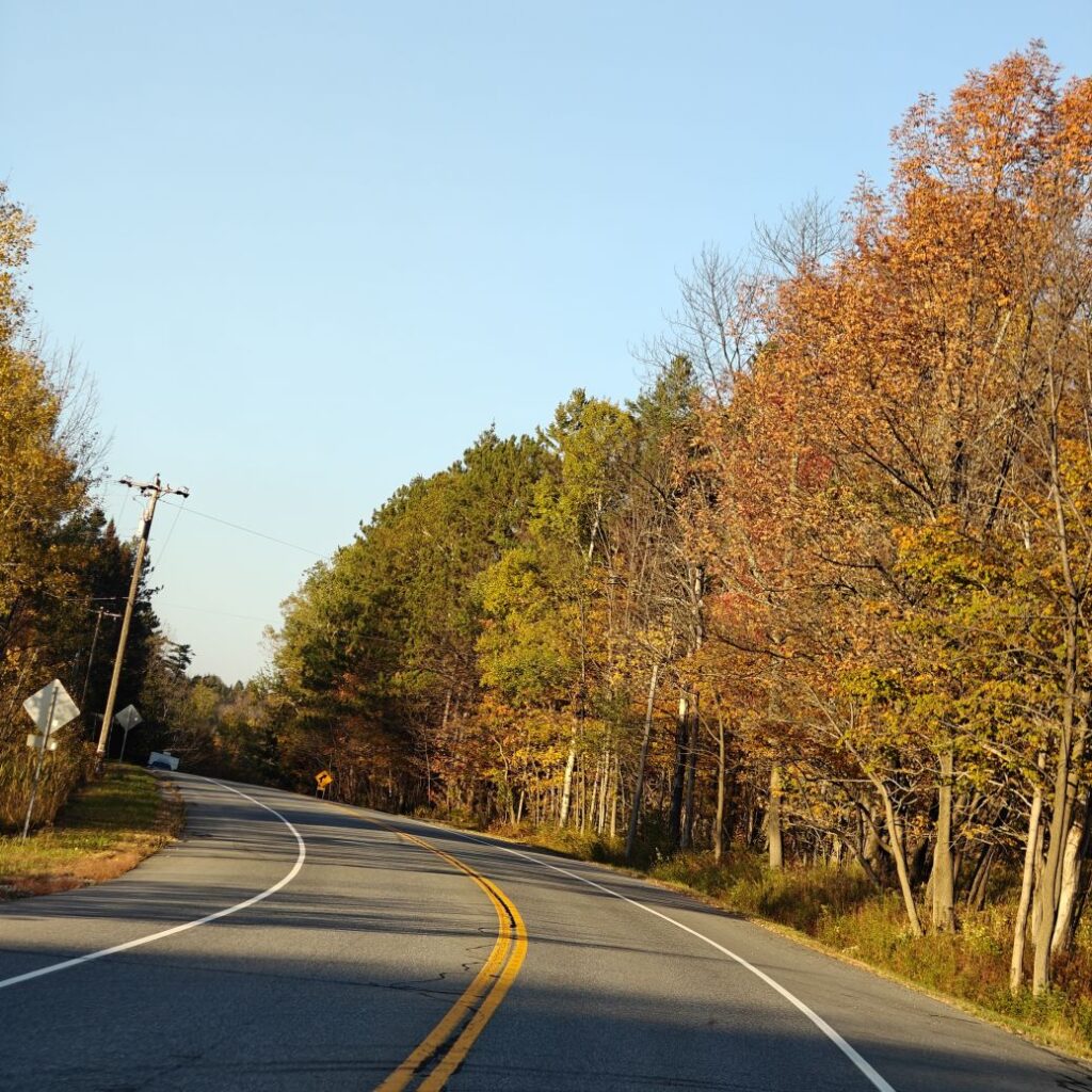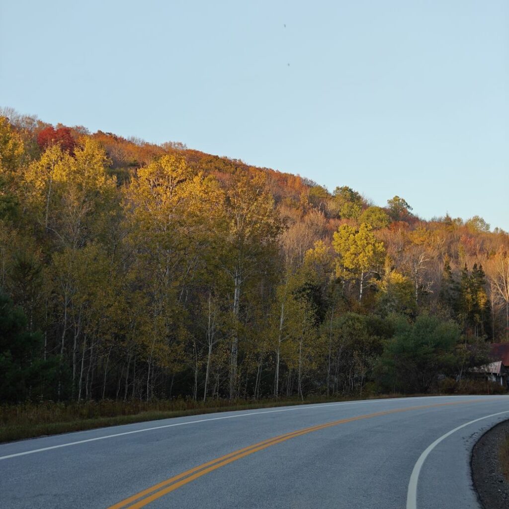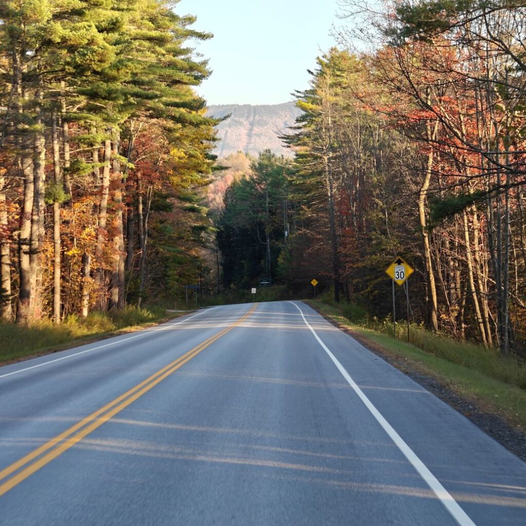 Dann checken wir aus, heute steht den ganzen Tag Autofahren am Programm. Wir fahren Richtung Osten Richtung Green Mountain National Forest. An uns ziehen die ersten bunten Bäume vorbei, Farmen und mit Halloweendeko verzierte Vorgärten und Veranden und viele viele USA-Flaggen.