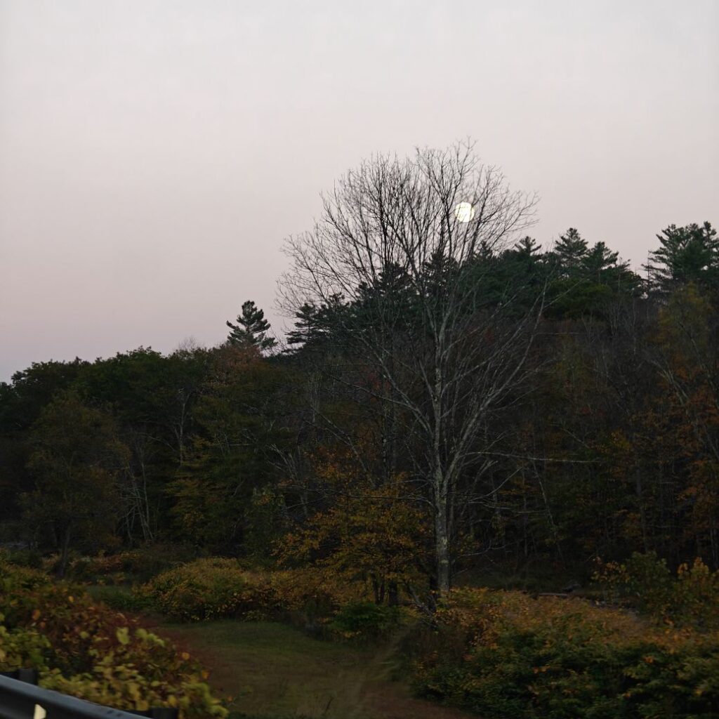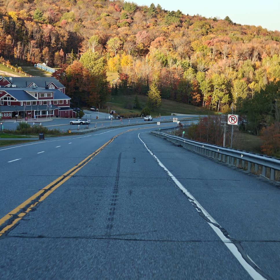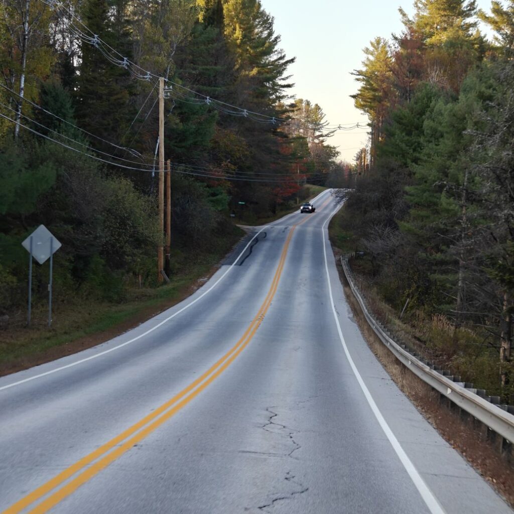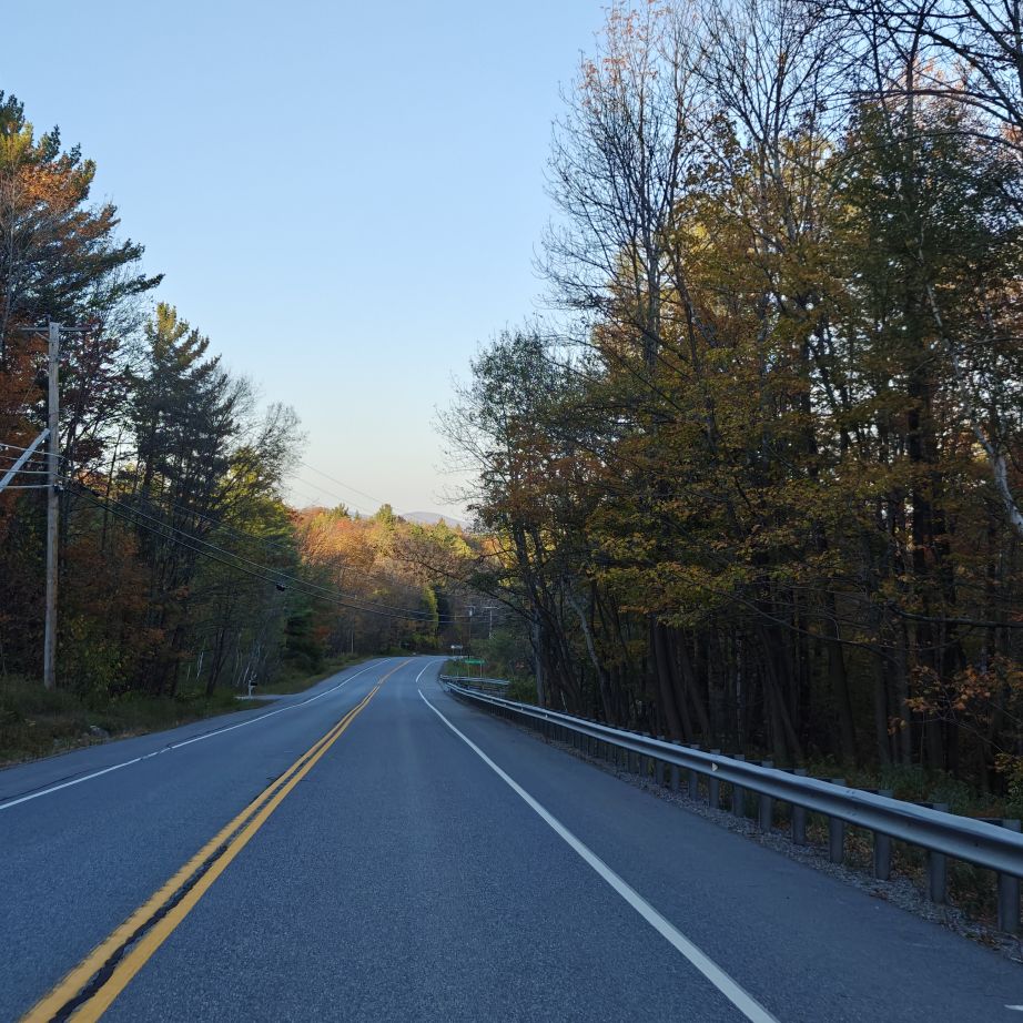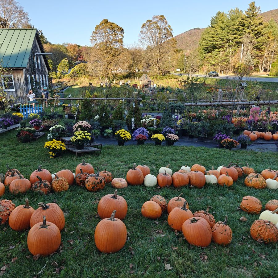Dann checken wir aus, heute steht den ganzen Tag Autofahren am Programm. Wir fahren Richtung Osten Richtung Green Mountain National Forest. An uns ziehen die ersten bunten Bäume vorbei, Farmen und mit Halloweendeko verzierte Vorgärten und Veranden und viele viele USA-Flaggen.