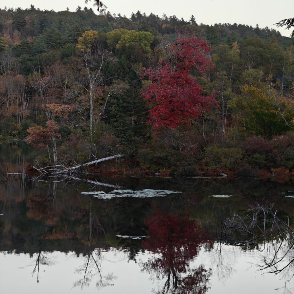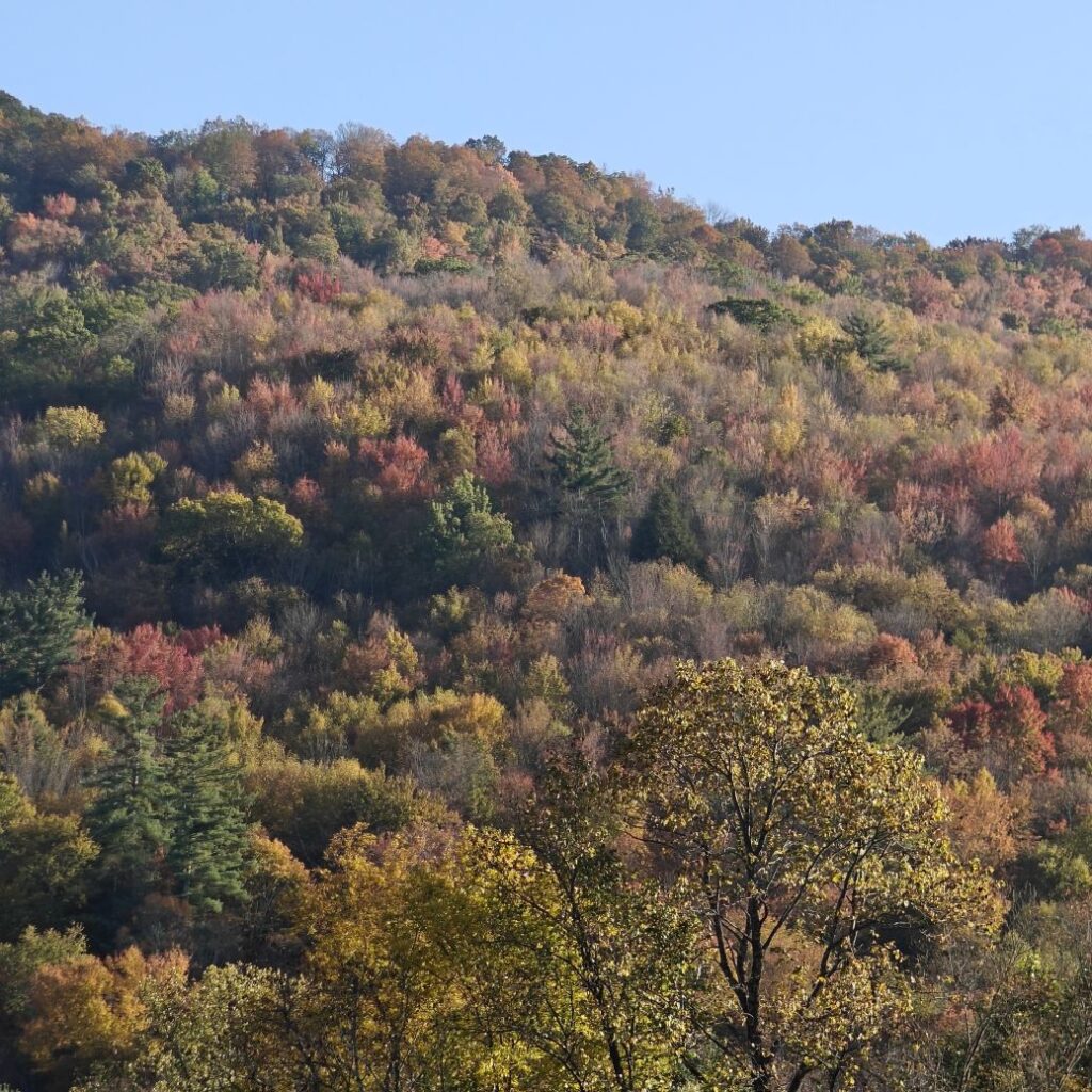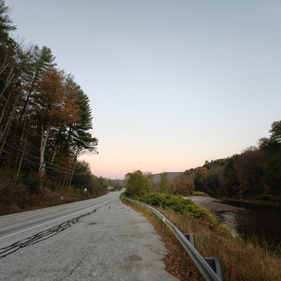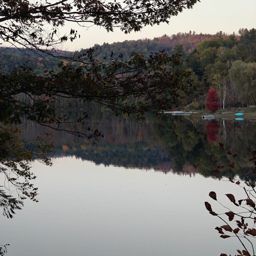 Dann checken wir aus, heute steht den ganzen Tag Autofahren am Programm. Wir fahren Richtung Osten Richtung Green Mountain National Forest. An uns ziehen die ersten bunten Bäume vorbei, Farmen und mit Halloweendeko verzierte Vorgärten und Veranden und viele viele USA-Flaggen.