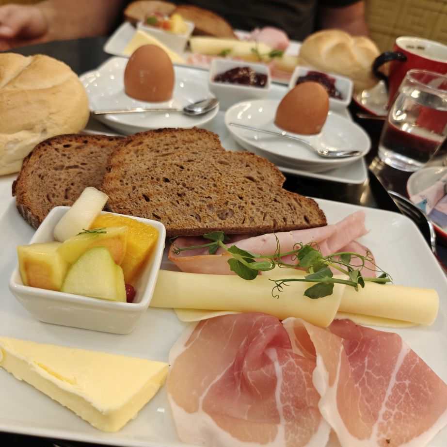 Mit einer halben Stunde Verspätung kommen wir in Wien an. Geschlafen haben wir fast nichts. Bis unser Zug fährt, haben wir noch ein wenig Zeit und essen ein Wiener Frühstück bei Wolfgang Puck Kitchen + Bar.