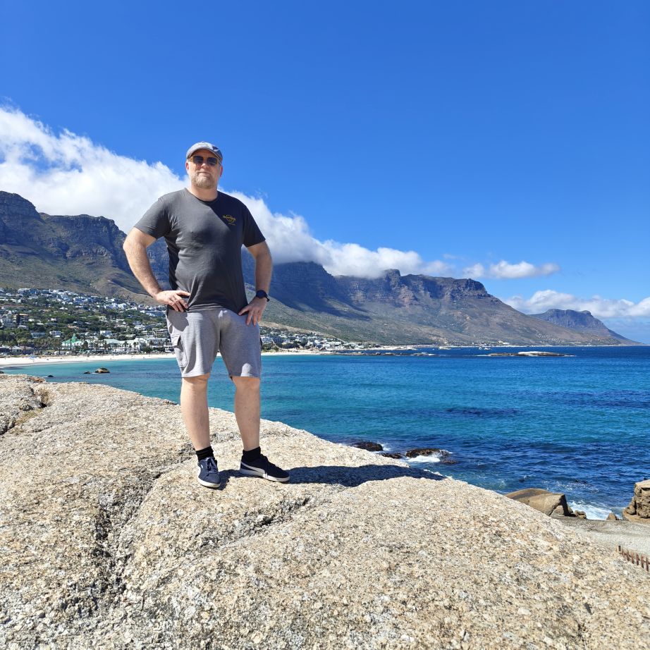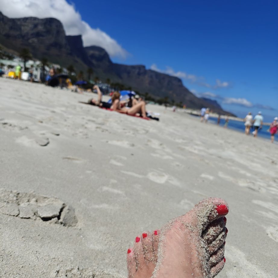 Wir suchen uns einen Platz am Strand und genießen die Sonne und das Rauschen der Wellen. Wir sind hungrig und suchen uns ein Strandcafe – auf dem Weg kaufen wir T-Shirts im Hard Rock Cafe Cape Town.