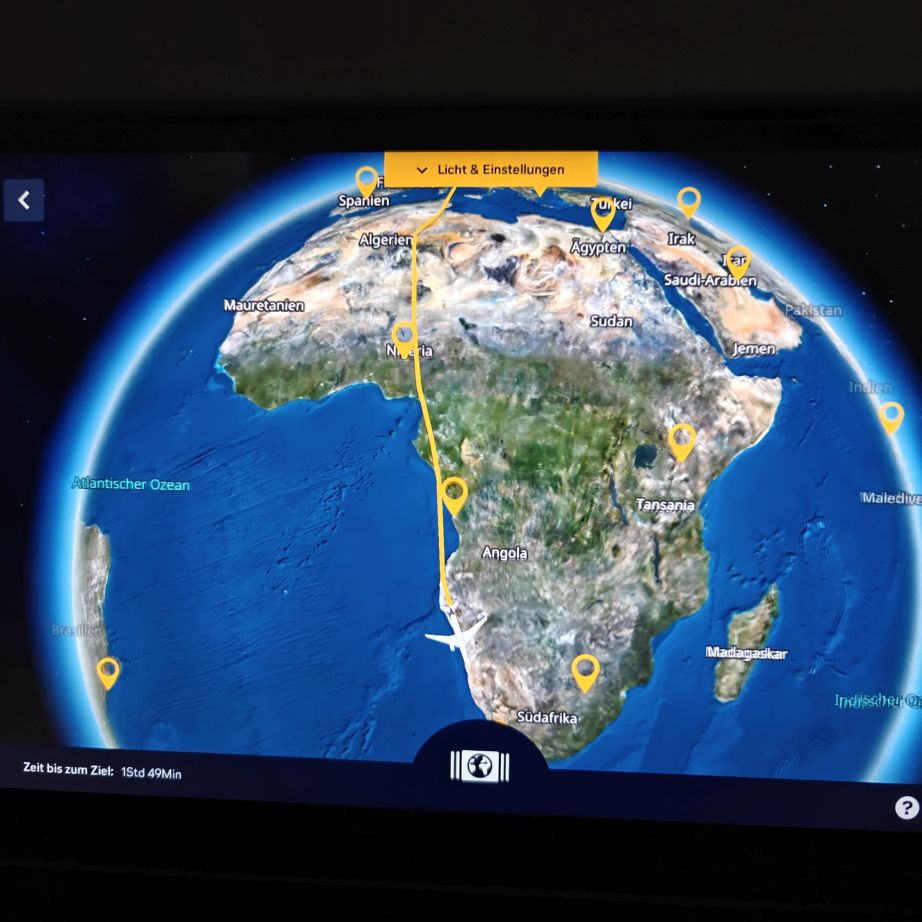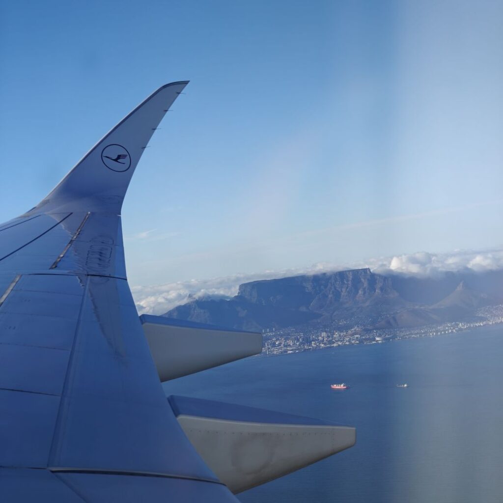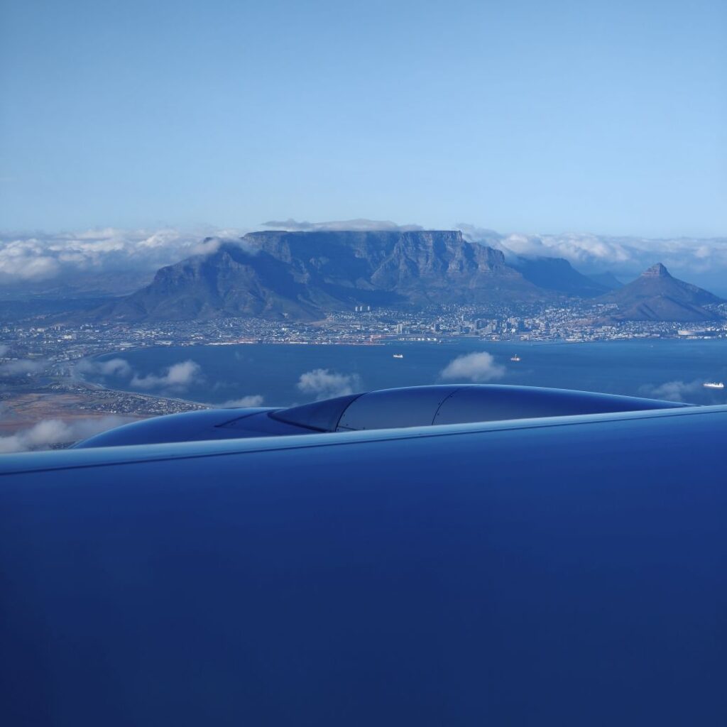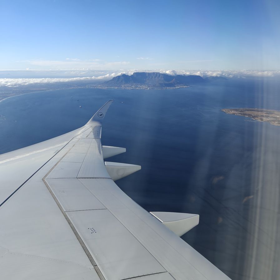 Um 6:00 Uhr werden wir geweckt und bekommen ein kleines Frühstück. Leicht verspätet landen wir um 7:50 Uhr Ortszeit in Kapstadt. Wir haben gerade einmal eine Stunde Zeitverschiebung, so gibt es keinen Jet lag, nur leichte Müdigkeit aufgrund Schlafmangels.