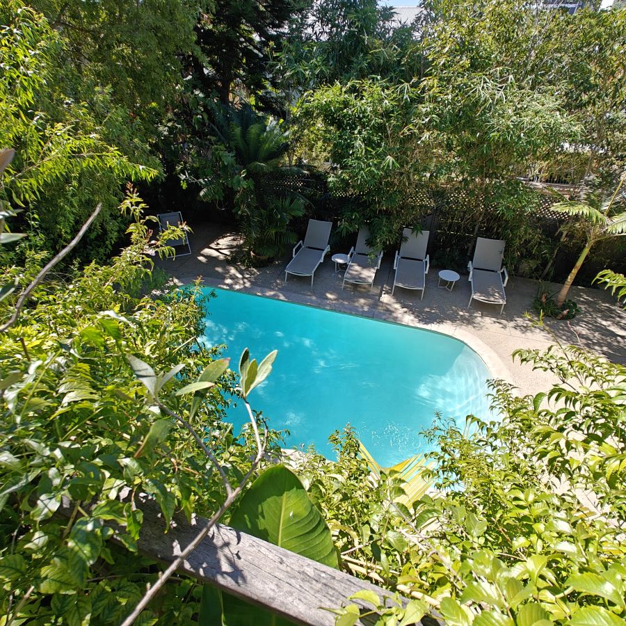 Wir bestellen ein Uber in die Unterkunft und checken ein. Wir haben ein Superior King Zimmer mit pflanzenüberwuchertem Balkon und kleiner Küche, hier halten wir es aus. Wir kühlen uns im kleinen Pool ab und machen uns dann auf zu einem Spaziergang in den Green Point Park.
