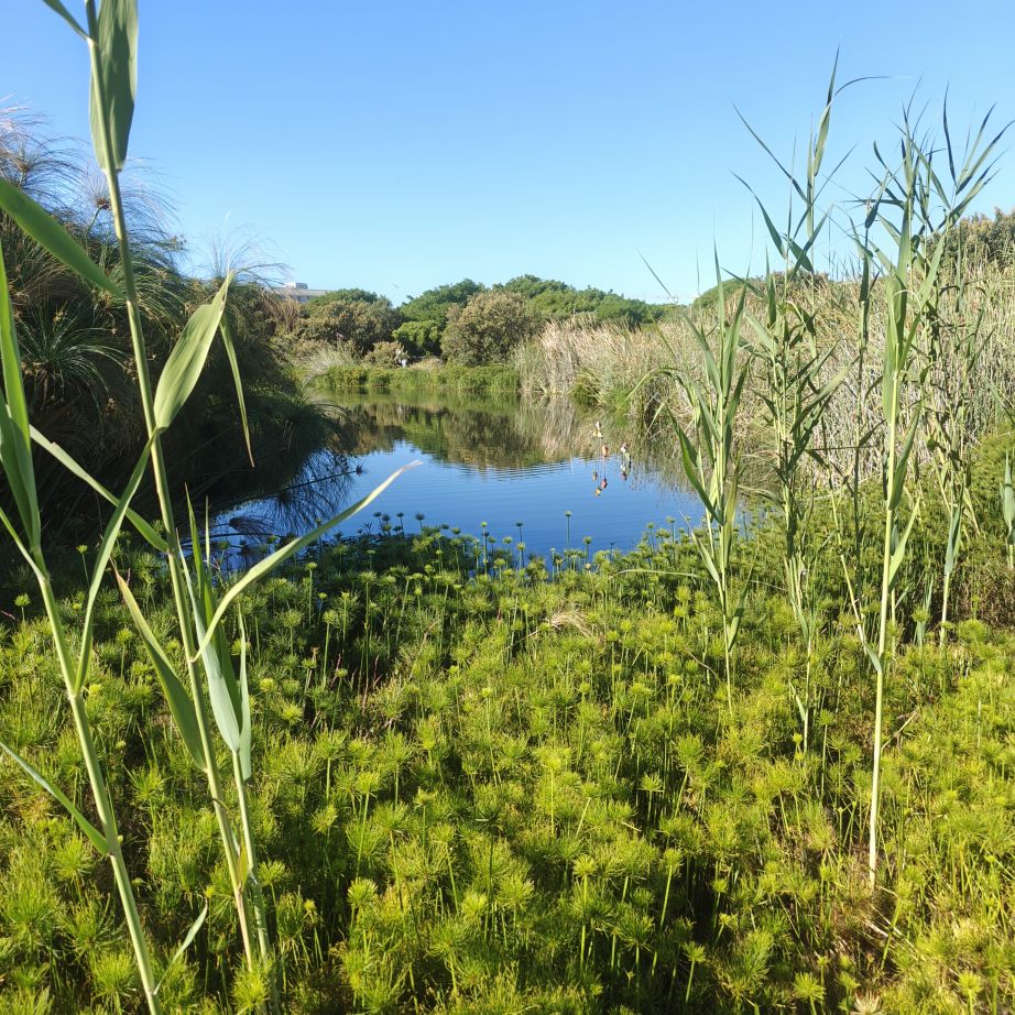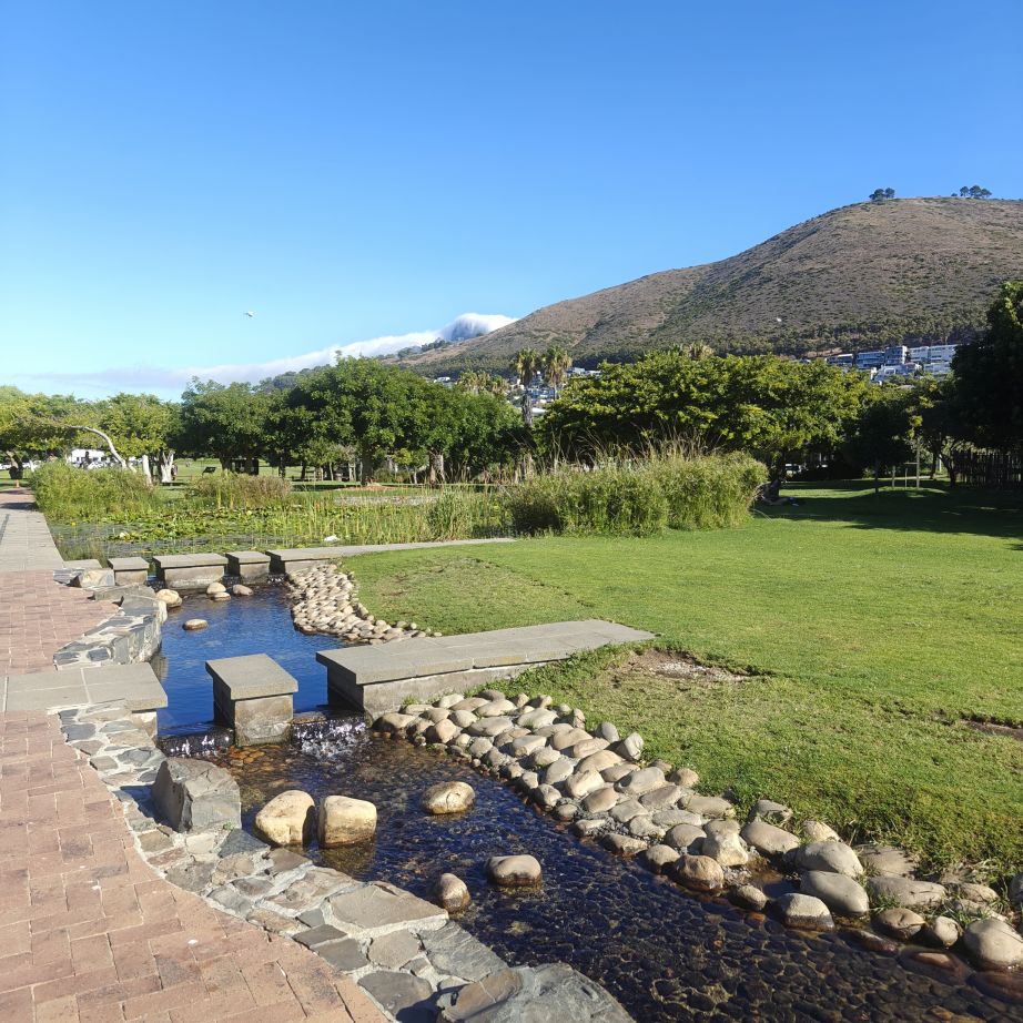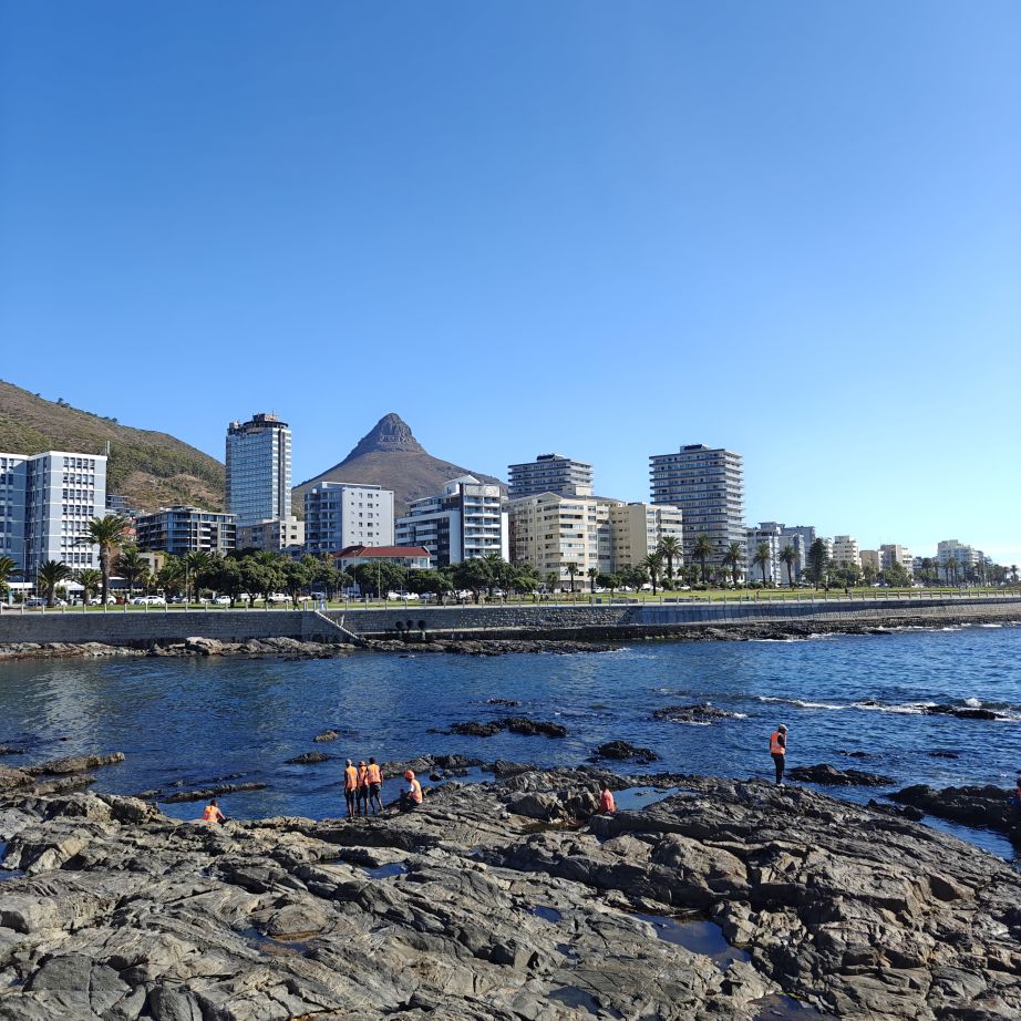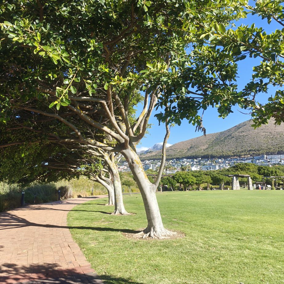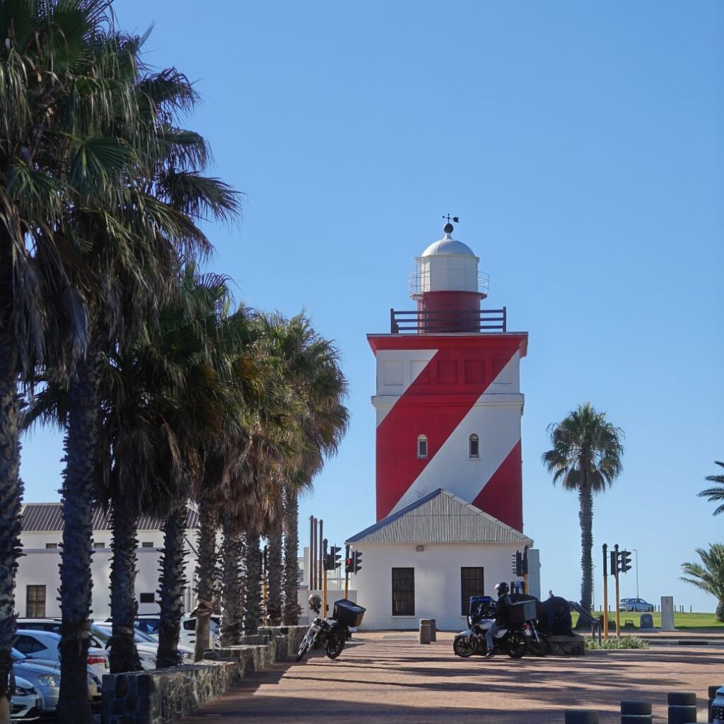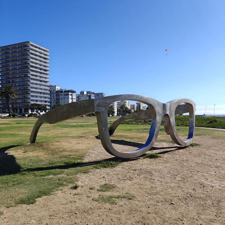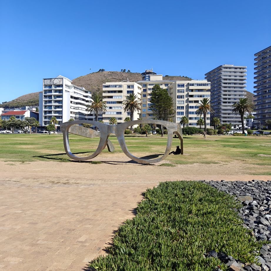 An der SeaPoint Promenade spazieren wir weiter zu den „Mandela Glasses“, einer Skulptur, die der Brille des wohl berühmtesten Südafrikaners nachempfunden ist. Freiheitskämpfer gegen die Apartheid, 27 Jahre Gefängnis, 18 davon auf Robben Island, zuletzt erster schwarzer Präsident Südafrikas und Friedensnobelpreisträger. Sein Vermächtnis ist der Kampf für eine Welt freier gleicher Menschen, ohne Rassismus, demokratisch regiert und sozial organisiert. Südafrika wurde in seiner Amtszeit eine durch Verfassung abgesicherte Demokratie. Dann führt uns die Uferpromenade zum Green Point Lighthouse, den ältesten Leuchtturm Südafrikas. Danach betreten wir den Green Point Park, wo wir aus der Ferne das markante Cape Town Stadium sehen, das für die Fußball-WM 2010 gebaut wurde. Wir gehen durch den Park, der die biologische Vielfalt der Region mit mehr als 300 Pflanzenarten zeigt, zurück zur Unterkunft.