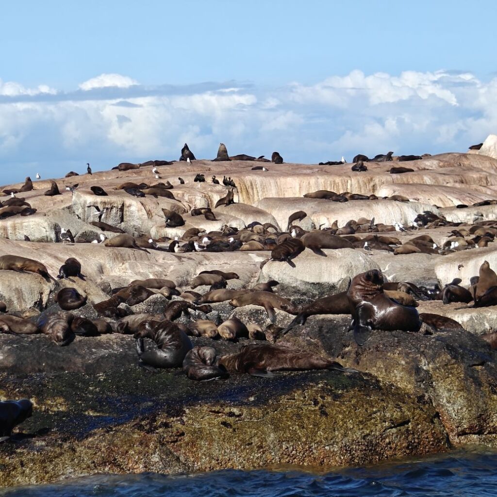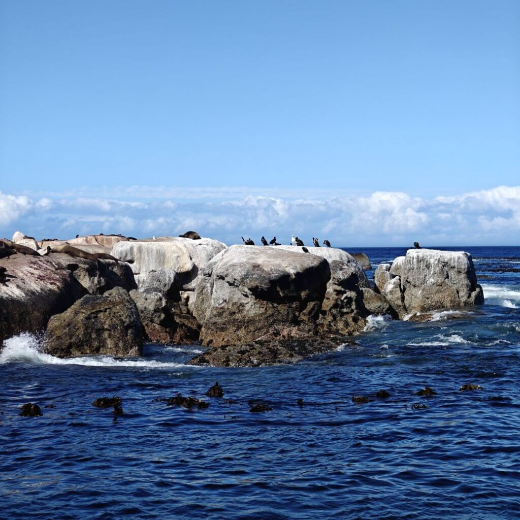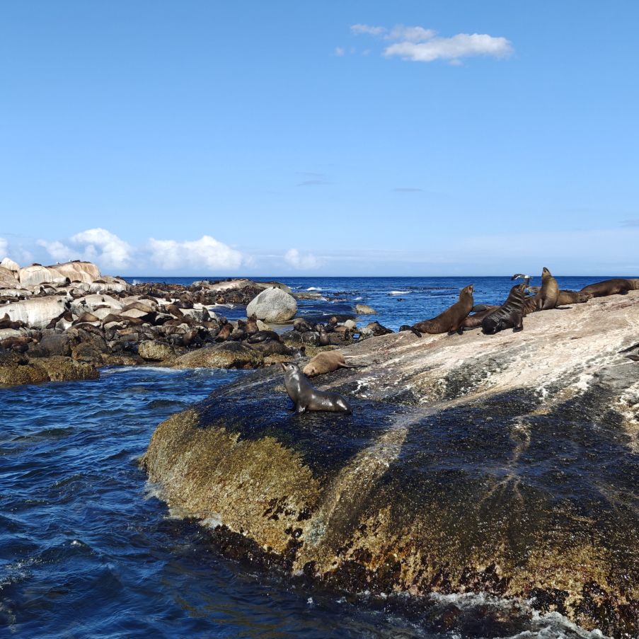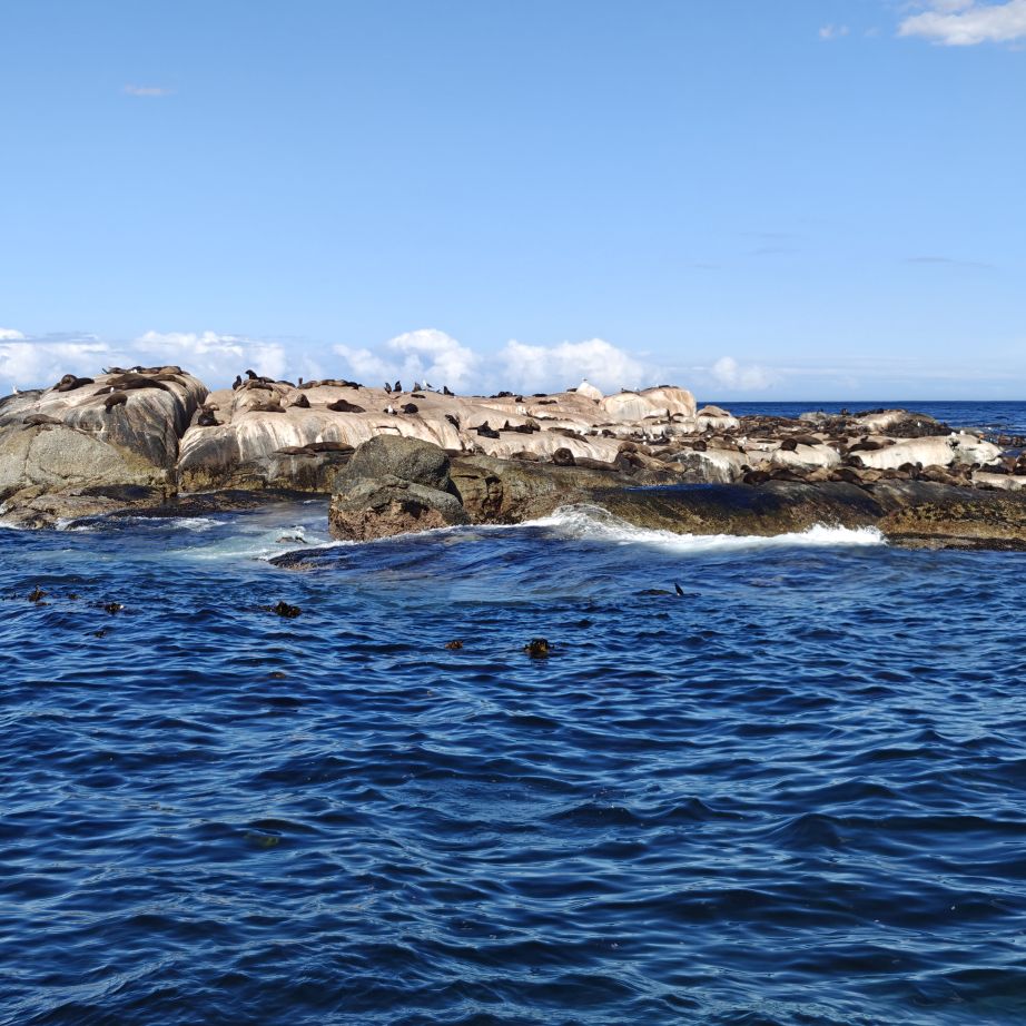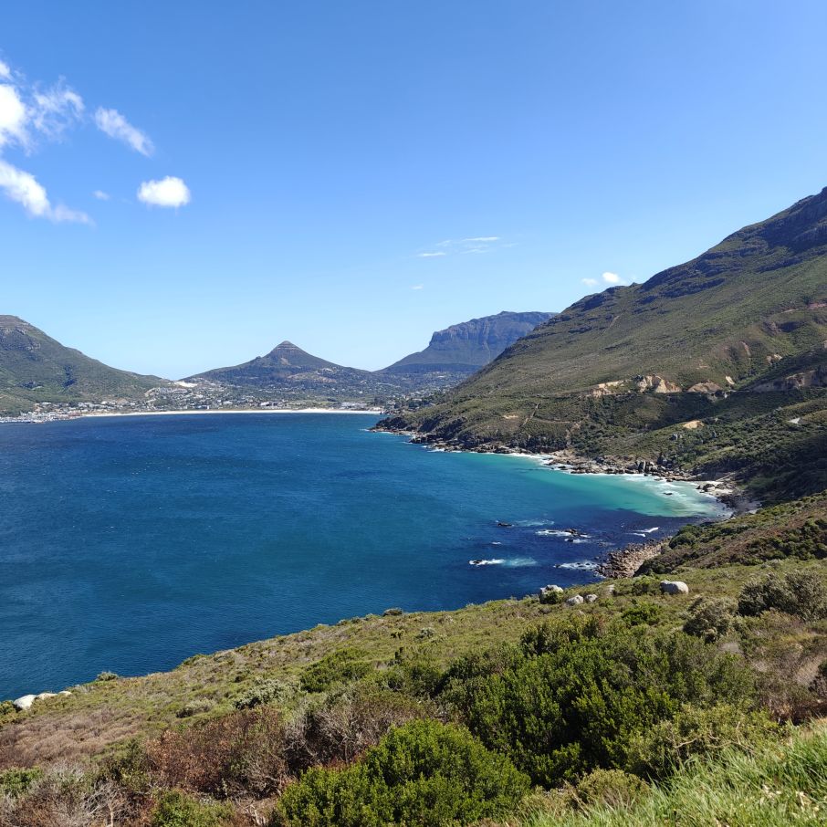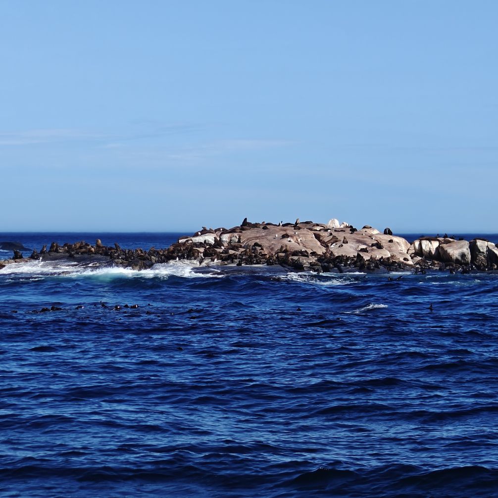 In Hout Bay angekommen, entscheiden wir uns für das Zusatzangebot einer Bootsfahrt nach Duiker Island und bestaunen die dort ansässige Kap-Pelzrobbenkolonie. Dann fahren wir den atemberaubenden, neun Kilometer langen Chapman‘s Peak Drive und haben auch die Gelegenheit, auszusteigen und Fotos zu machen. Der „Chappie“, wie er von den Einheimischen genannt wird, hat über 100 Kurven und schlängelt sich malerisch an der Westküste entlang.