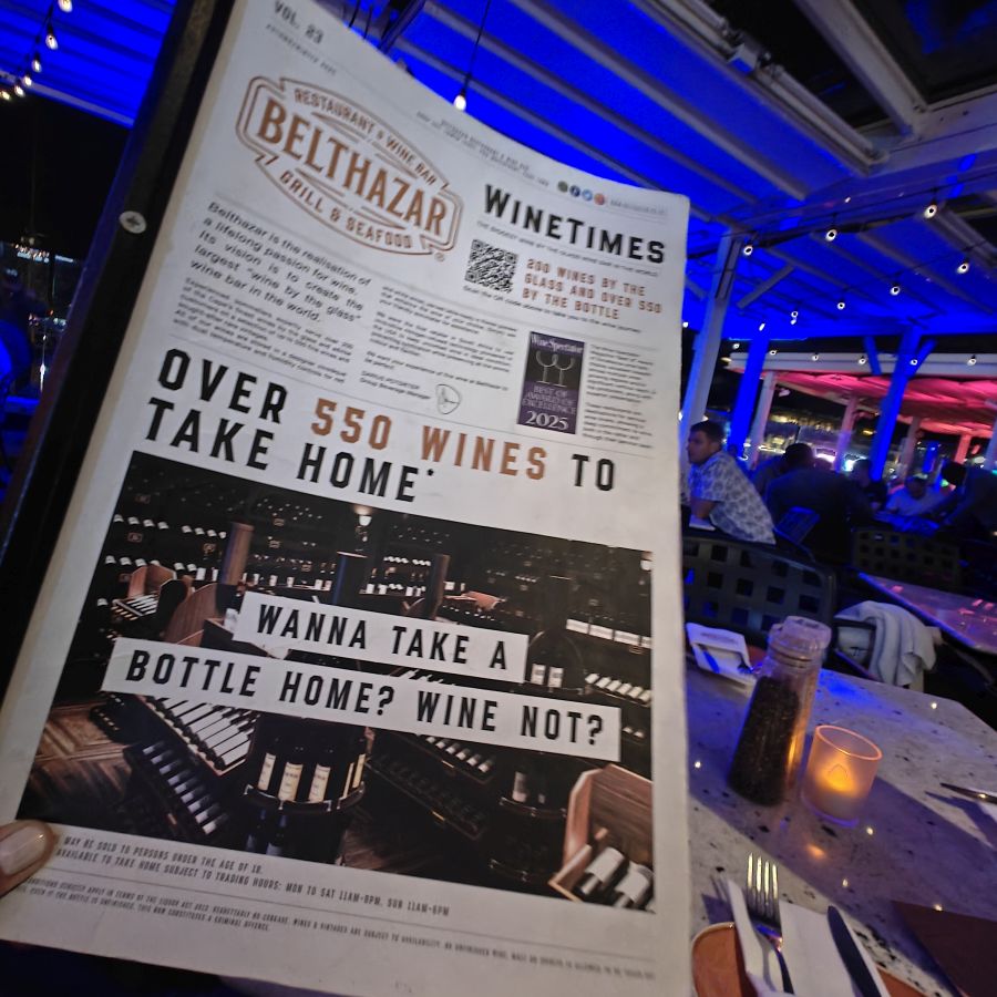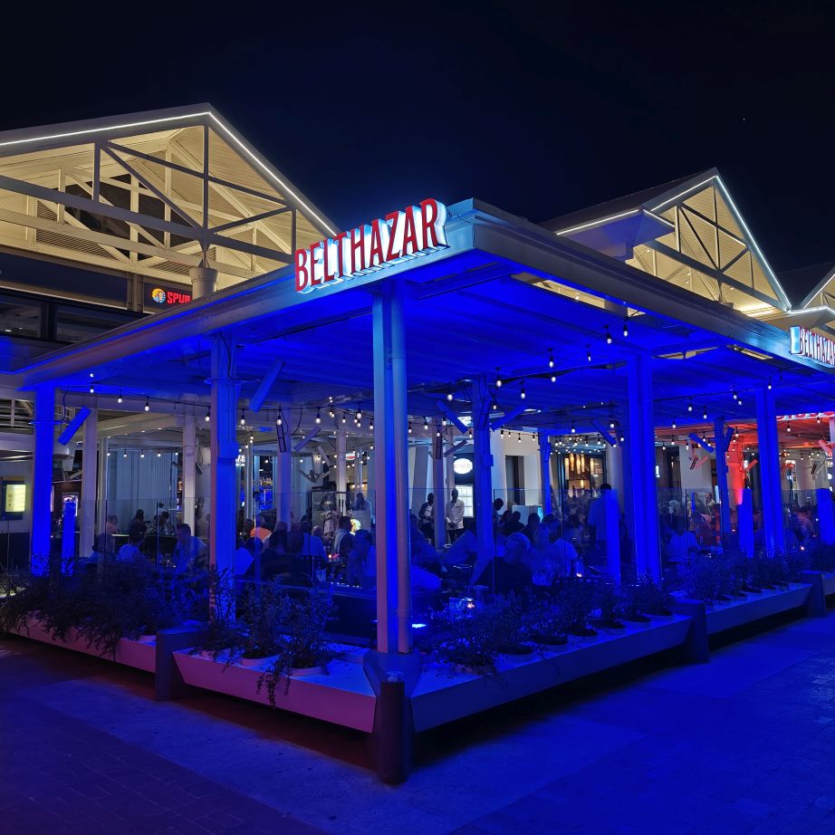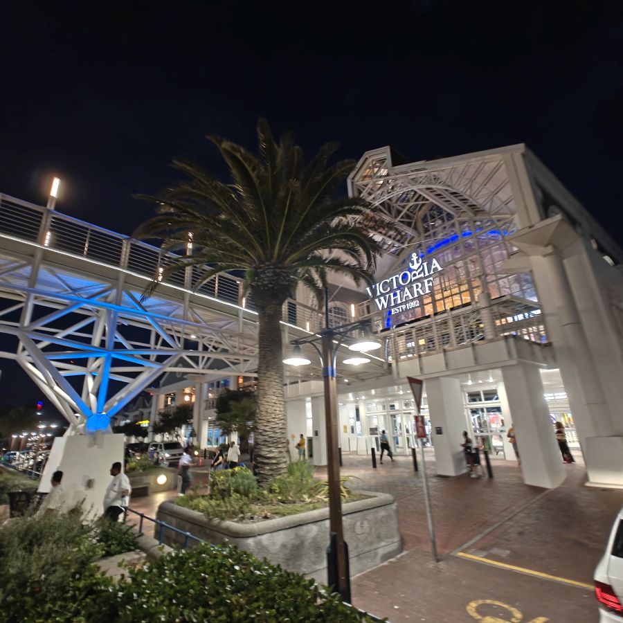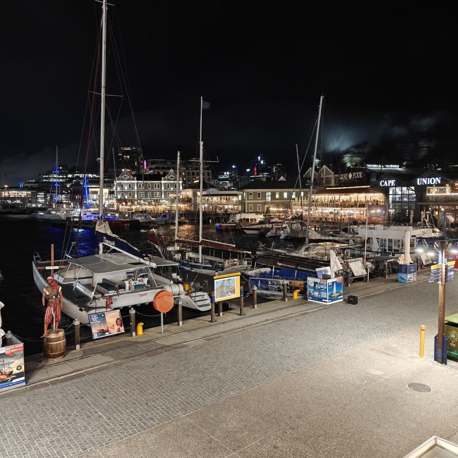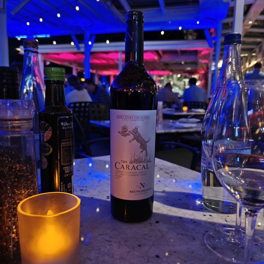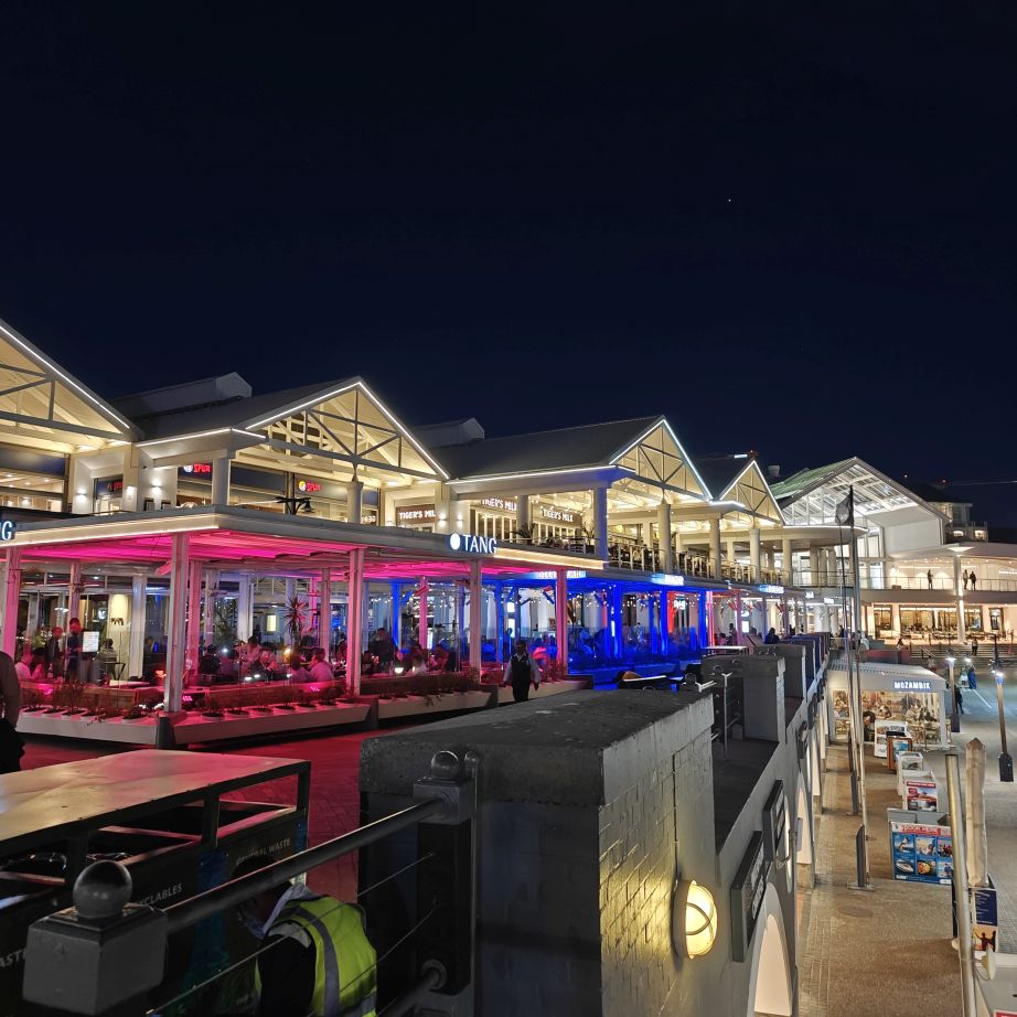 Heute haben wir einen Tisch im Belthazar Restaurant & Wine Bar reserviert. Es befindet sich an der Victoria & Alfred Waterfront, dem restaurierten Hafenviertel von Kapstadt. Wir müssen durch die Shoppingmall Victoria Wharf, obwohl es Sonntag und nach 20 Uhr ist, haben alle Geschäfte geöffnet. An der Hafenseite beginnt das Nachleben – es ist viel los, alle Gebäude rund um das Hafenbecken sind hell erleuchtet, überall wird gegessen und gefeiert. Das Belthazar ist nach eigenen Angaben die Bar mit den meisten offenen Weinen der Welt. Es sind 250 glasweise servierte Weine, das ist tatsächlich respektabel. Serviert werden sie in einem österreichischen Produkt, Riedel Gläsern. Zusätzlich ist es auch noch das beste Steakhouse in Südafrika mit einer großen Auswahl an Fleischsorten – von Strauß über Springbok bis Gnu und Krokodil. Christoph wählt ein klassisches Rib Eye, Claudia ein Straußensteak – beide sind auf den Punkt gegart und schmecken köstlich. Satt und zufrieden fahren wir gegen 23 Uhr zurück in die Unterkunft.