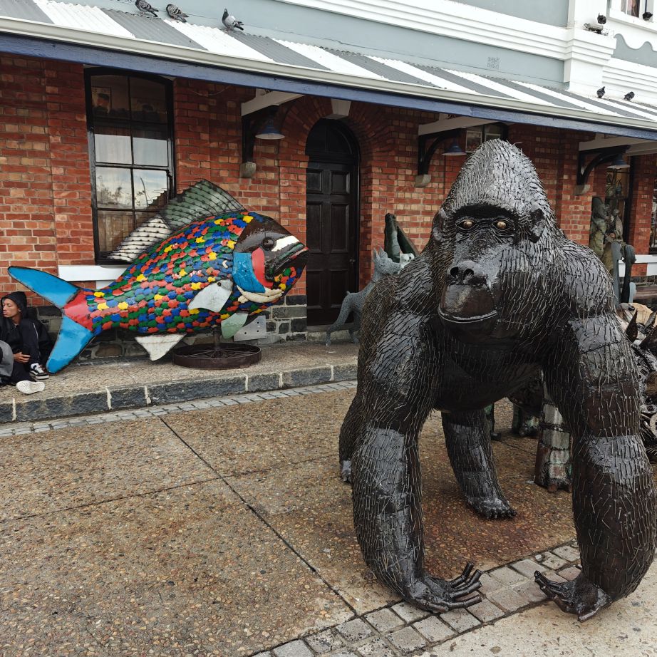 Kurz vor Tour-Start bekommen wir eine Schwimmweste umgehängt und steigen mit vier anderen und zwei Guides in ein sehr kleines Tragflügelboot. Dann düsen wir Richtung Robben Island und sehen Delfine, Robben, Pinguine, Seeschwalben, Tölpel und Kormorane in ihrer natürlichen Umgebung. Zudem haben wir einen atemberaubenden Ausblick auf Kapstadt und den Tafelberg. Das Highlight: zwei Buckelwale, die ganz in der Nähe unseres Bootes ihre Kreise ziehen – und das, obwohl keine Walsaison ist. Als wir wieder an Land gehen, bestellen wir ein Uber nach Woodstock in die Old Biscuit Mill.
