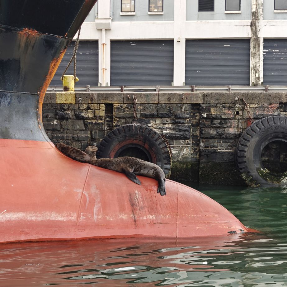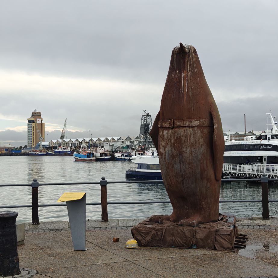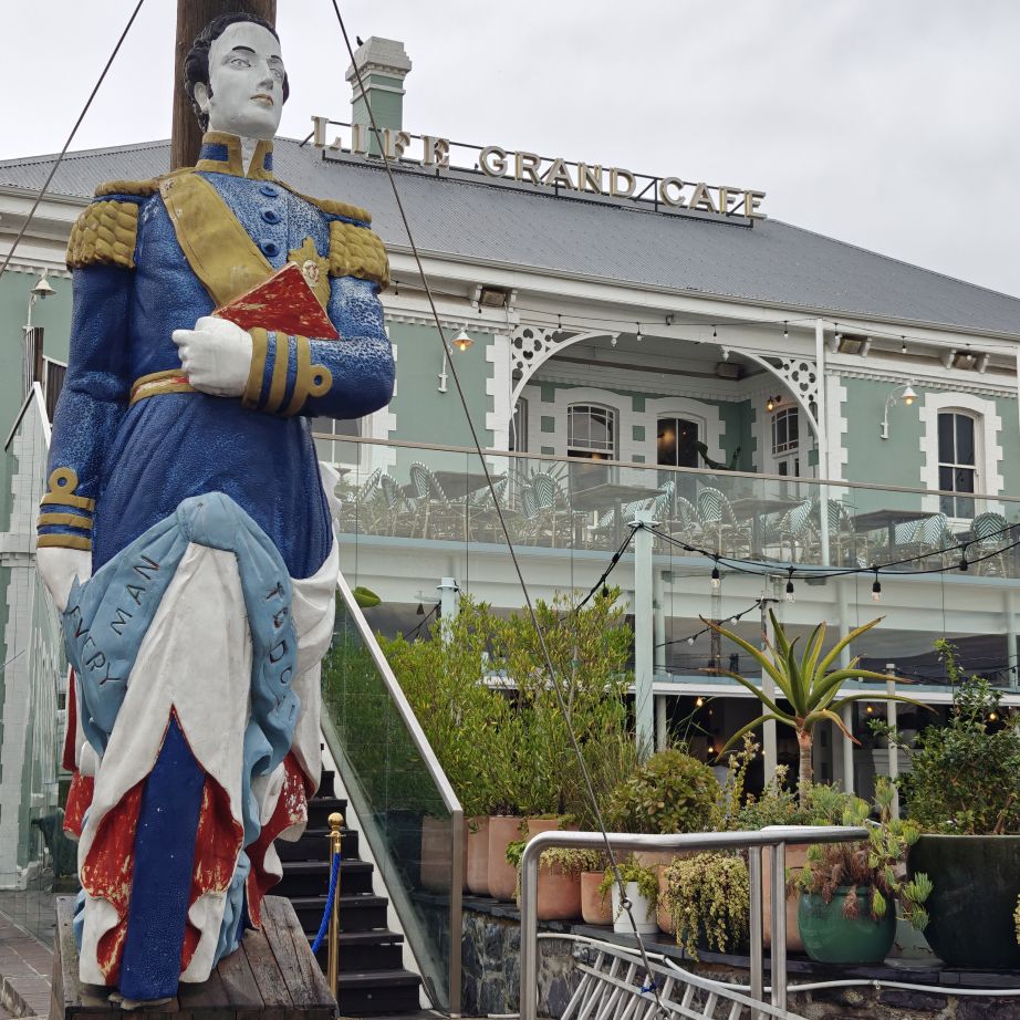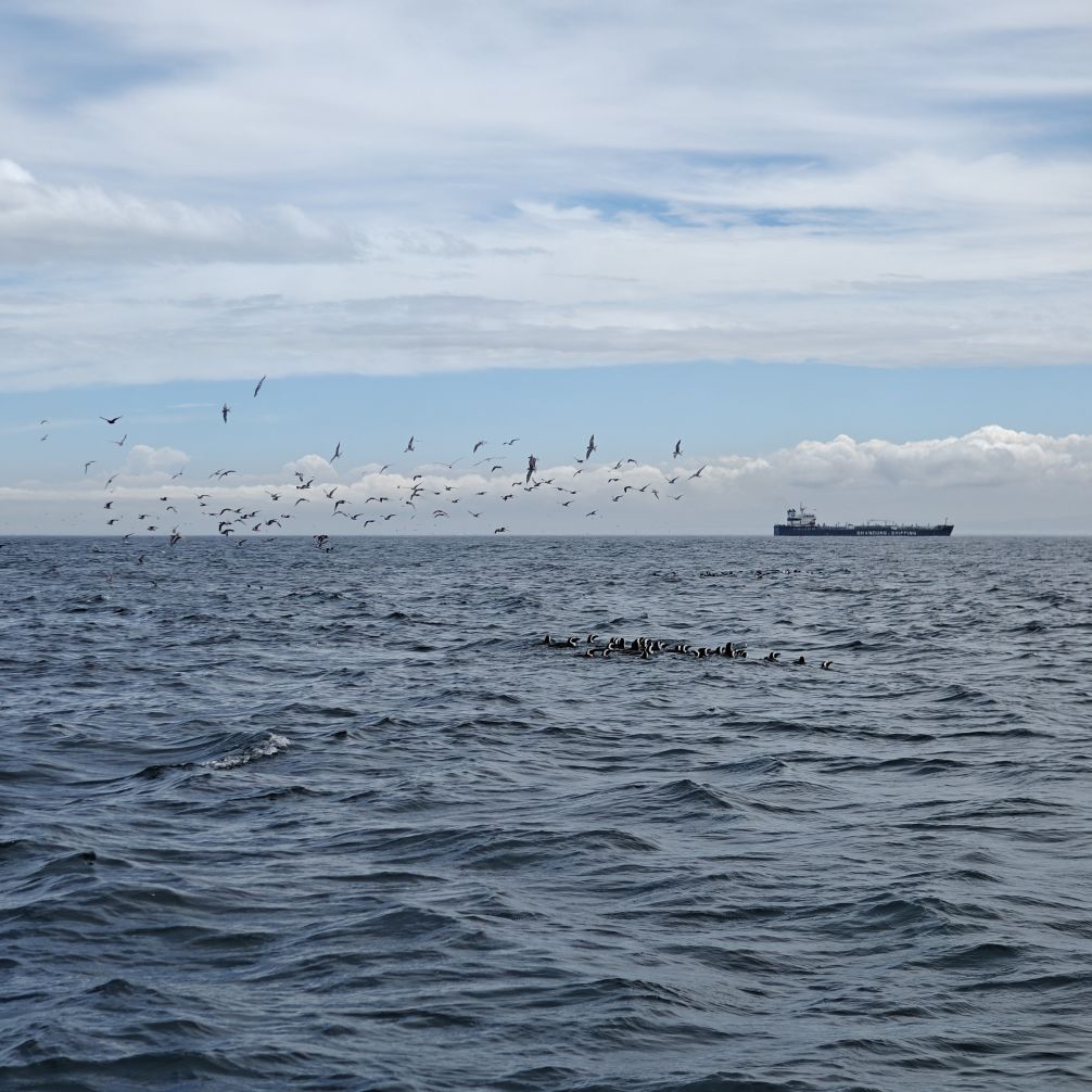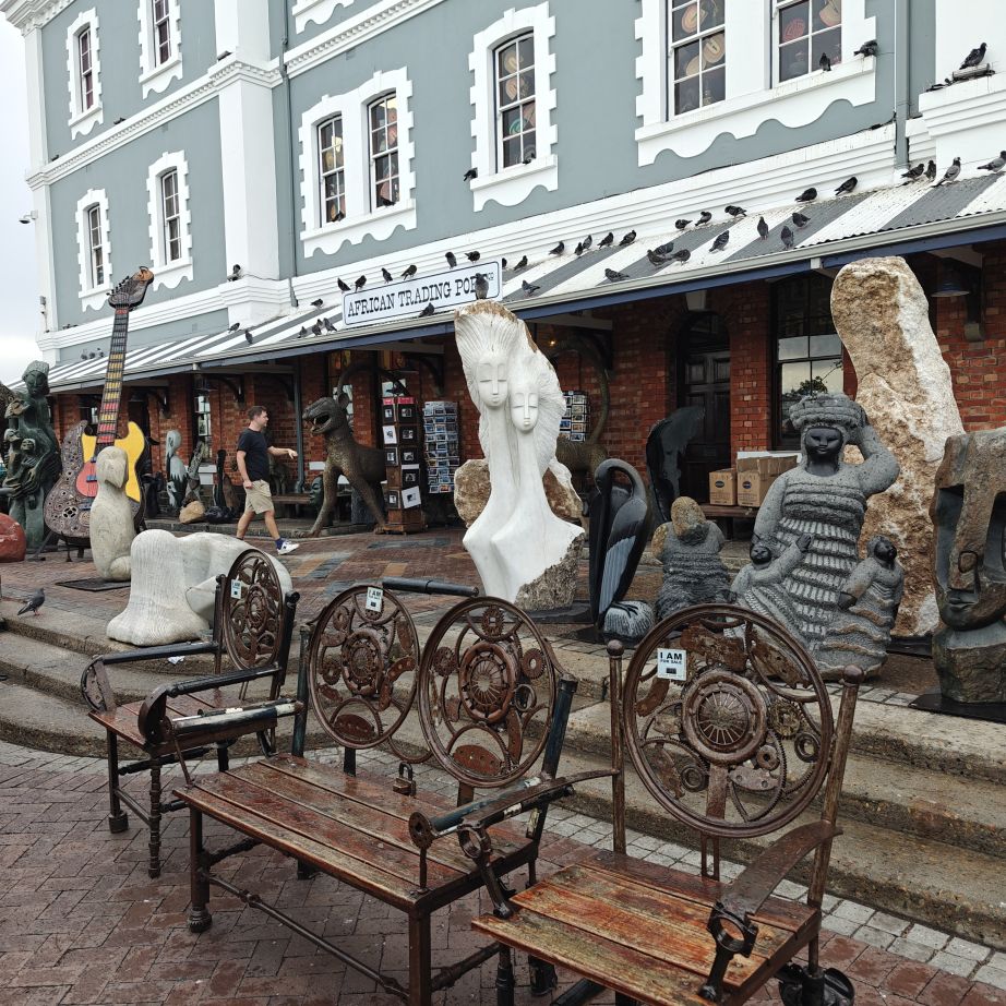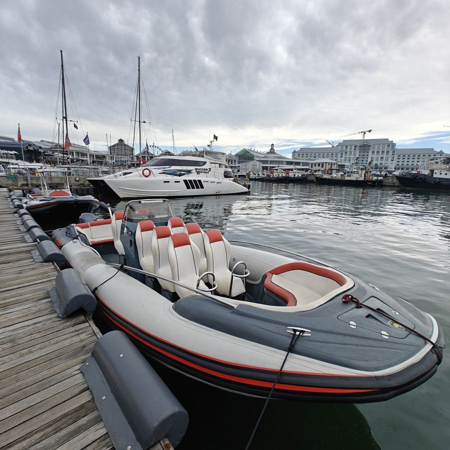 Heute frühstücken wir wieder ausgiebig – unser erster Programmpunkt ist für 11 Uhr angesetzt. Es regnet, die Frühstückstische stehen unter einer Pergola. Wir lassen uns mit einem Uber zur Victoria & Alfred Waterfront zu African Eagle Marine Eco Tours bringen.
