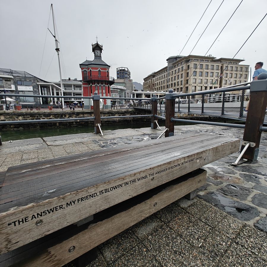 Das Dock, auf dem sich deren Kiosk befindet, liegt direkt neben der Fußgängerbrücke und dem gotischen Clock Tower. Wir haben über GetYourGuide eine 90-minütige Bootsfahrt gebucht, die uns die Unterwasser-Tierwelt näherbringen soll. Es regnet leicht und wir sind sich nicht sicher, ob die Tour stattfinden wird. Unsere Zweifel sind schnell zerstreut, wir bekommen die Tour bestätigt und haben noch etwas Zeit, die V & A Waterfront zu erkunden.