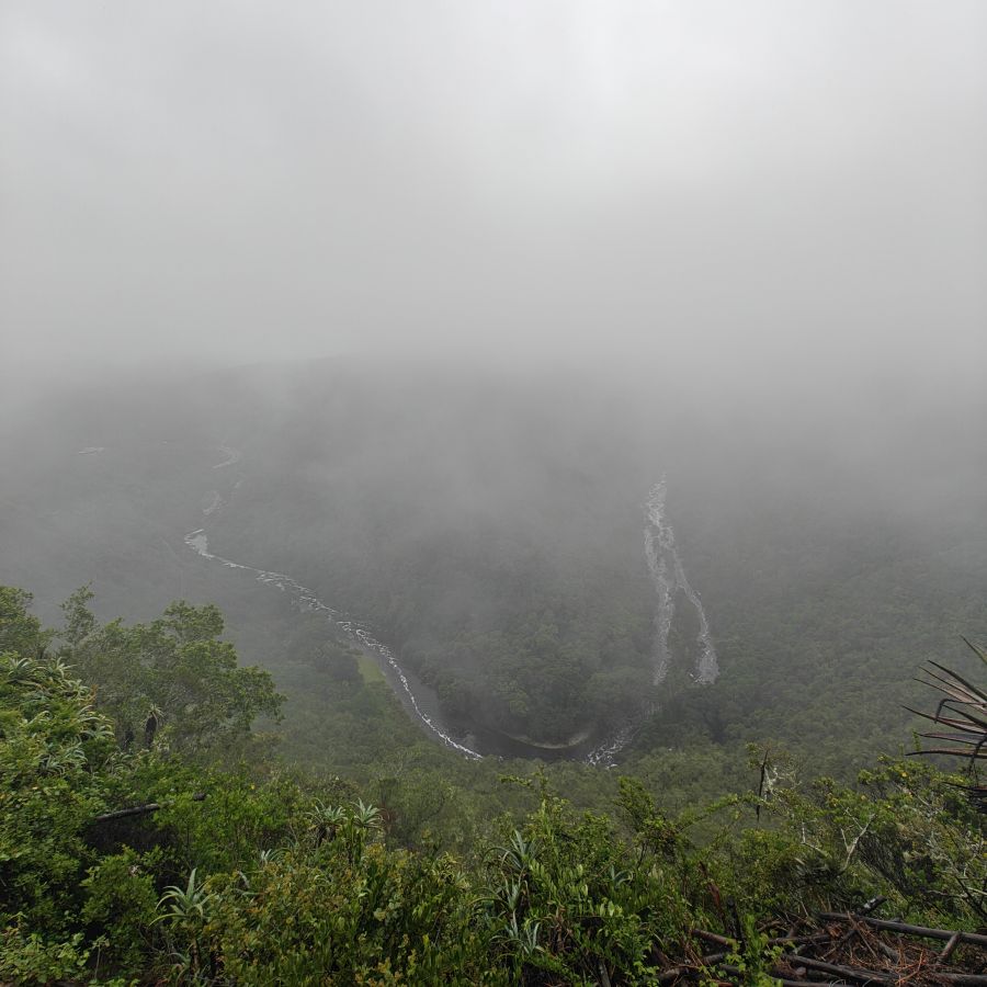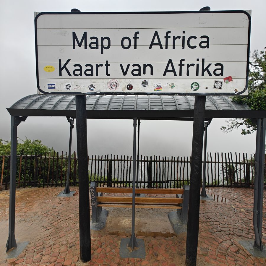 In Wilderness angelangt, fahren wir zur „Map Of Africa“, ein Aussichtspunkt und Hotspot für Paragliding gleichermaßen. Steht man am richtigen Ort, sieht der Ausblick auf das Tal des Kaaiman-River mit dem eingeschlossenen Hügel mit ein wenig Fantasie so aus wie der Umriss des afrikanischen Kontinents. Wir können den Umriss nur erahnen, aufgrund des Regens ist es dunstig.