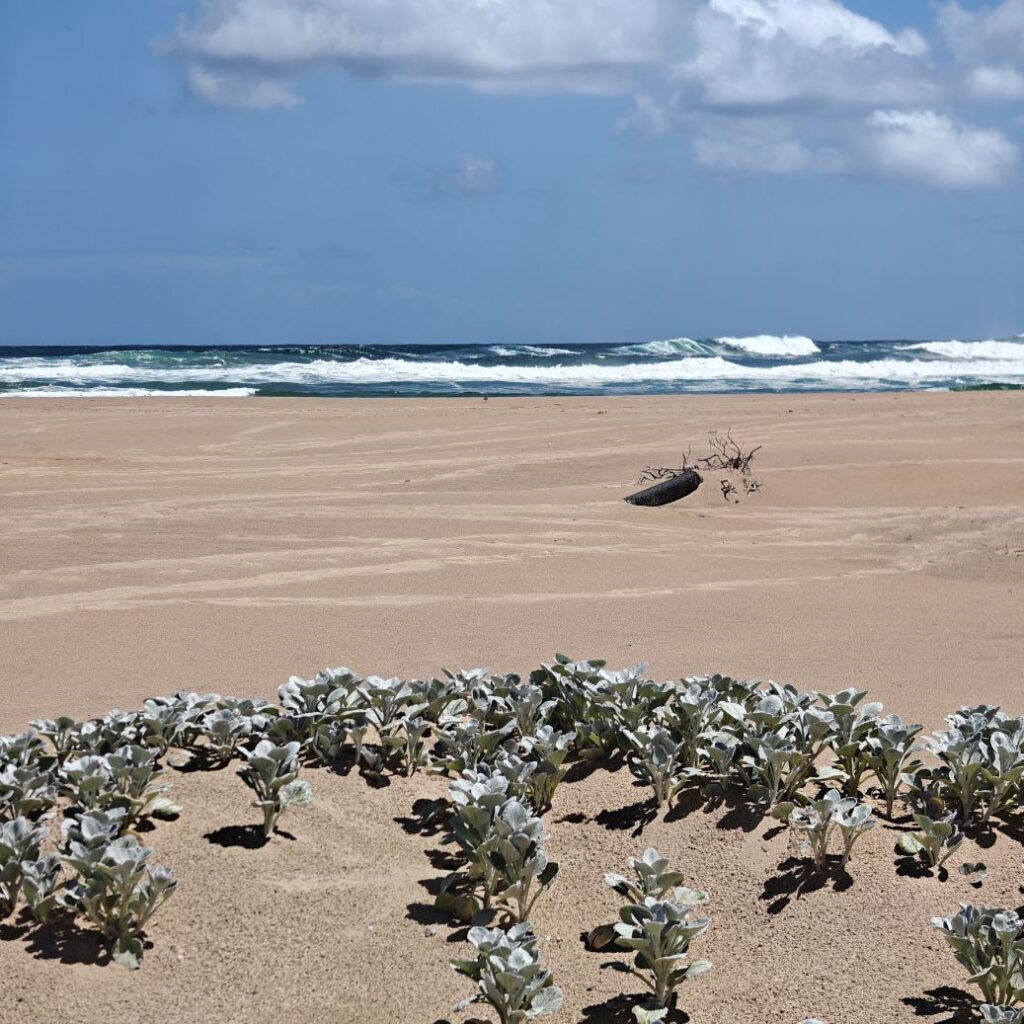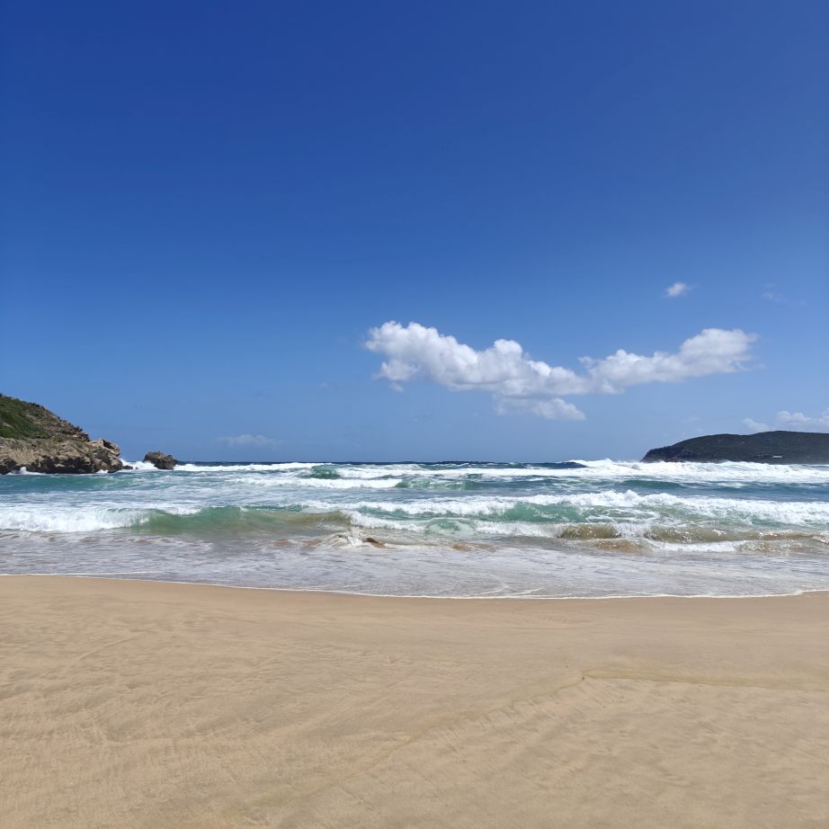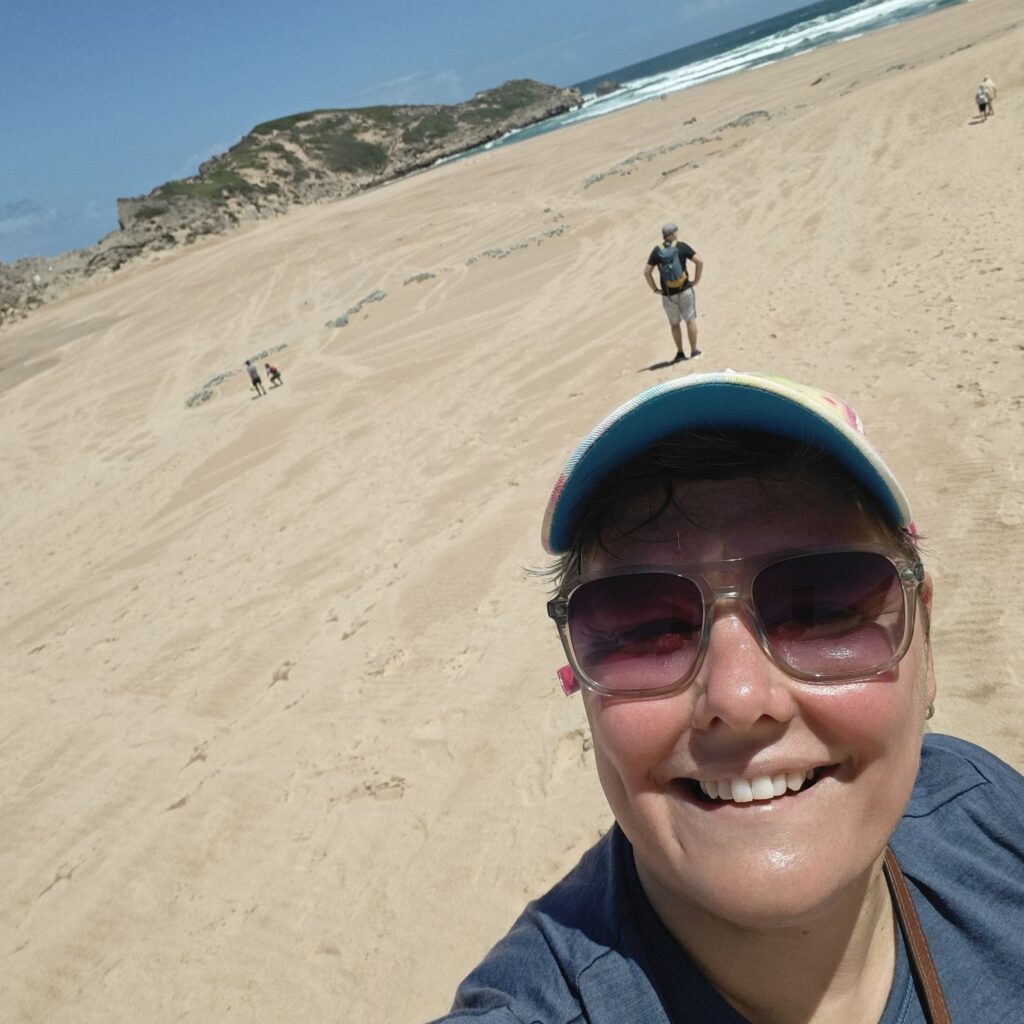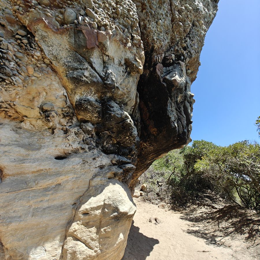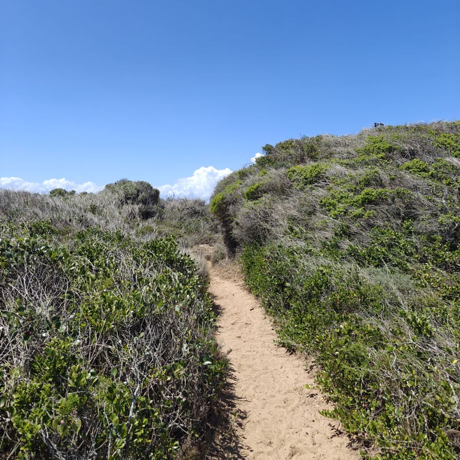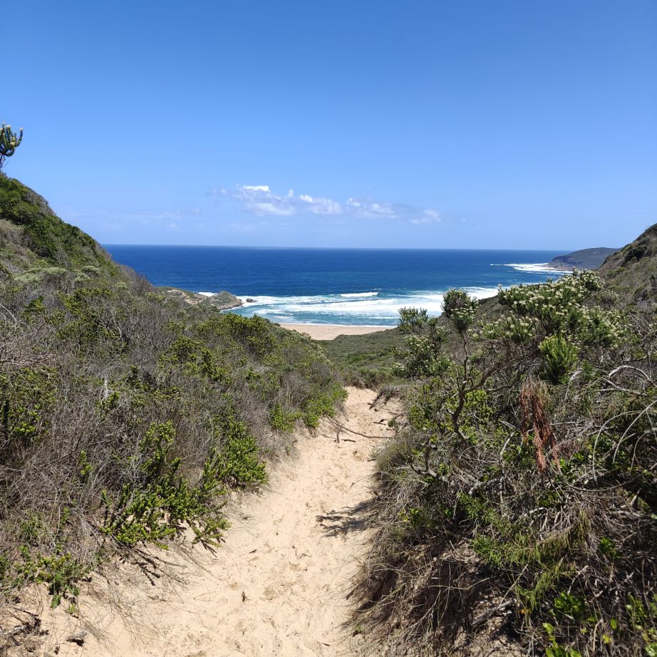 Wir haben eine 5,5 Kilometer lange Wanderung im Robberg Nature Reserve vor uns. Bereits im Vorfeld haben wir einen Tagespass organisiert, diese sind streng limitiert. Der Weg durch das Naturschutzgebiet ist atemberaubend schön. Er führt am nördlichen Kamm der Halbinsel entlang bis zur großen Robbenkolonie, die wir gestern besucht haben. Dann geht es hinunter zur Witsand Sanddüne, weiter zum wunderschönen Strand vor „Die Eiland“ und zurück zum Parkplatz. Für die Strecke haben wir fast zweieinhalb Stunden benötigt, da einige nicht ganz einfache Passagen dabei waren.