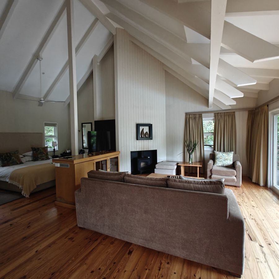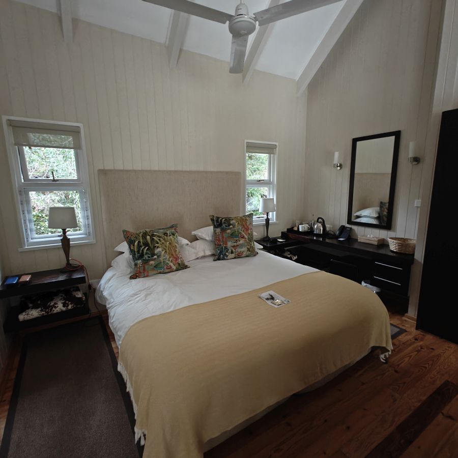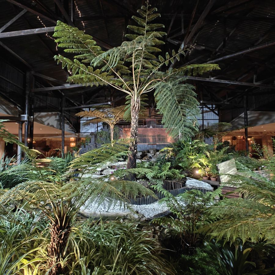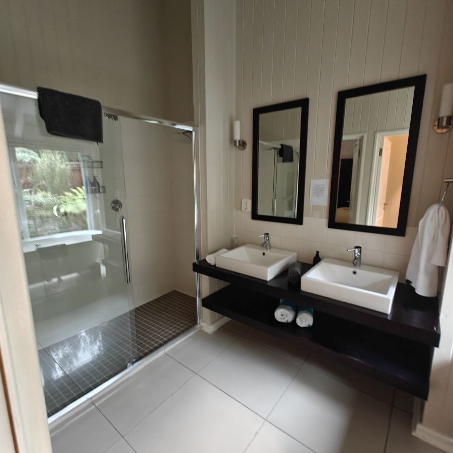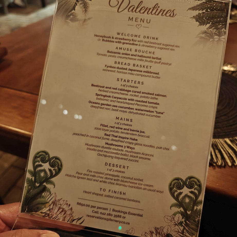 Die Fernery Lodge & Spa erreicht man nur über eine Schotterpiste. Sie liegt malerisch an der Oberkante einer Klippe über einem Wasserfall. Wir checken ein und werden erst einmal durch das riesige Gelände geführt. Hier haben wir ein richtiges Hideaway gefunden. Als wir buchten, waren noch alle Zimmer frei und so haben wir bei der riesigen Suite mit privatem Pool zugeschlagen. Den nutzen wir gleich, dann gehen wir duschen. Am heutigen Valentinstag gibt es besonderes Menü an einem besonderen Ort. Im Restaurant, in dem üblicherweise Hochzeiten und andere Events stattfinden, ist heute für die Hotelgäste gedeckt. Wir sitzen in einem riesigen Glashaus mit einer Oase aus Pflanzen und Wasser in der Mitte und einer modernen Profi-Showküche. Wir genießen das Menü, trinken dazu eine Flasche Wein und freuen uns, dass wir diese Unterkunft ausgerechnet am Valentinstag gebucht haben.