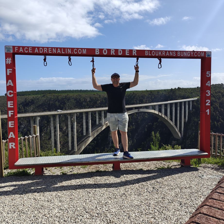 Die Bloukrans Bridge ist mit 216 Metern die höchste Brücke Afrikas. Die Bogenbrücke hat eine freie Spannweite von 272 Metern. Hier wird Bungee Jumping angeboten. Wir sehen ein paar wagemütigen Kids zu, die sich in die Tiefe stürzen und fahren dann weiter.