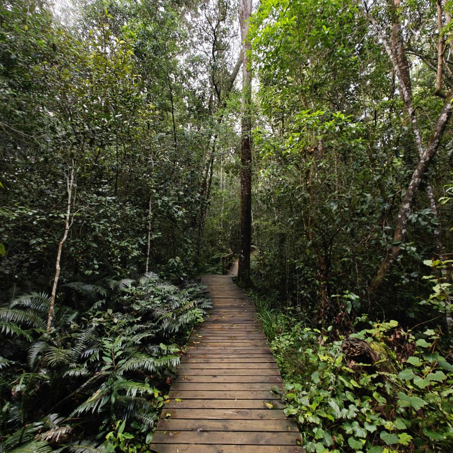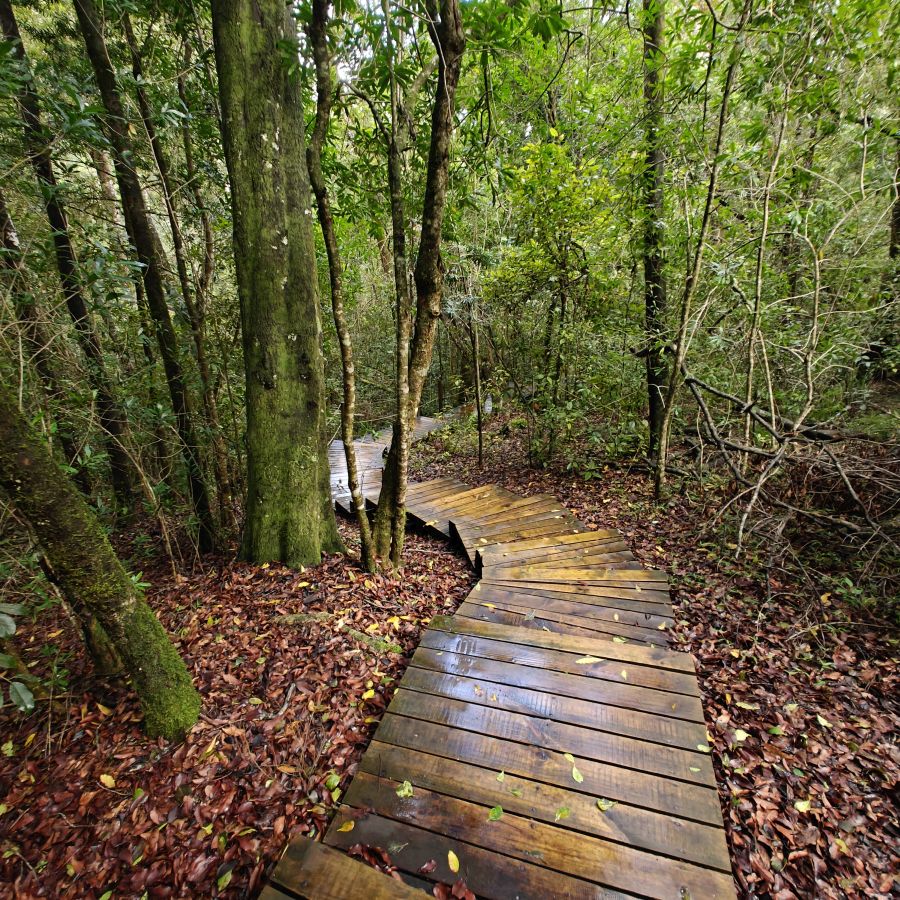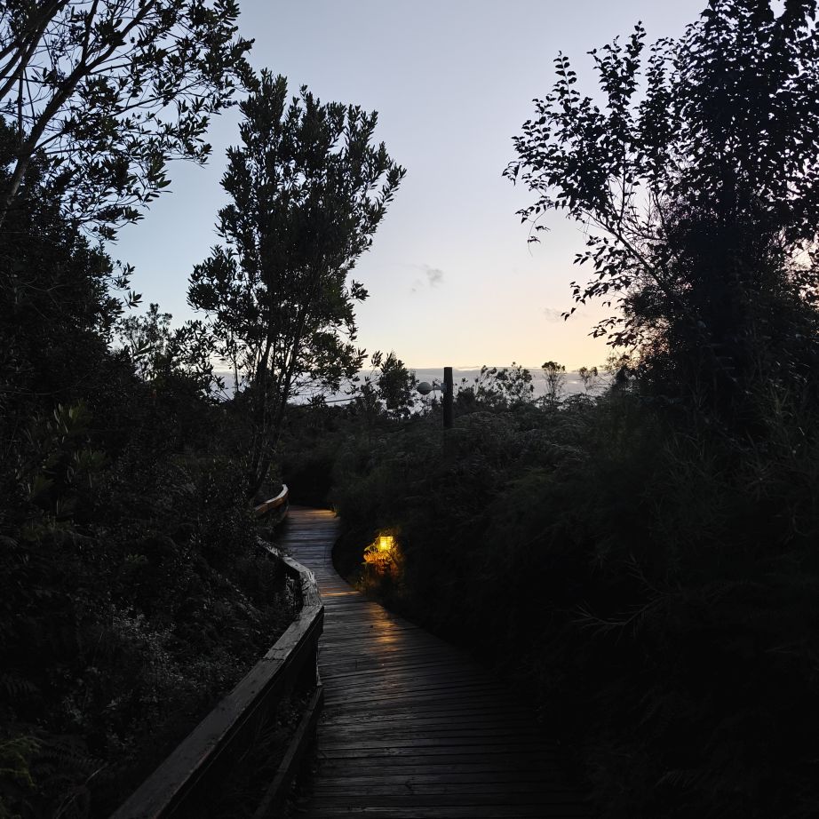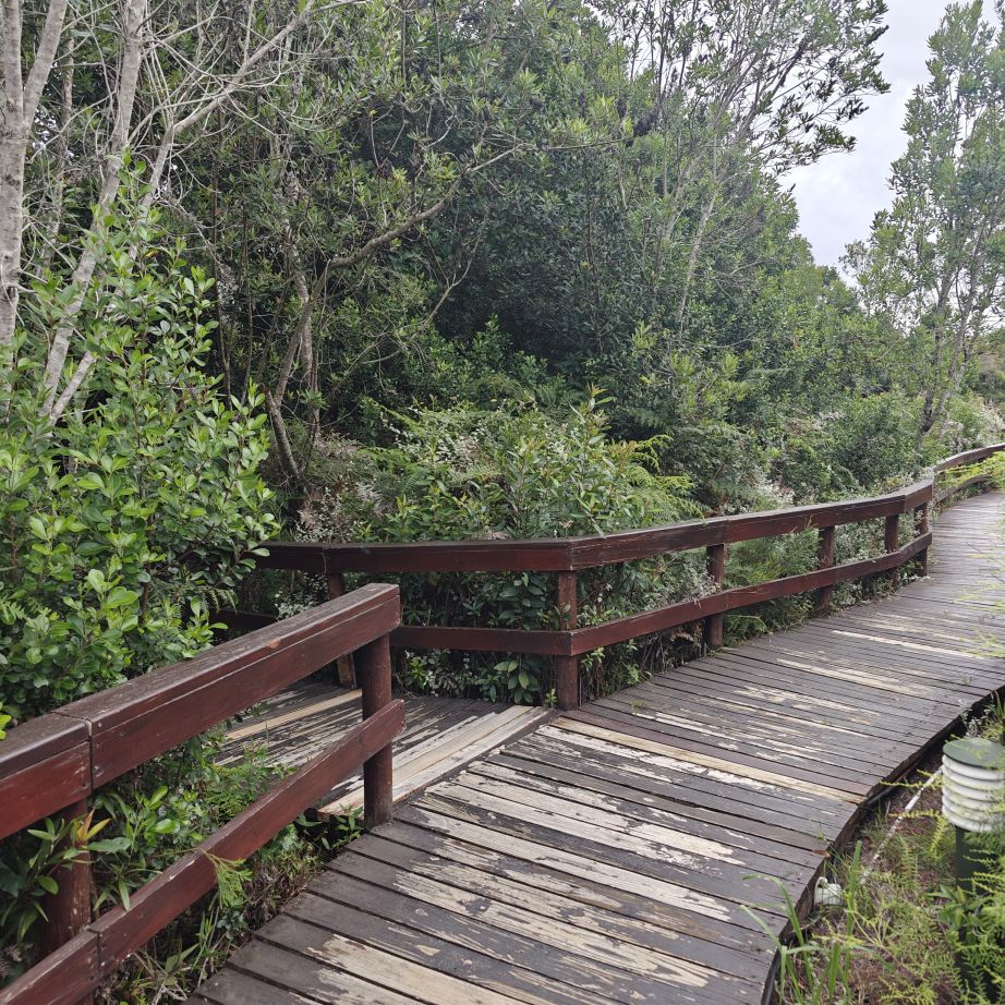 Direkt an der N2 befindet sich der Eingang zum Tsitsikamma Big Tree. Der 1.000 Jahre alte Outeniqua Yellowood befindet sich nur 500 Meter vom Parkplatz entfernt. Wir bezahlen den Eintritt und gehen die 500 Meter zu Fuß über Holzstege durch den Urwald zum Riesenbaum. Er ist beeindruckend mit seinen 36,6 Metern Höhe. Der Umfang des Baumstammes beträgt 8,5 Meter. Die Krone breitet sich auf einer Weite von 33 Metern aus. Nach der ausgiebigen Begutachtung des Wald-Goliaths machen wir noch einen kleinen Spaziergang zurück zum Parkplatz. Das Gate ist bereits geschlossen, wir sind gerade noch rechtzeitig gekommen. 17 Kilometer trennen uns noch von unserer Unterkunft für die nächsten zwei Nächte.