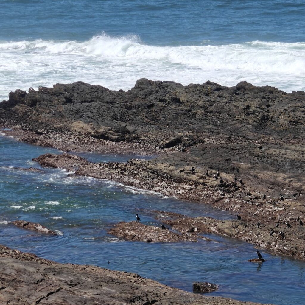 Nun haben wir rund 250 Kilometer Autofahrt vor uns, die wir auf zwei etwa gleich große Etappen teilen. Weiter geht es auf der N2 Richtung Osten. Gegen Mittag kommen wir in Jeffrey’s Bay an.