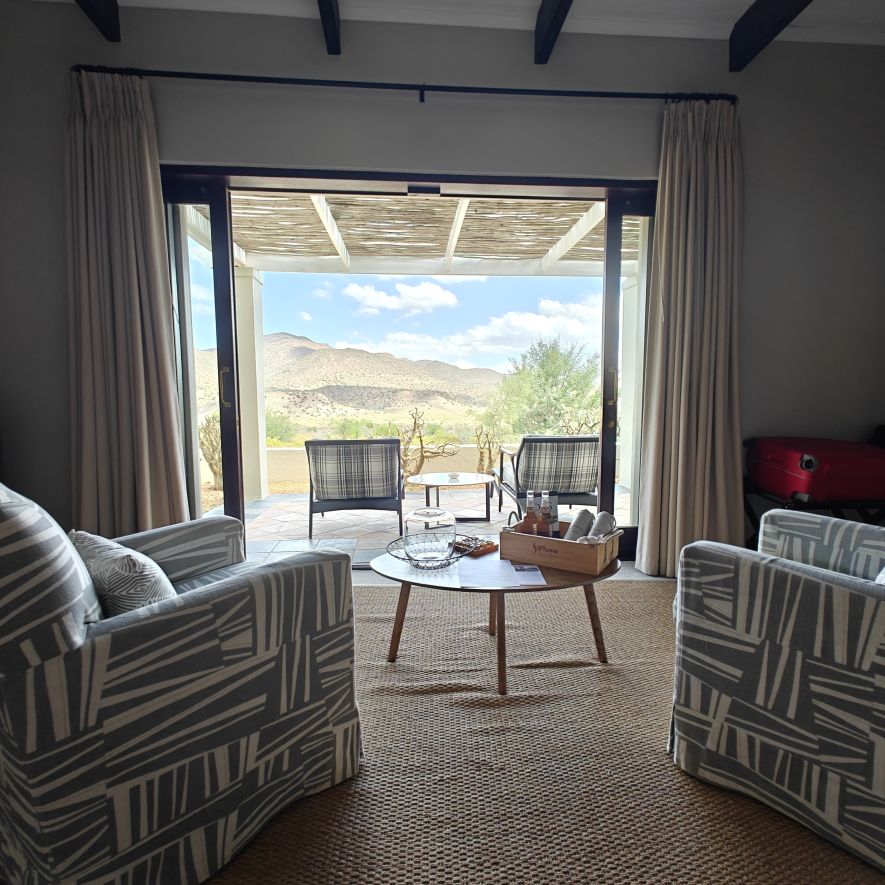 Wir frühstücken exzellent und checken aus. Dann fahren wir auf der berühmten N62 190 Kilometer durch die Little Karoo zum Sanbona Wildlife Reserve.