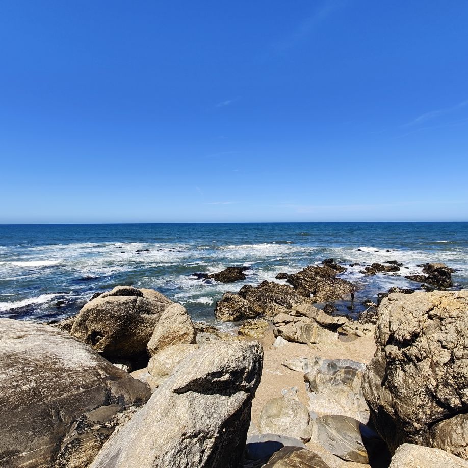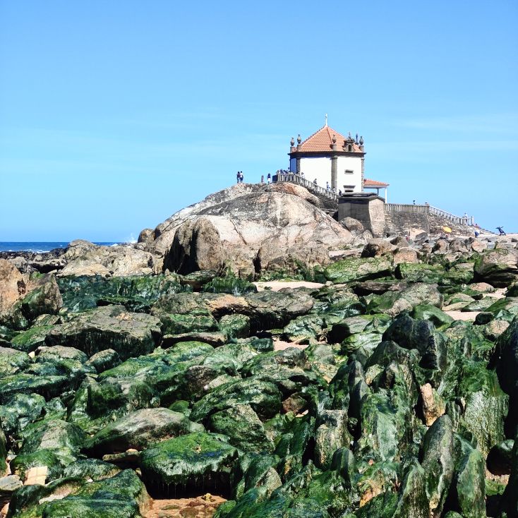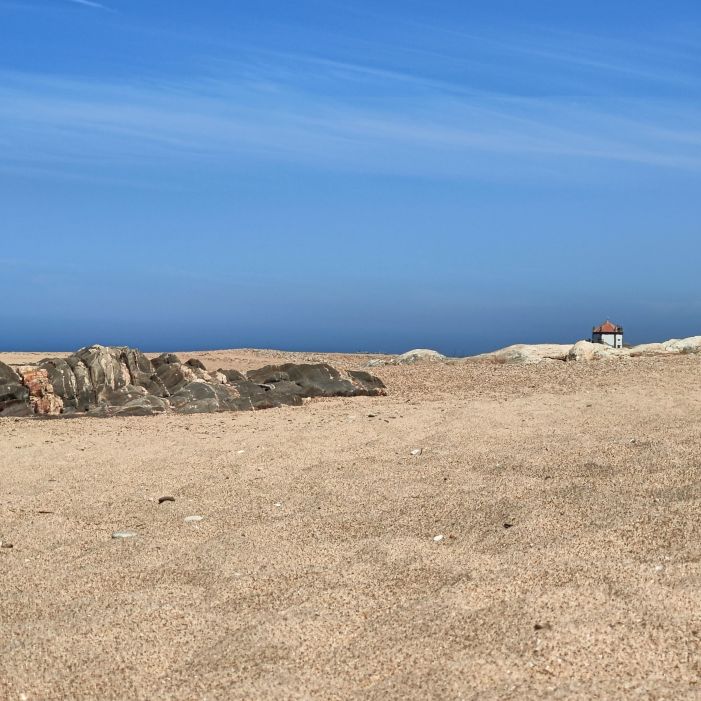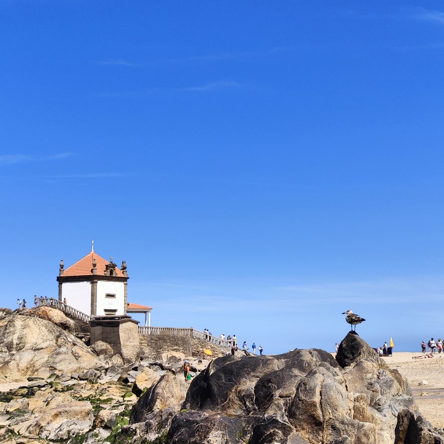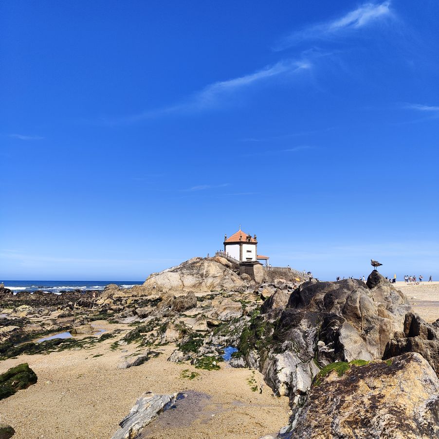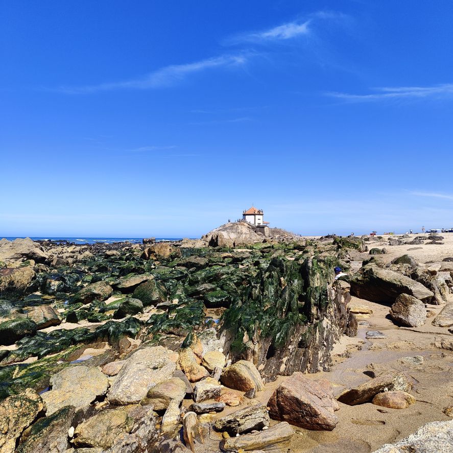 Der Praia do Senhor da Pedra ist ein Strandabschnitt im Norden des großen Praia de Miramar und verdankt seinen Namen der Kapelle Senhor da Pedra mit ihrem sechseckigen Grundriss, die auf Felsen an der Wasserkante errichtet wurde. Die Kapelle wurde Mitte des 17. Jahrhunderts als sichtbares Zeichen christlicher Herrschaft über die abergläubische Bevölkerung errichtet.